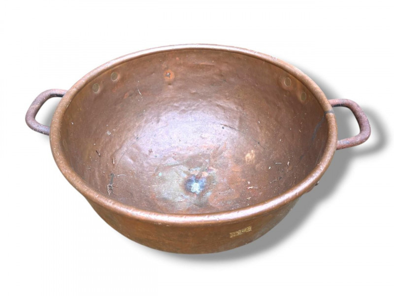Lot # 82 - Oversized Copper Jam/Preserving Bowl w/ Iron Handles