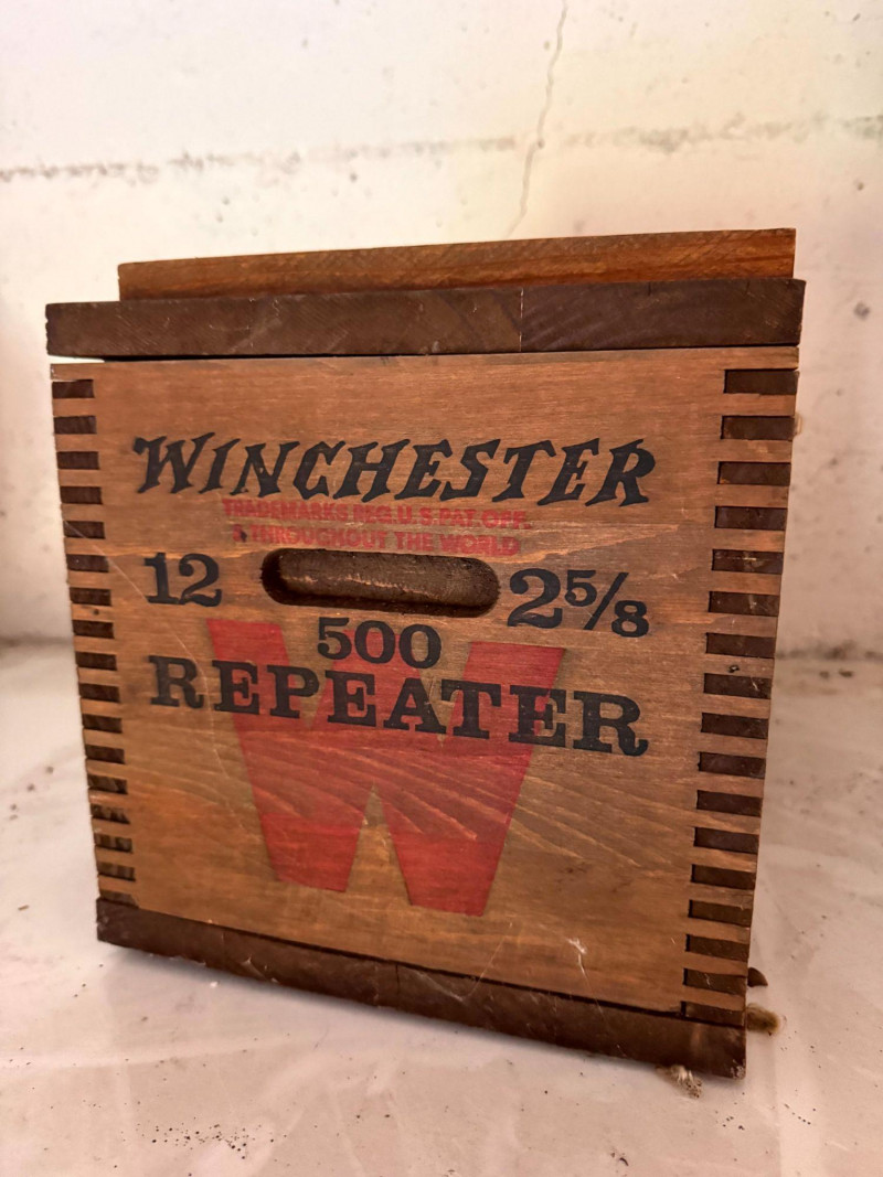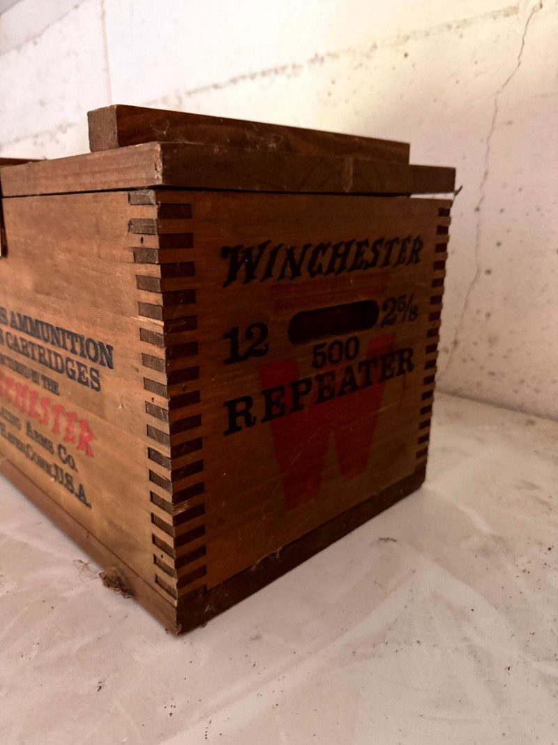 Wooden Winchester 12ga Ammo Crate w/ Lid.