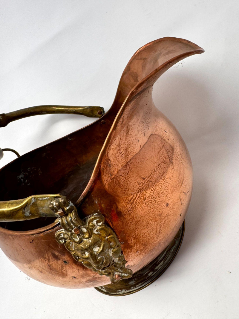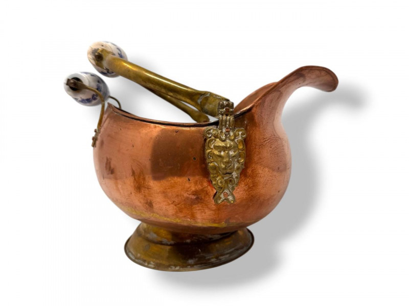 Lot # 91 - Antique Copper Helmet Coal Scuttle w/ Ceramic Handle