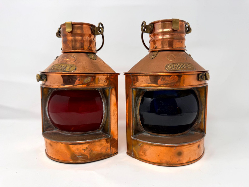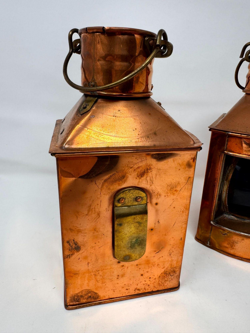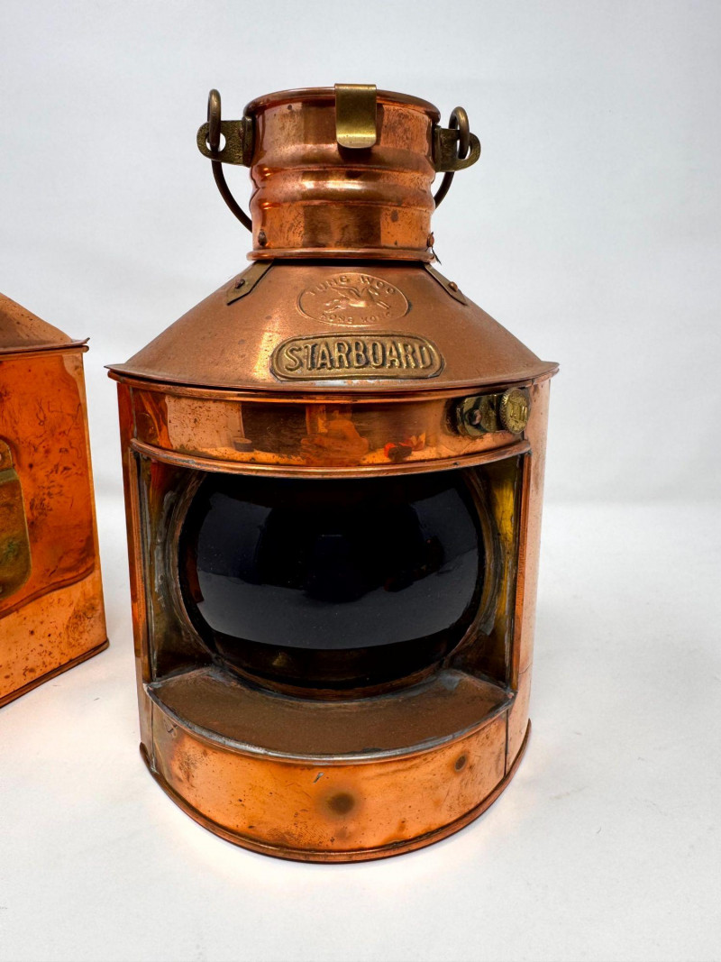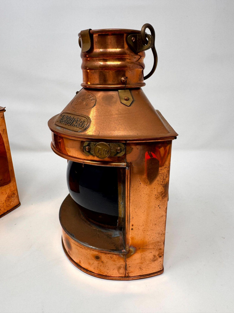 Lot # 92 - Vintage Copper Port & Starboard Oil Lamps w/ Original Boxes