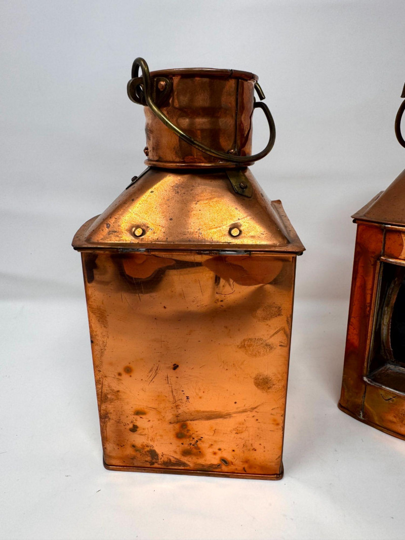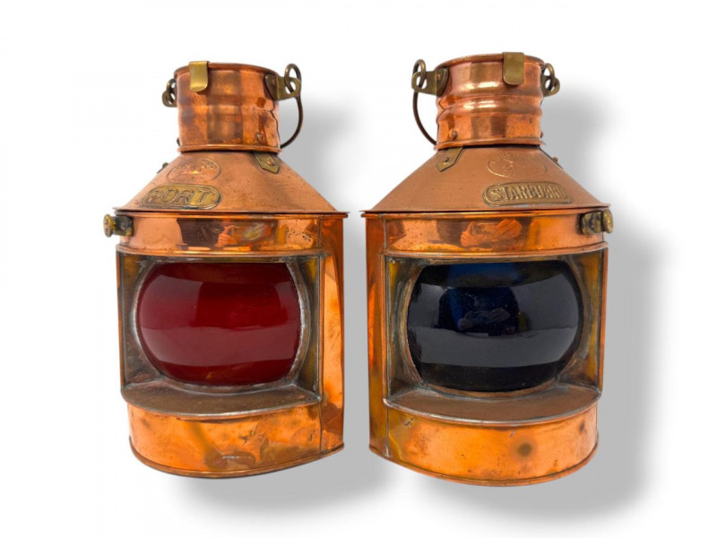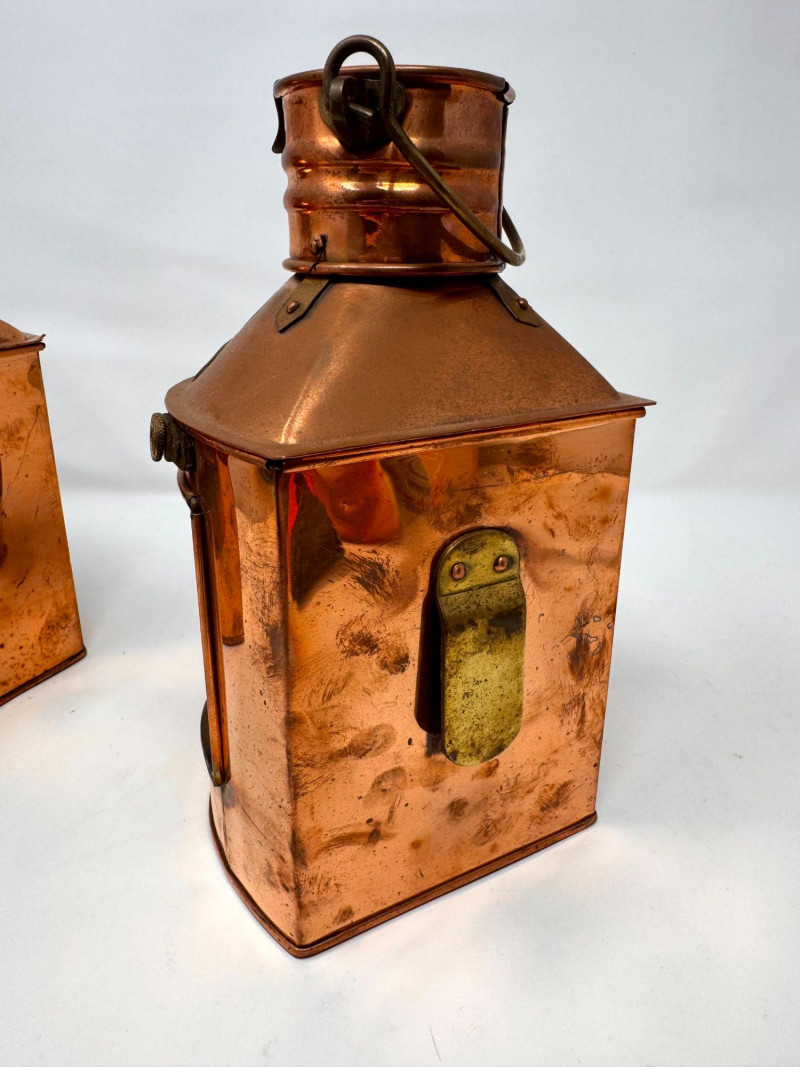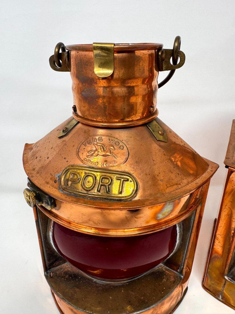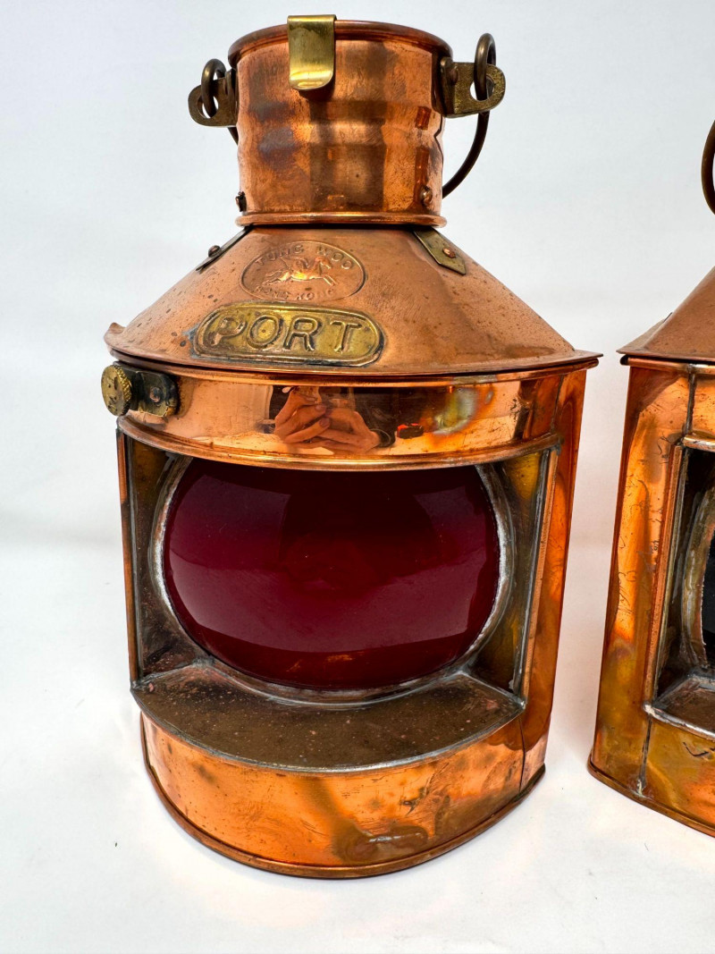 Lot # 92 - Vintage Copper Port & Starboard Oil Lamps w/ Original Boxes