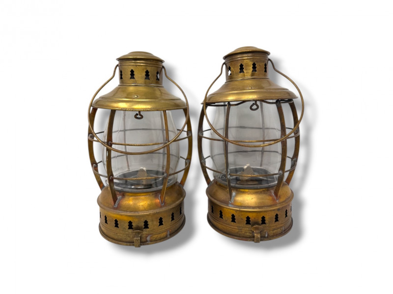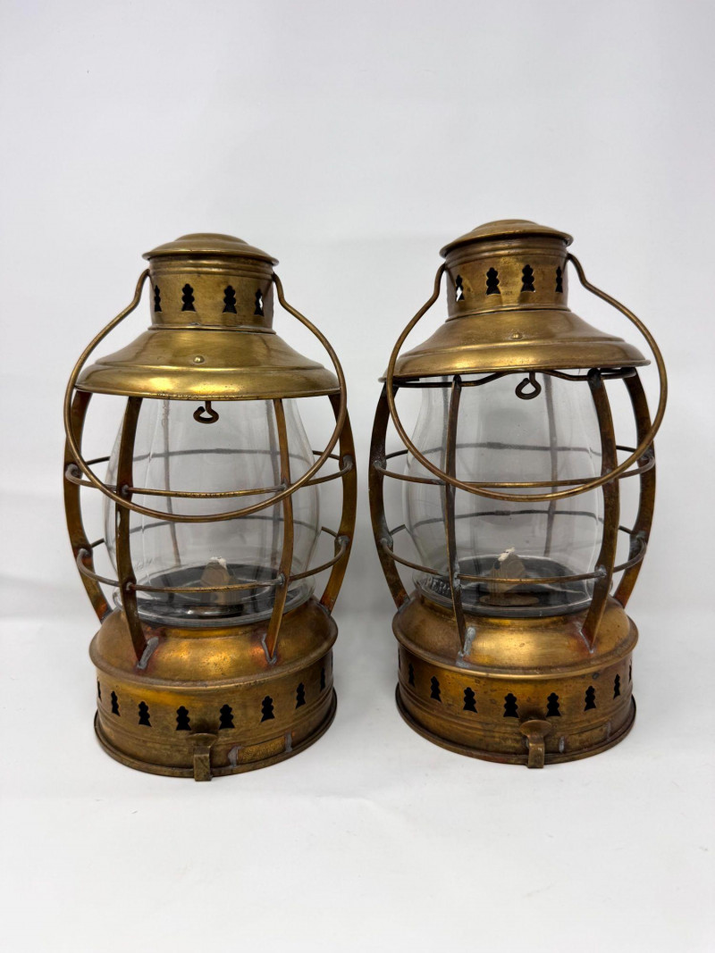 Perko Brass Tone Marine Oil Lanterns w/ Glass Globe - Set of 2.
