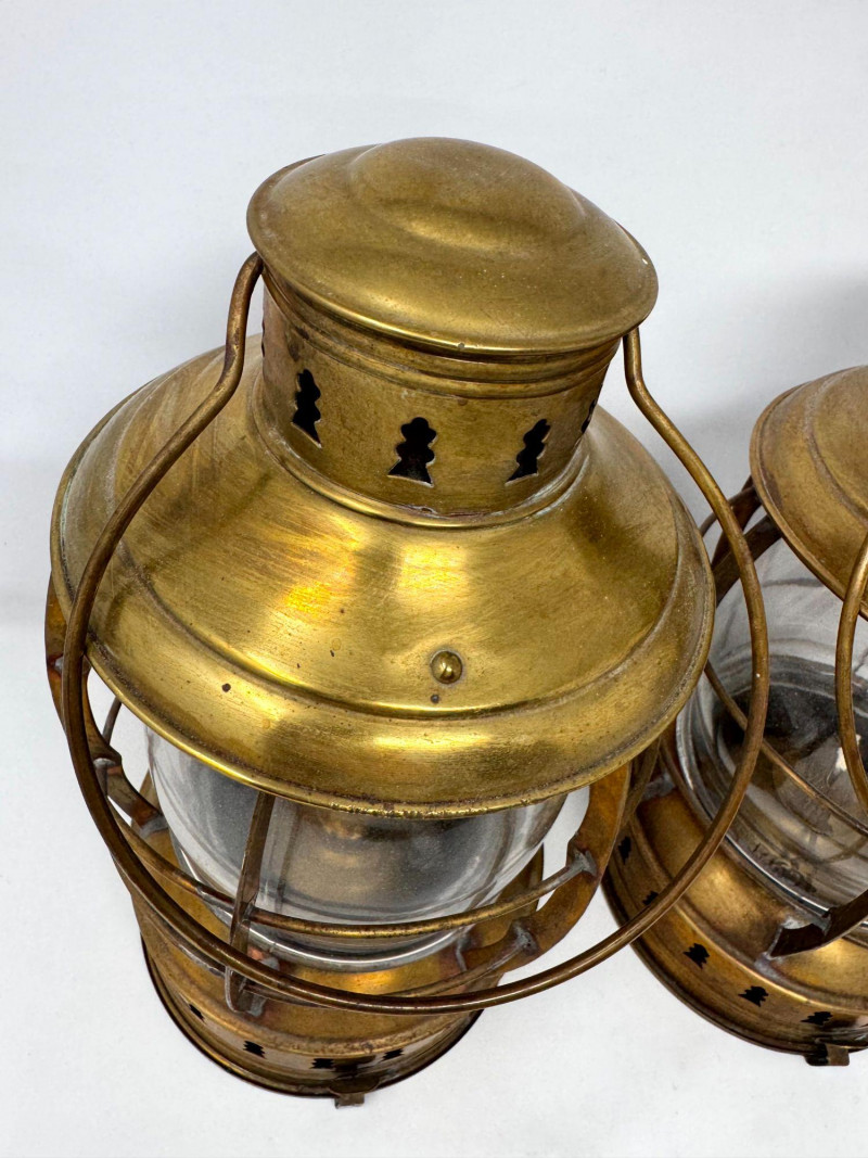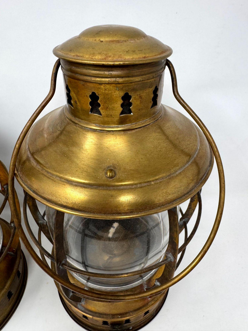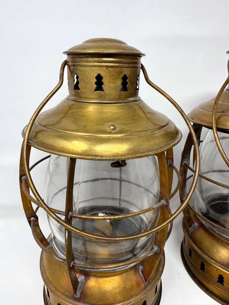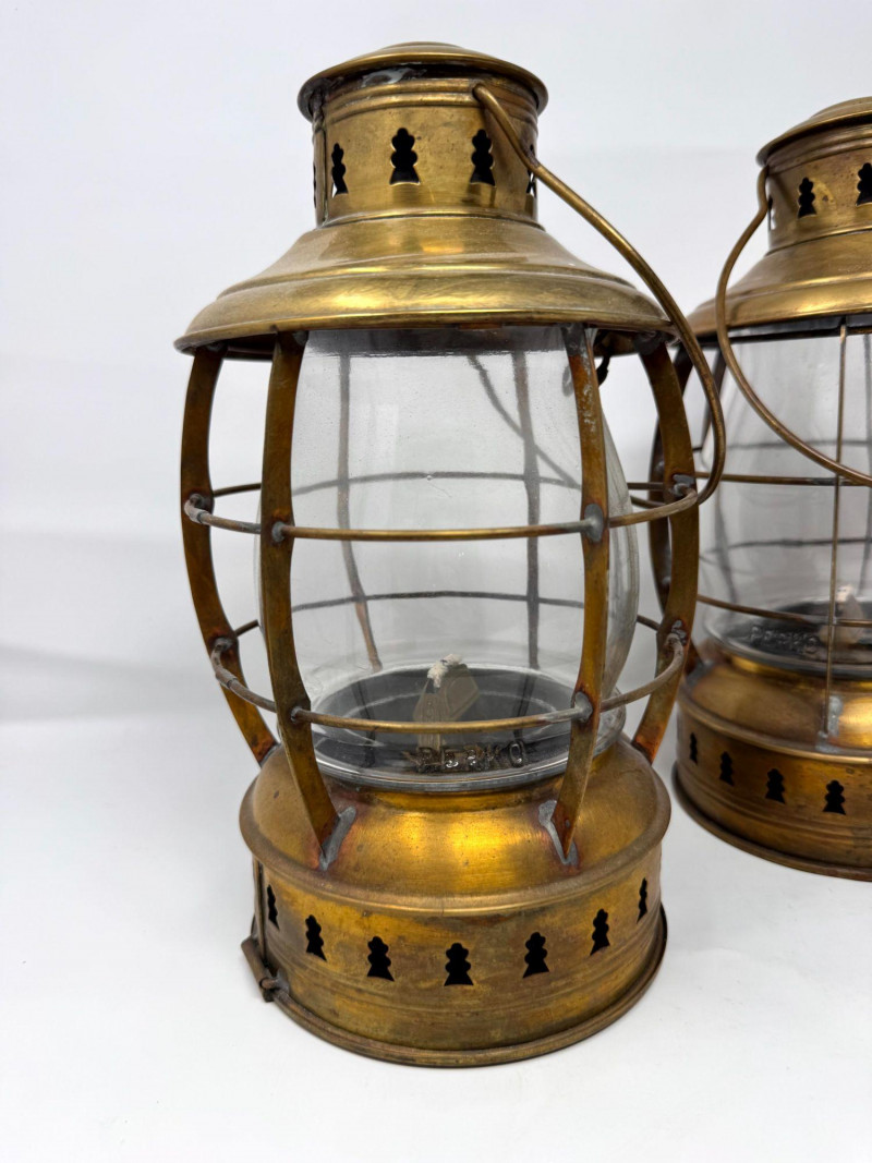 Lot # 93 - Perko Brass Tone Marine Oil Lanterns w/ Glass Globe - Set of 2
