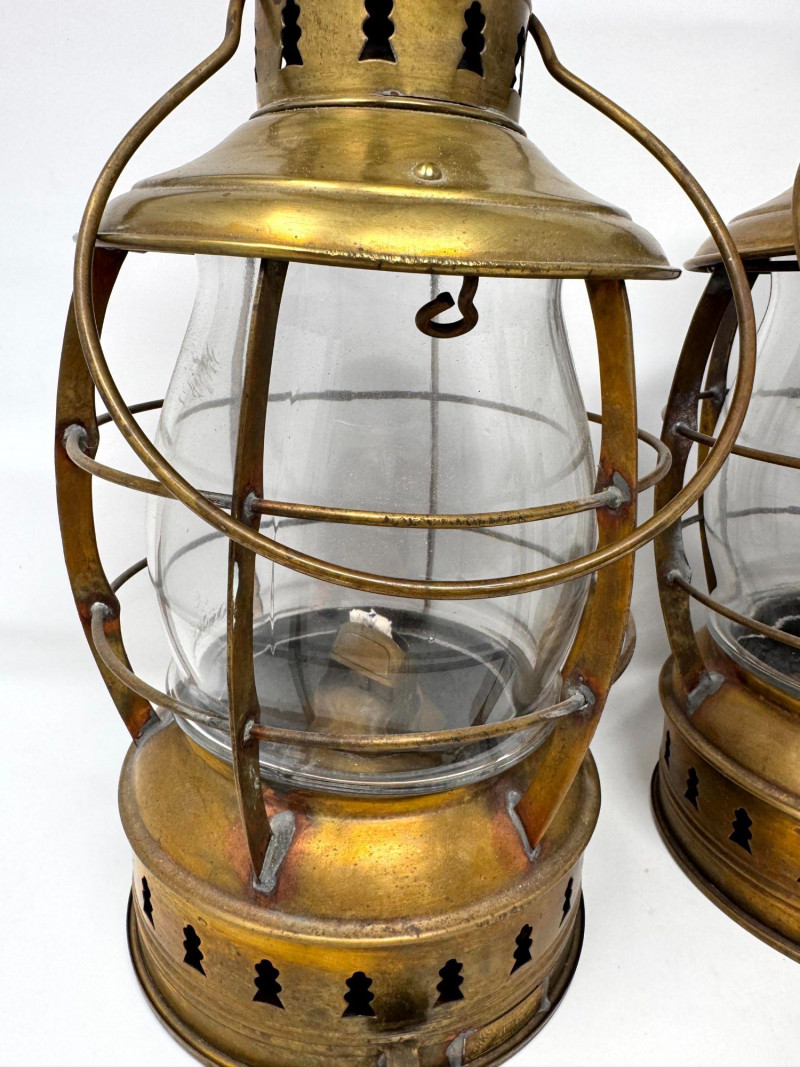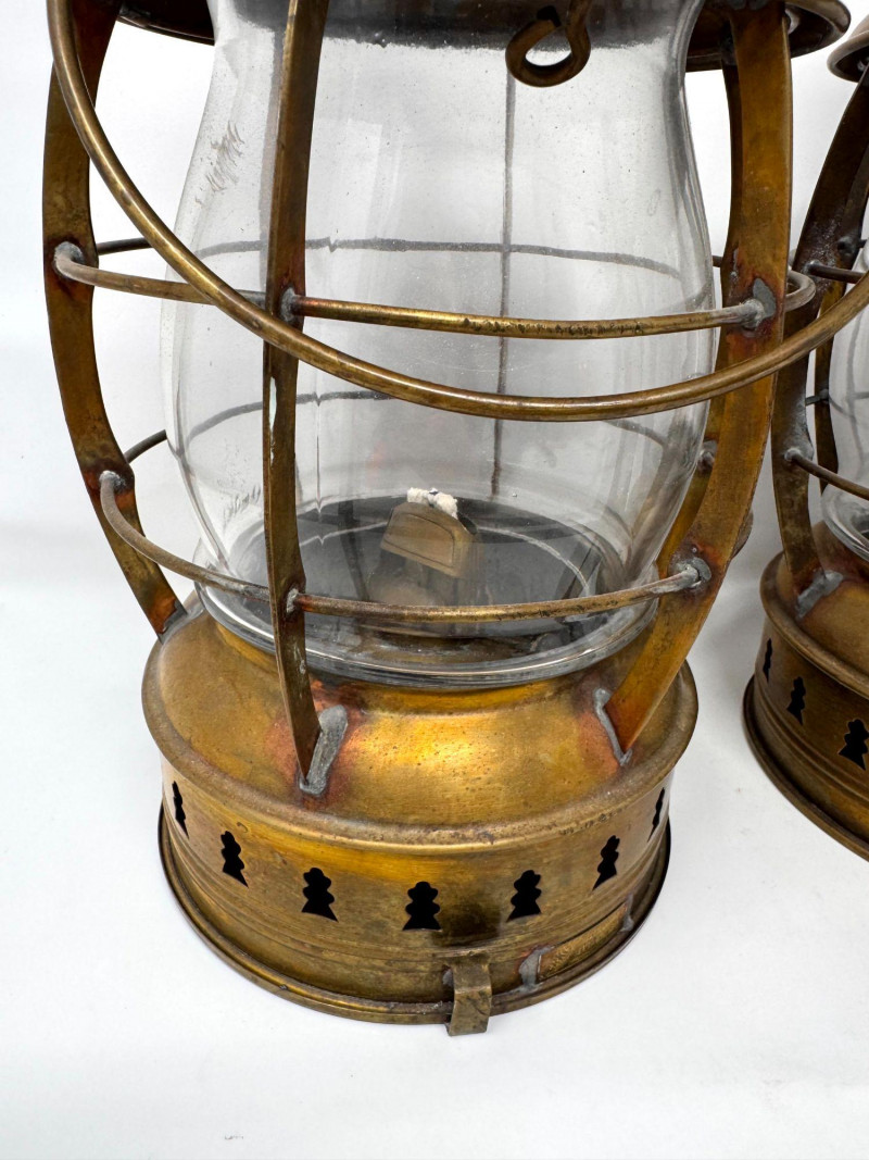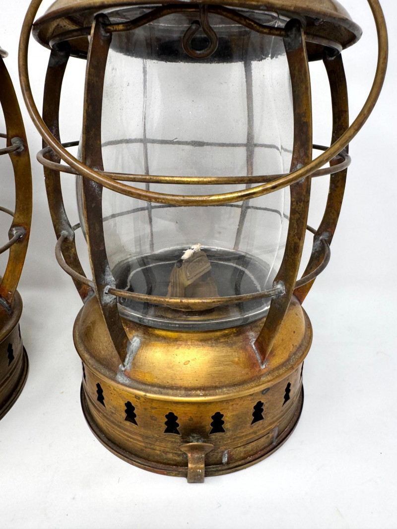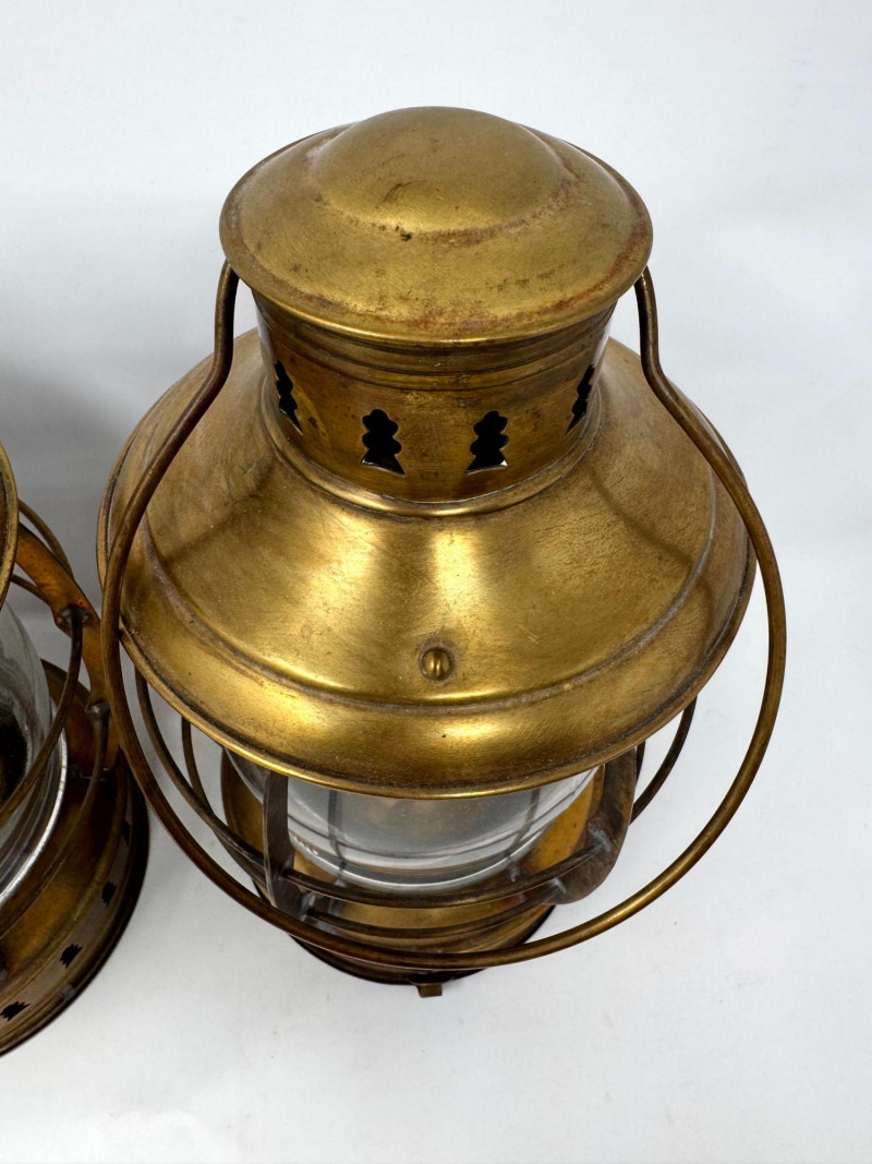 Lot # 93 - Perko Brass Tone Marine Oil Lanterns w/ Glass Globe - Set of 2
