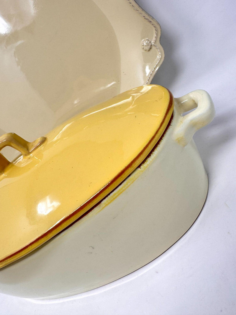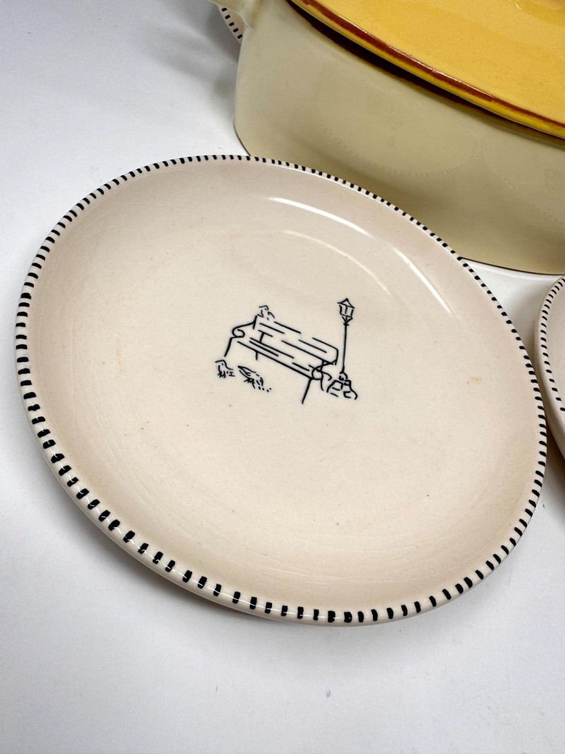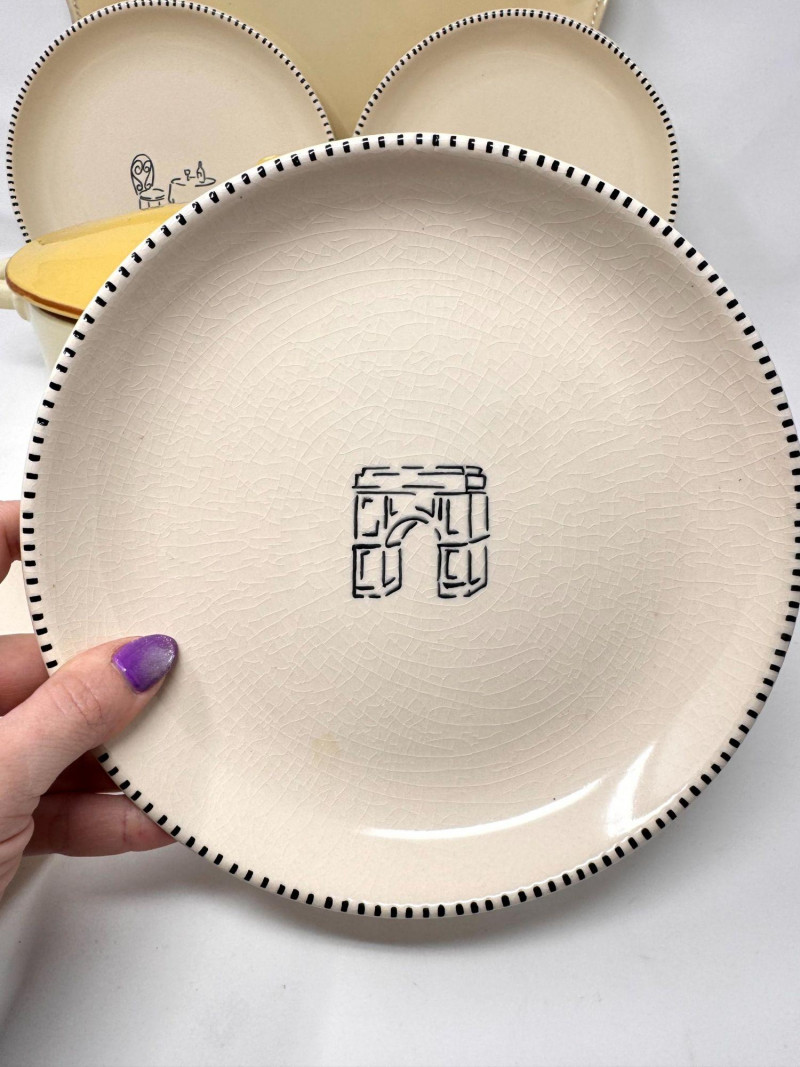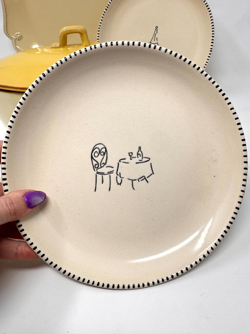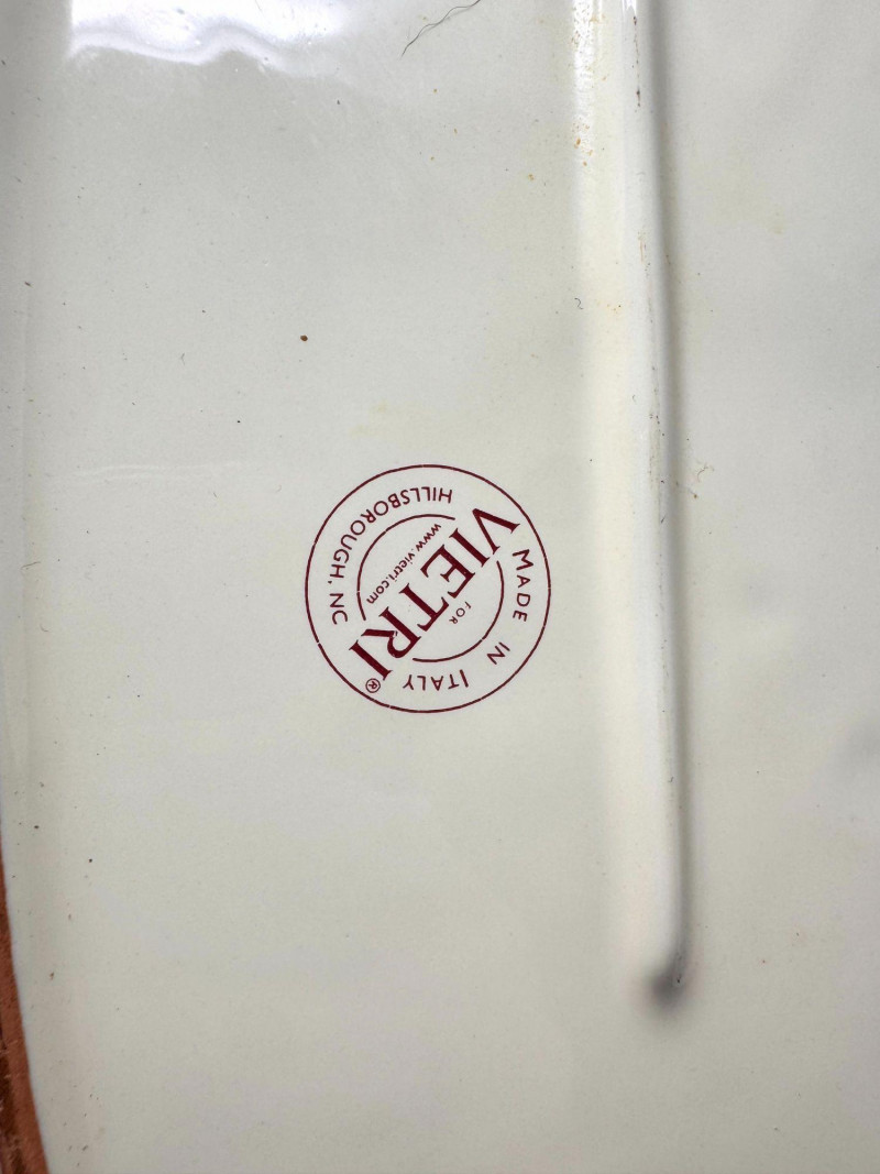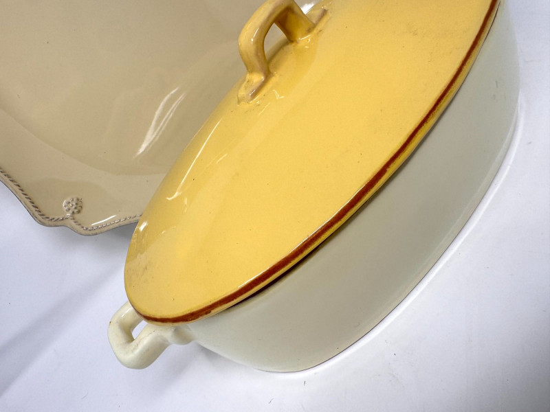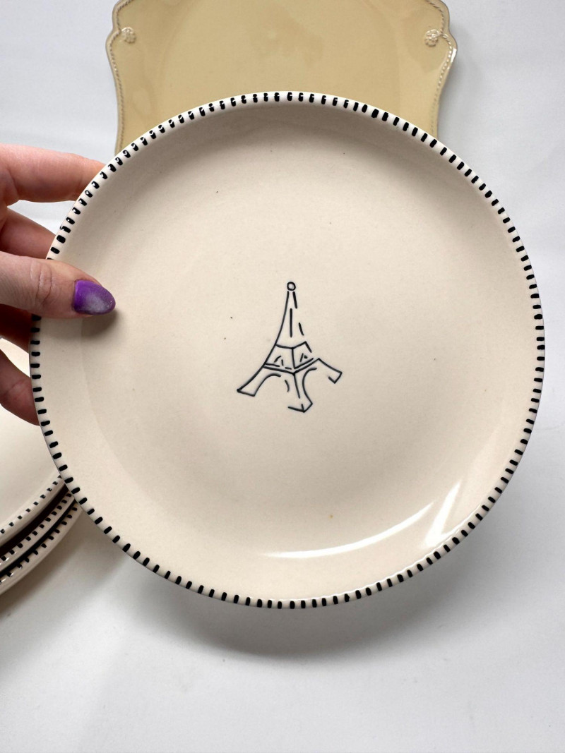 Large Juliska Platter, Vietri Casserole & Pottery Barn Paris Plates.