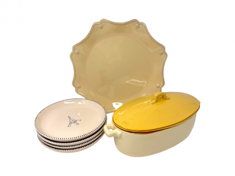 Lot # 99 - Large Juliska Platter, Vietri Casserole & Pottery Barn Paris Plates