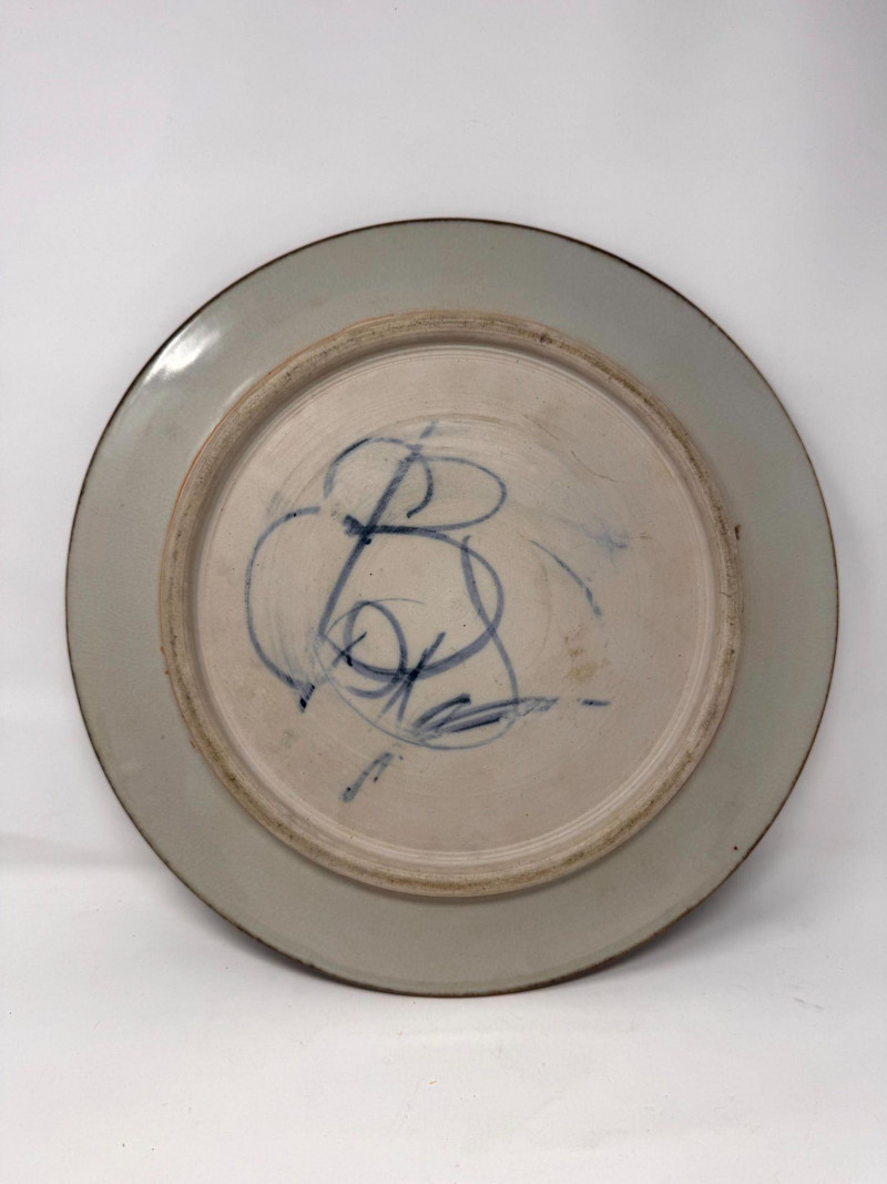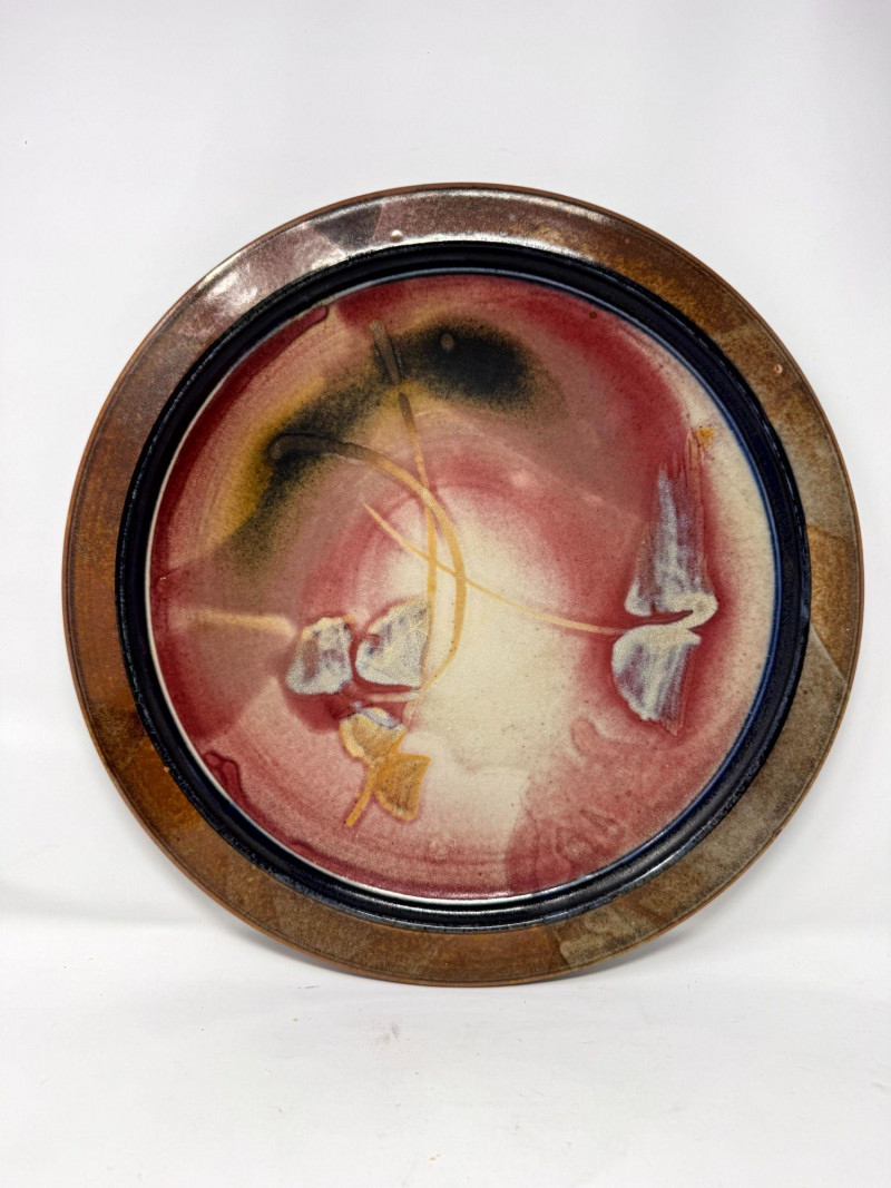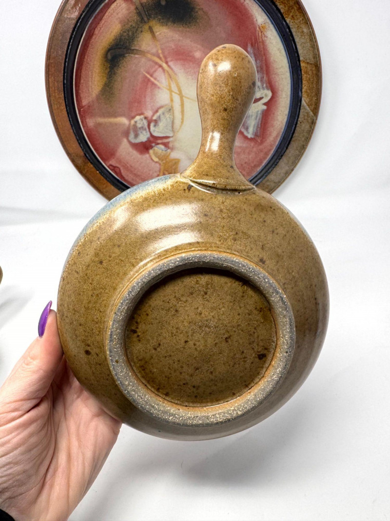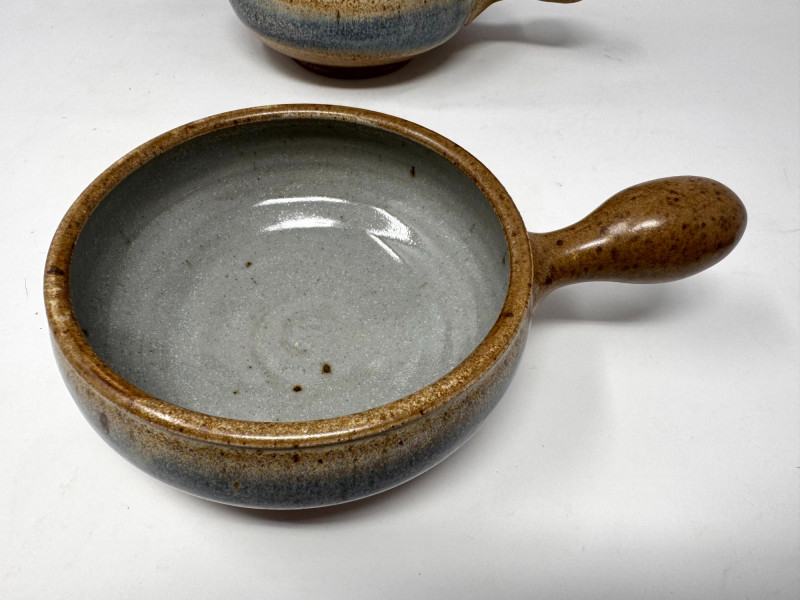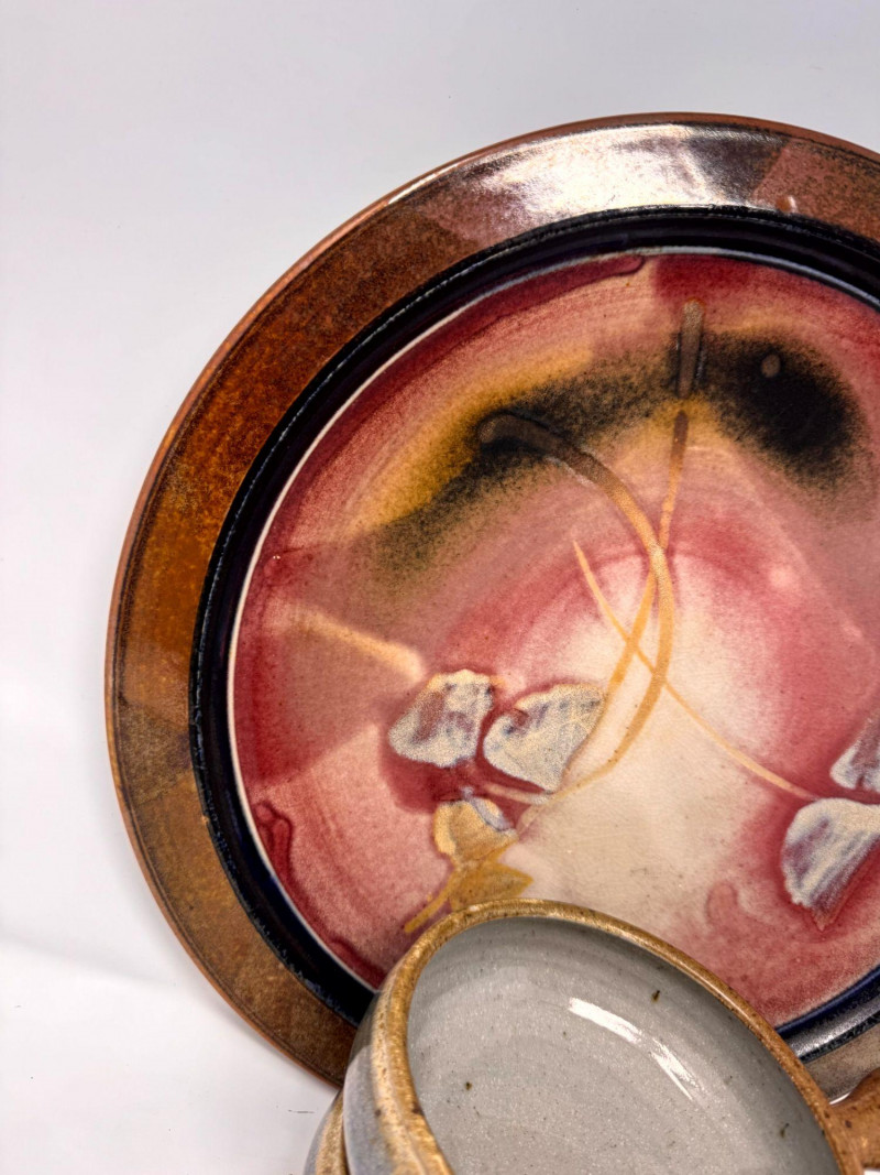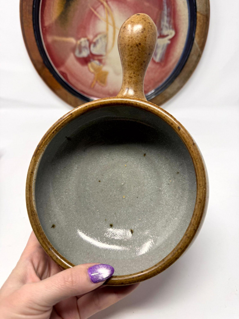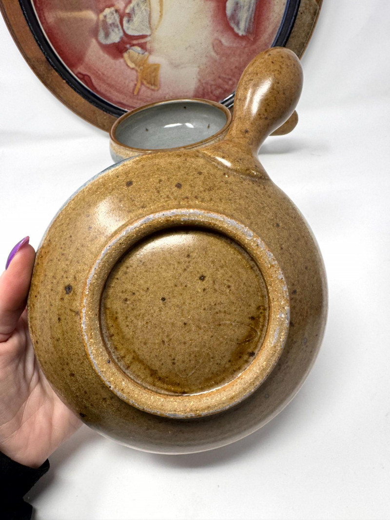 Lot # 100 - Large Studio Pottery Plate & Handled Soup Bowls Set