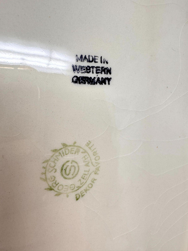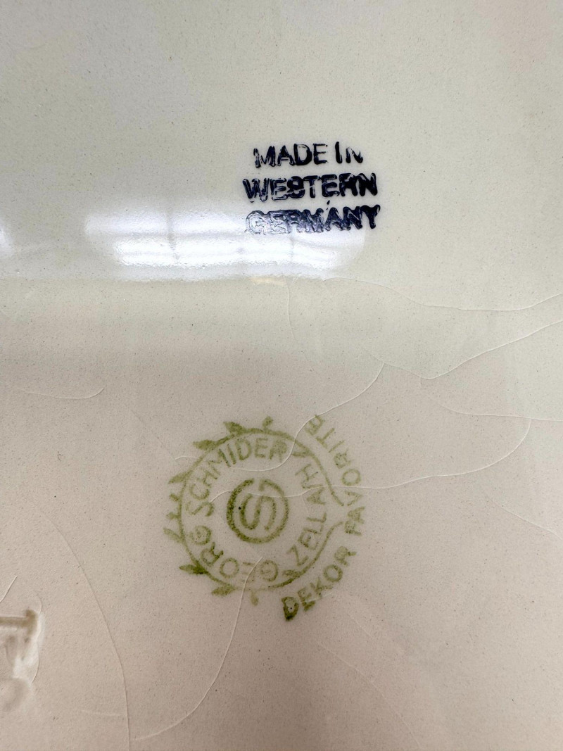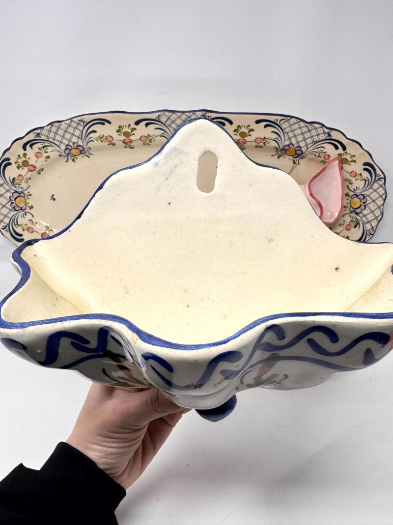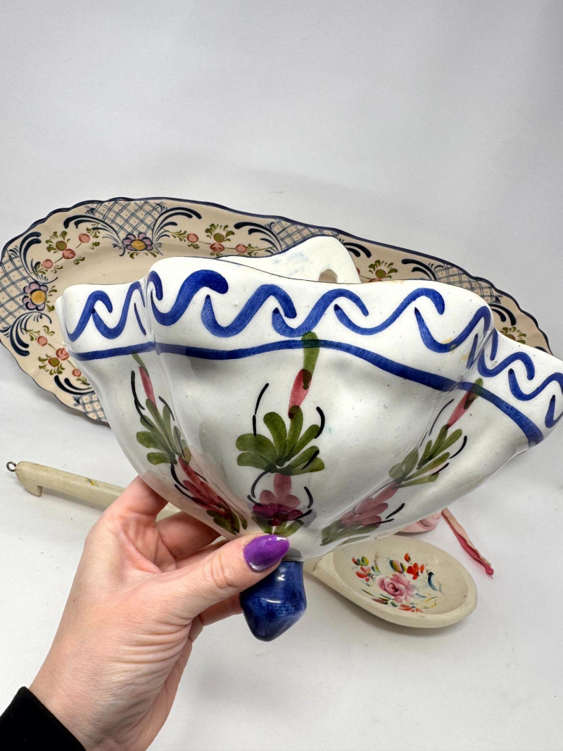 Antique Serving Platter, Andrea West Pig Wall Mask, Planter, & Spoon.