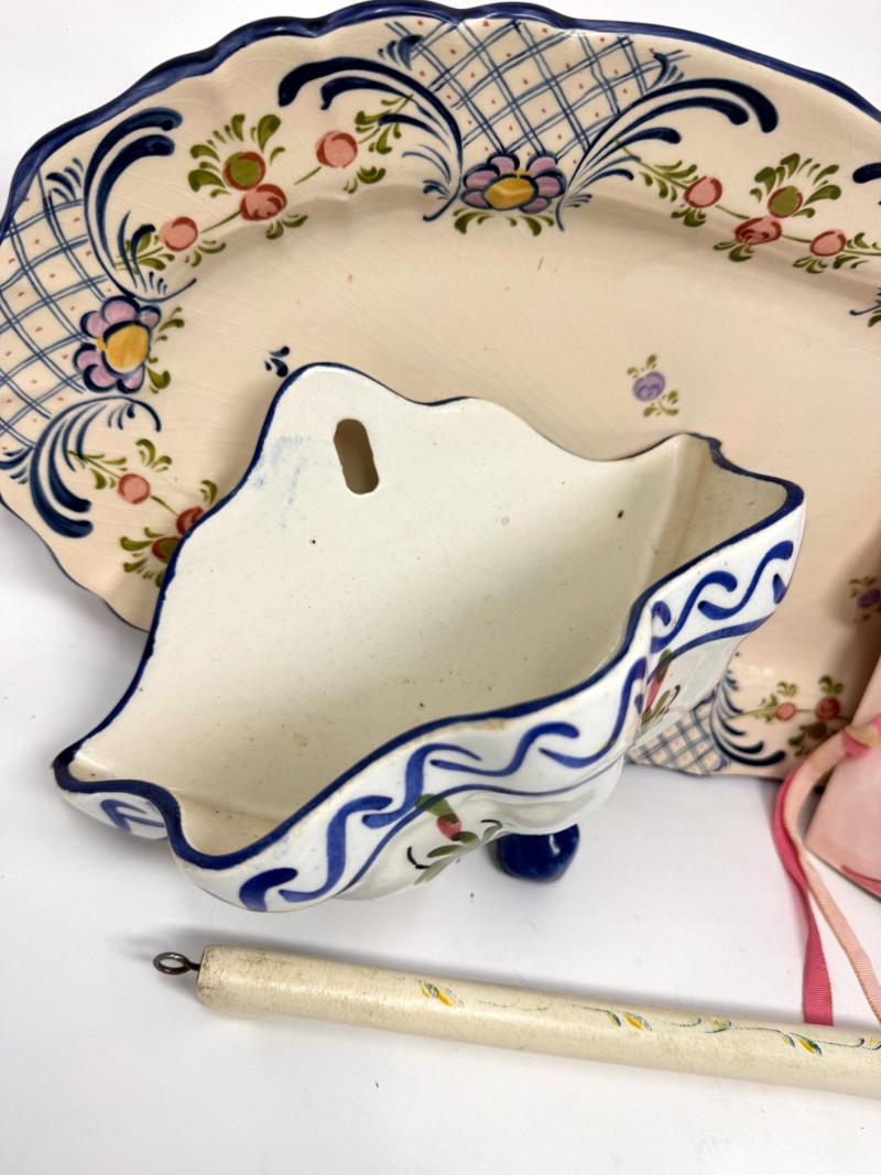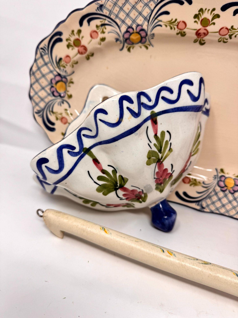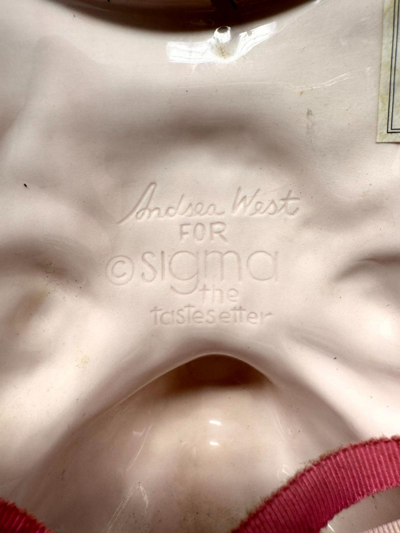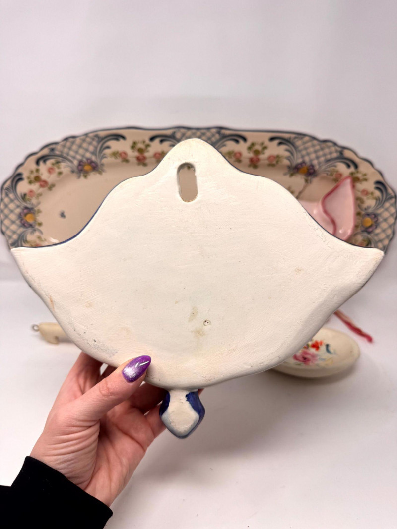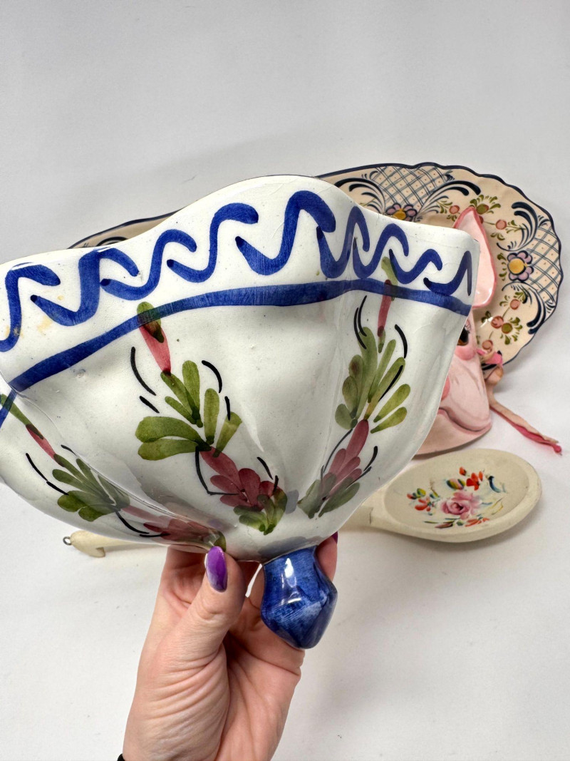 Lot # 104 - Antique Serving Platter, Andrea West Pig Wall Mask, Planter, & Spoon