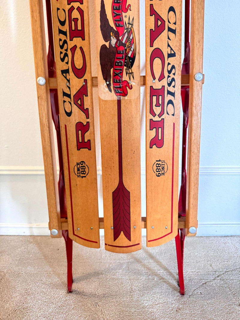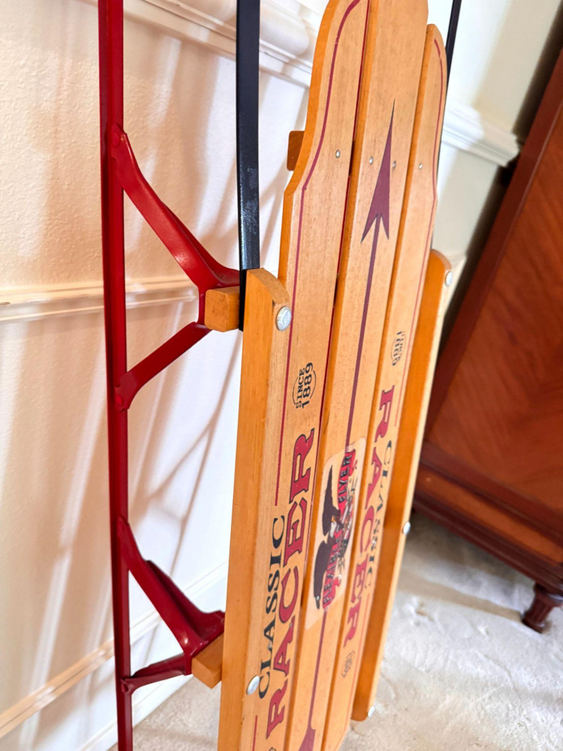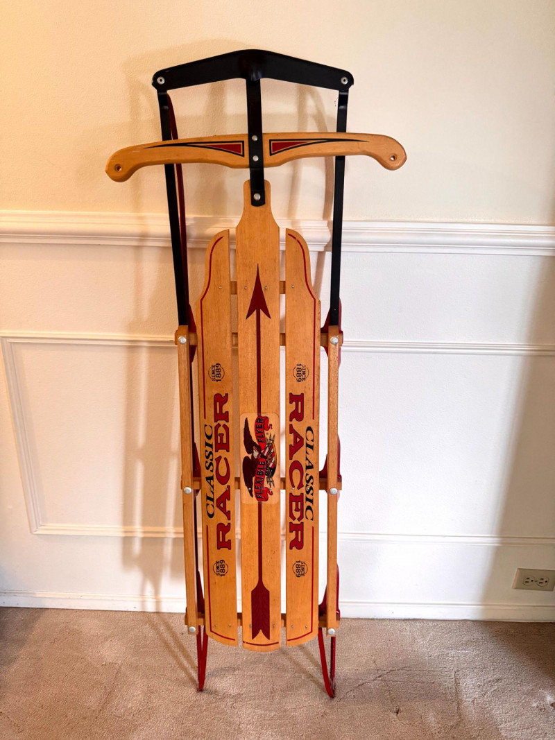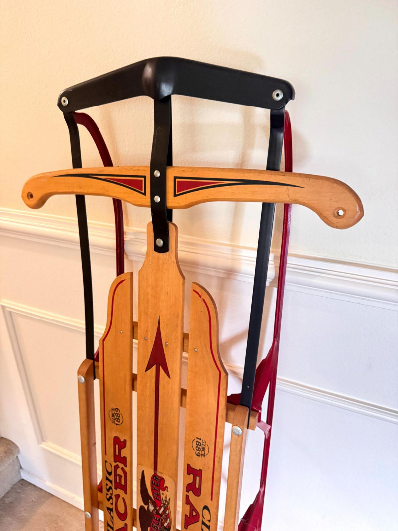 Vintage “Classic Racer” Wooden Sled w/ Metal Runners & Steering Bar.