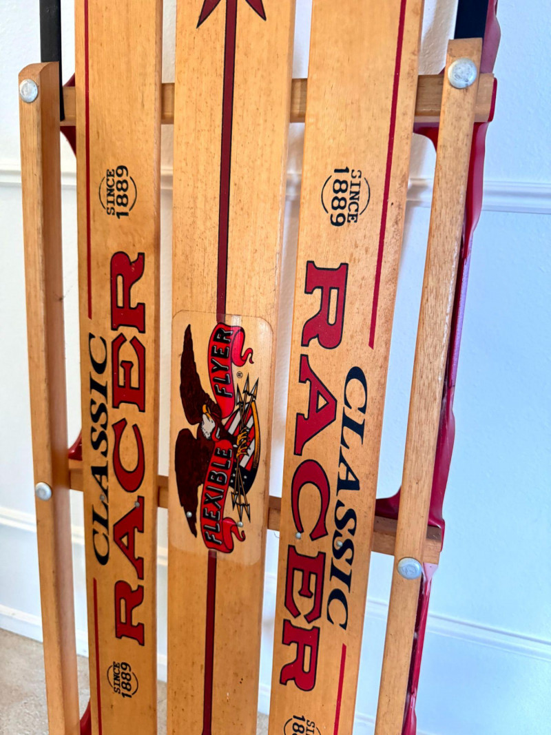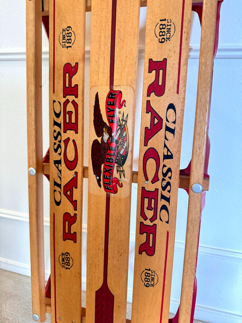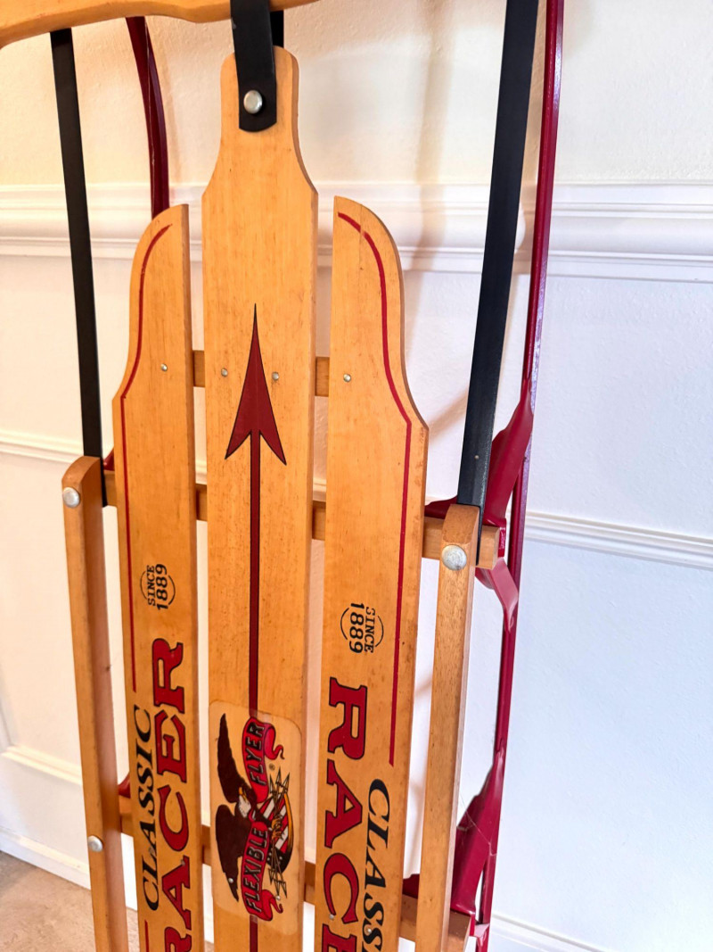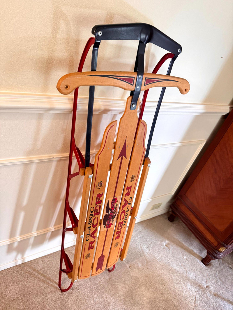 Vintage “Classic Racer” Wooden Sled w/ Metal Runners & Steering Bar.