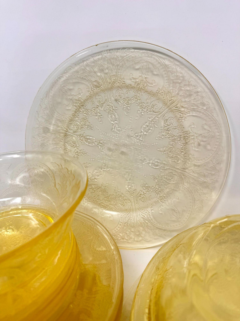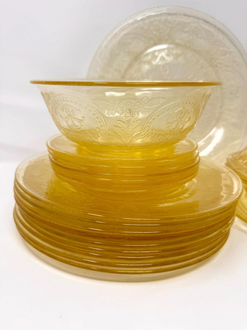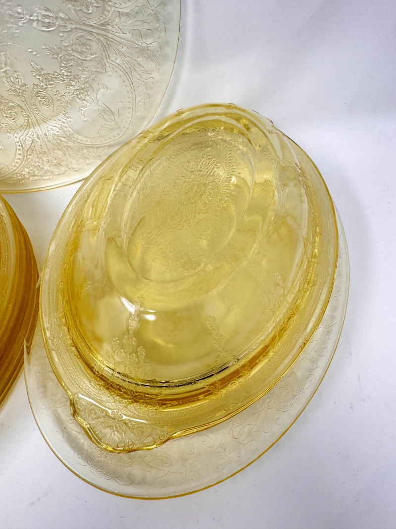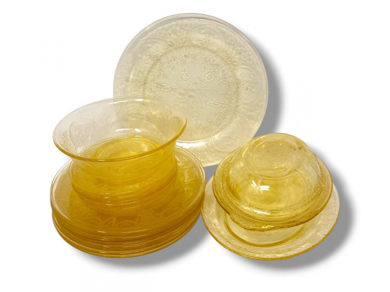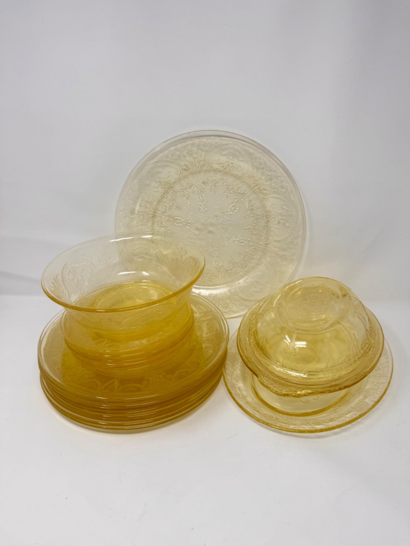 Lot # 115 - Yellow Pressed Glass Serving Set - Plates, Bowls & Covered Dish