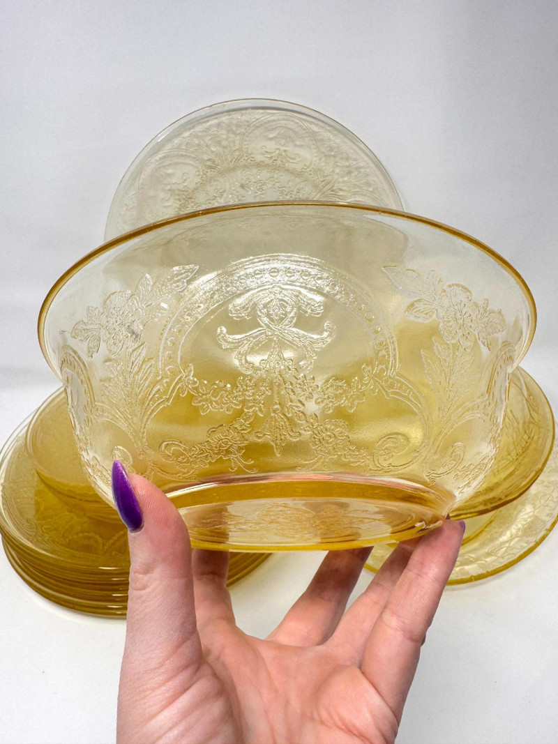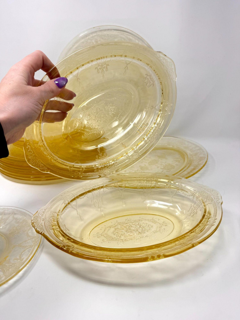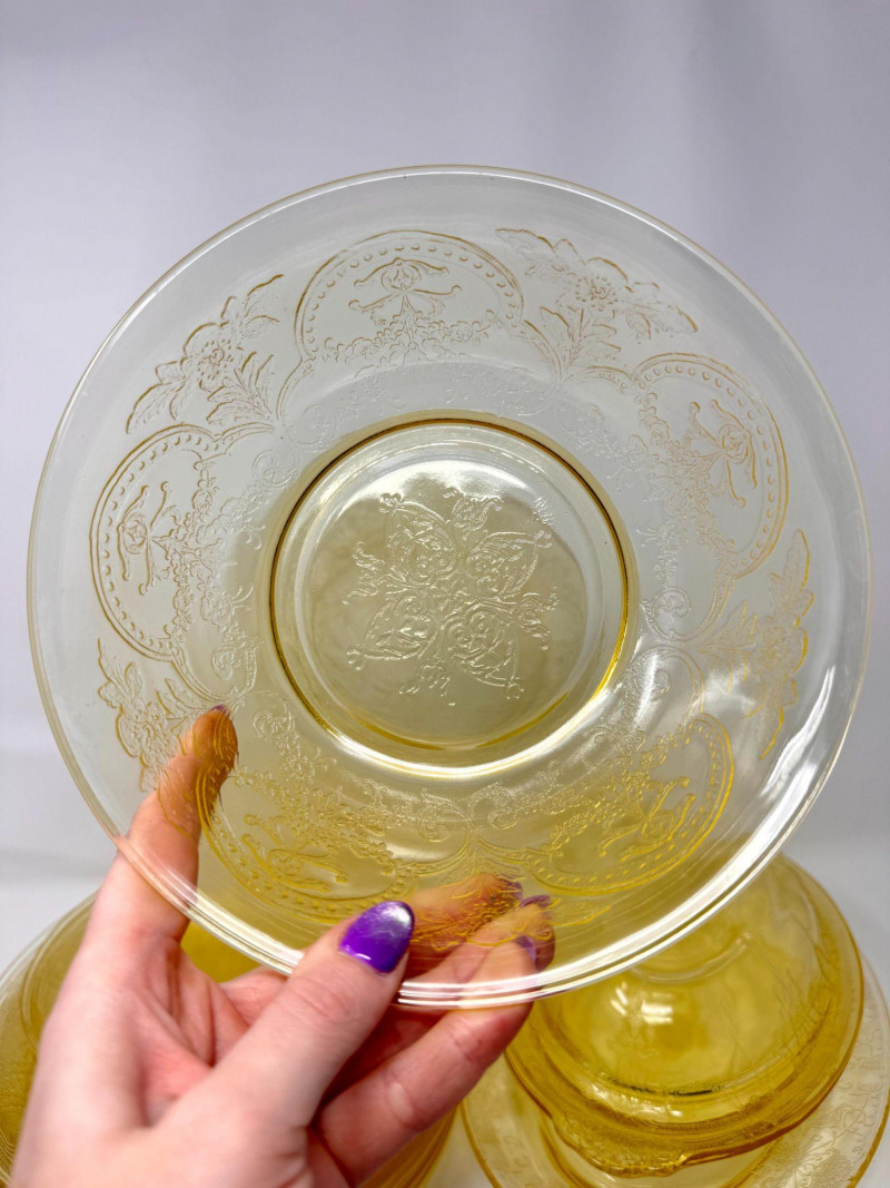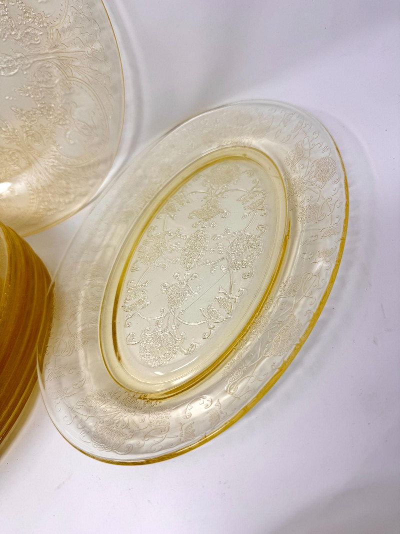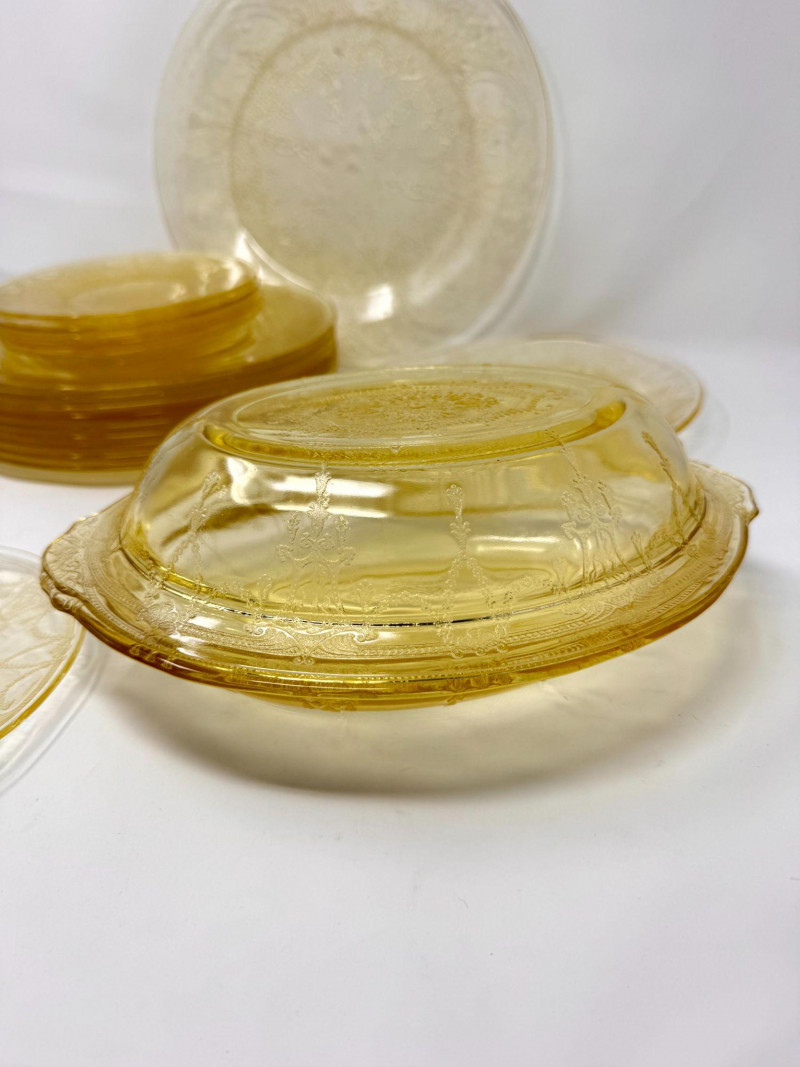 Lot # 115 - Yellow Pressed Glass Serving Set - Plates, Bowls & Covered Dish
