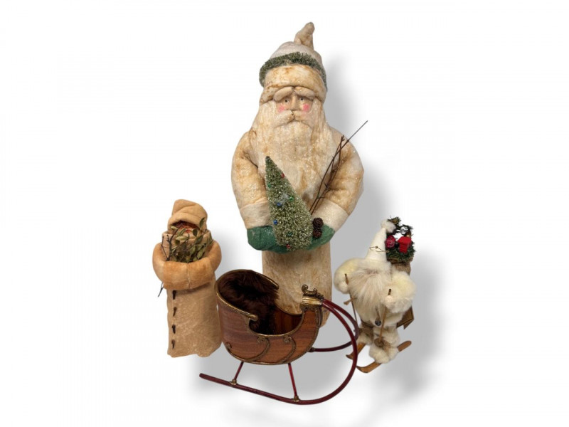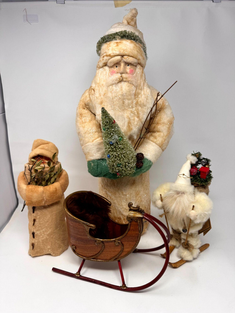 Lot # 117 - Vintage Style Santa Sleigh, Tina Mitchell Skiing Santa (New) & More
