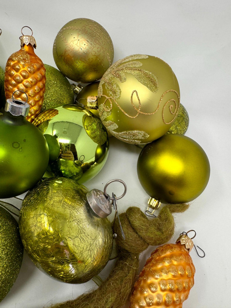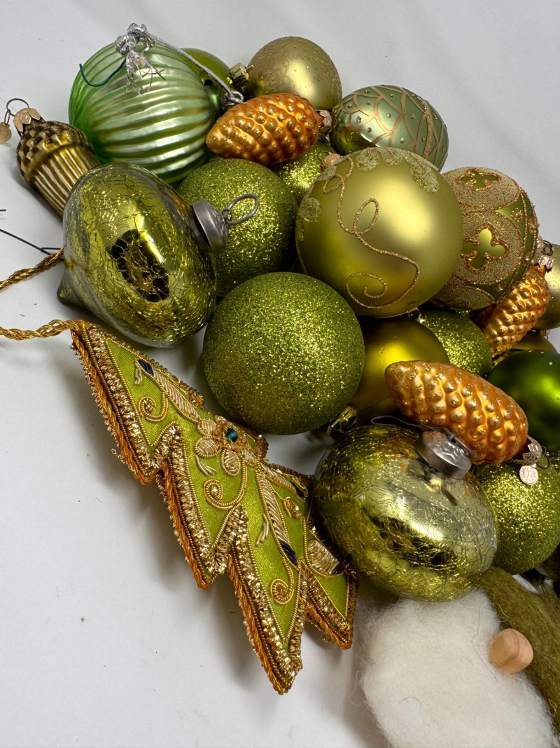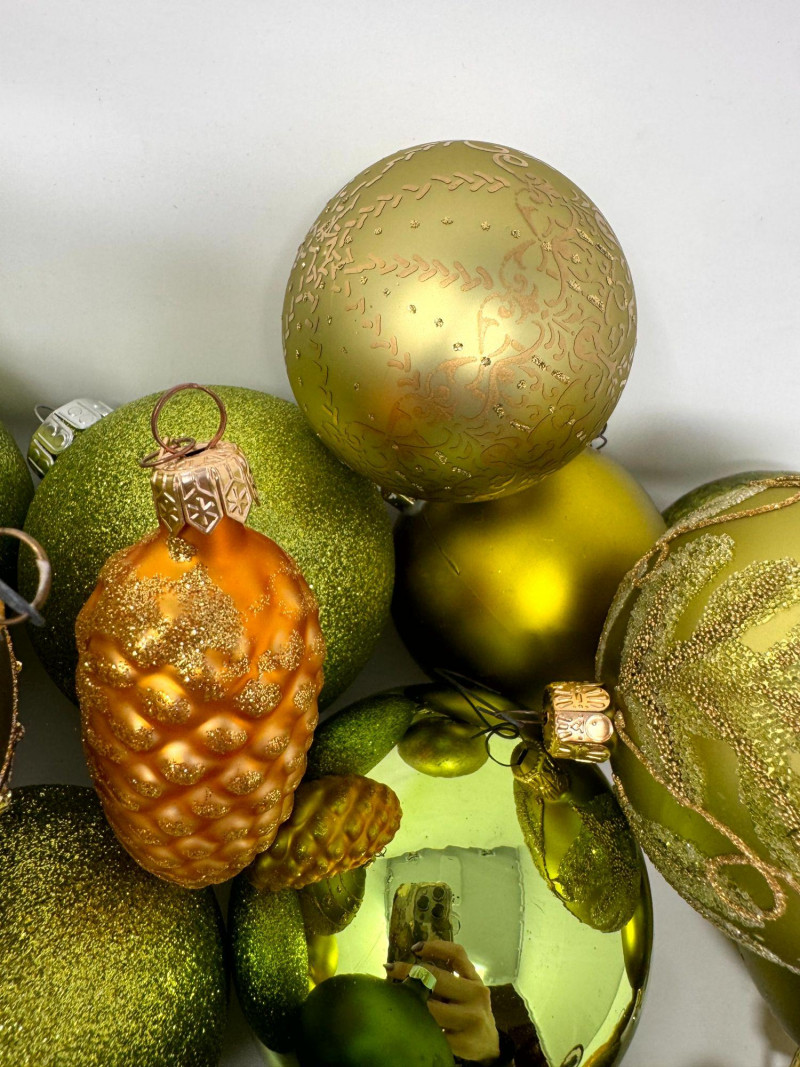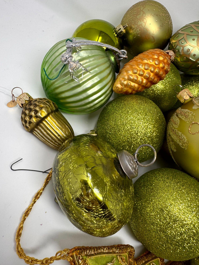 Lot # 120 - Assorted Hand-Blown Glass Christmas Ornaments in Green Tones