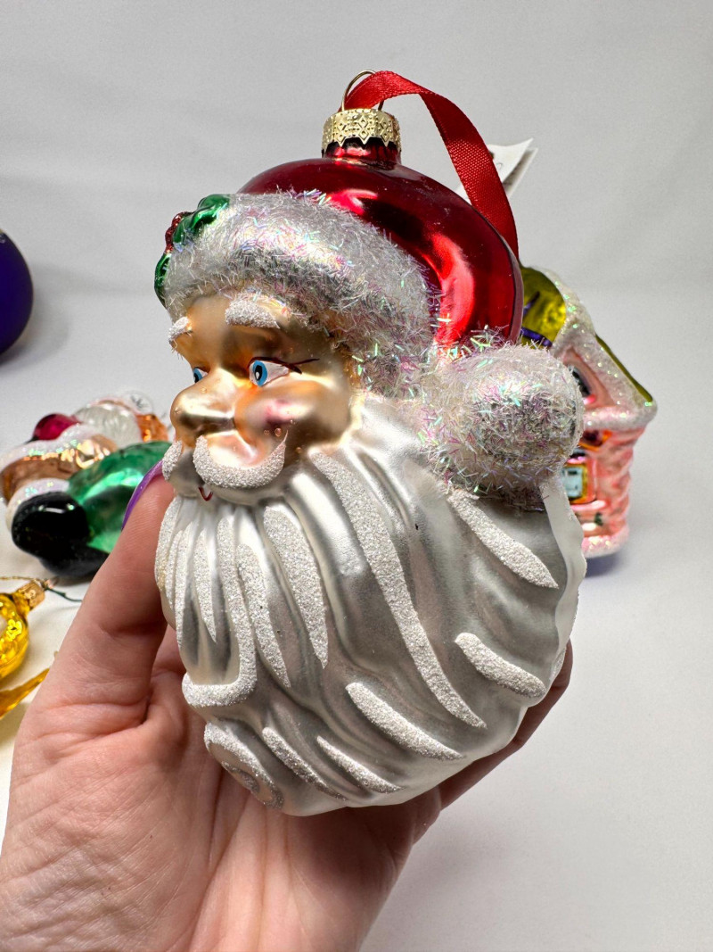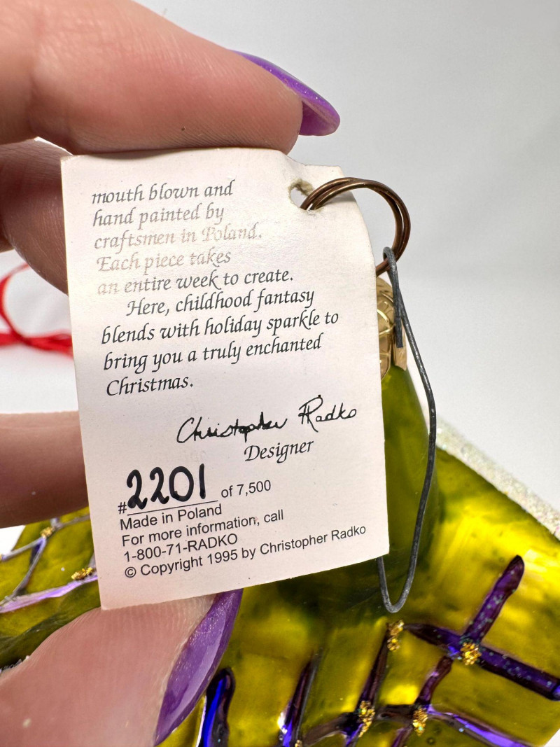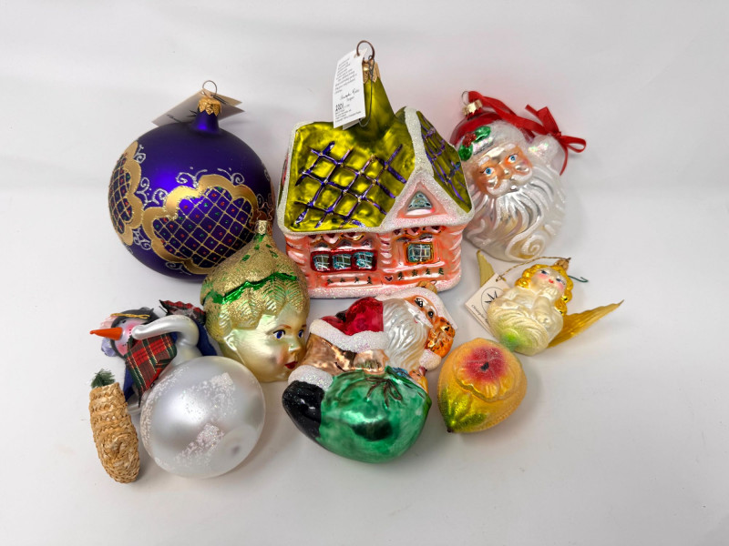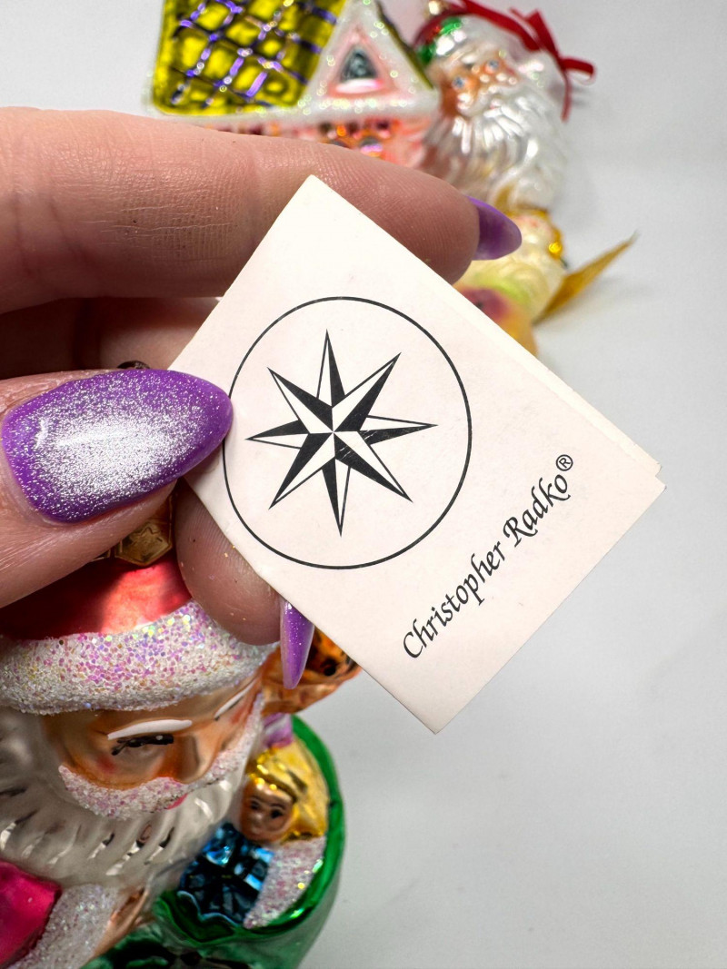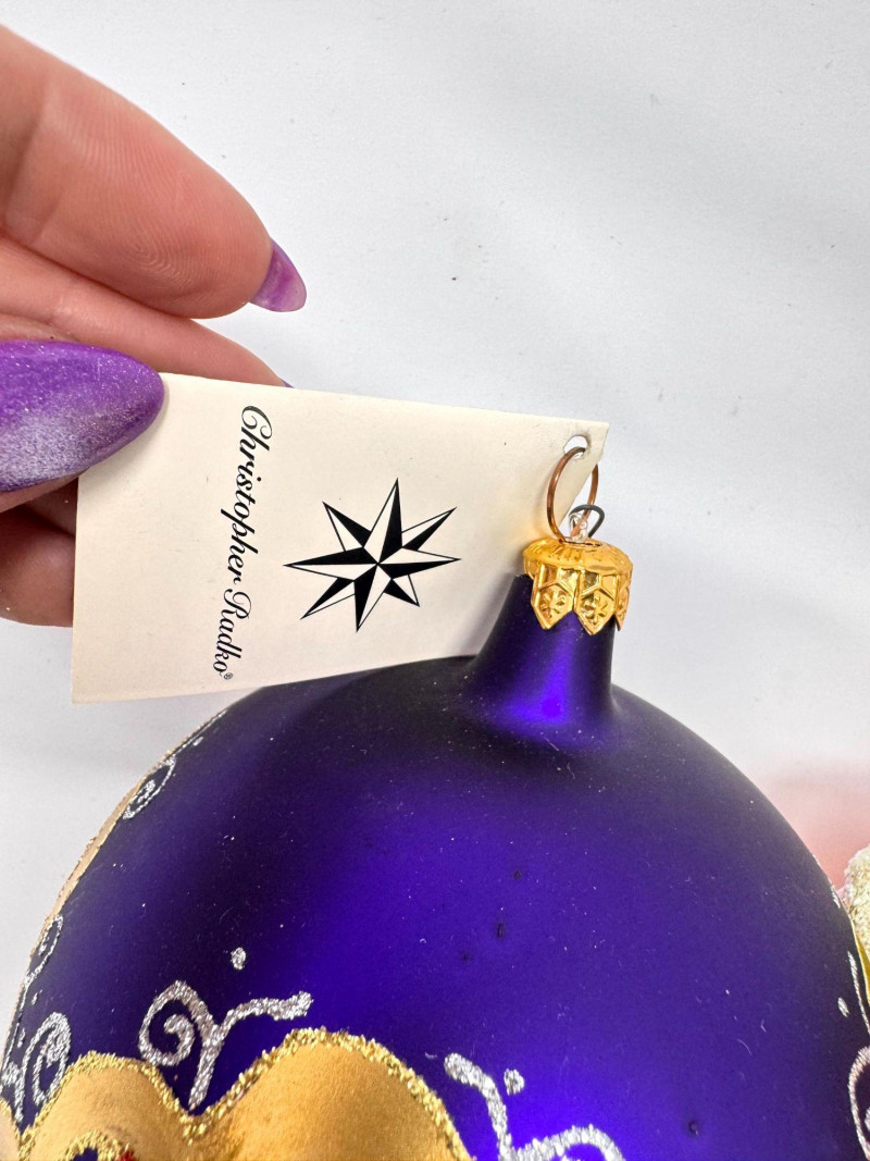 Large Christopher Radko Hand-Blown Glass Christmas Ornaments.