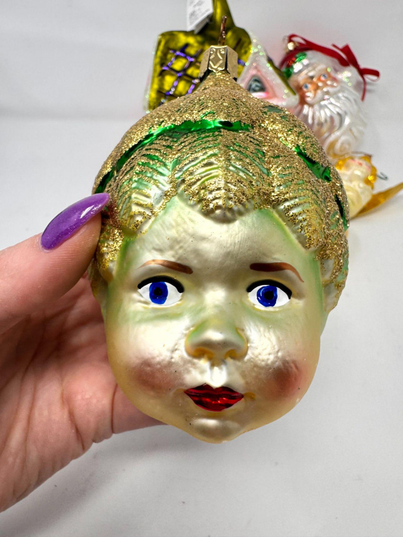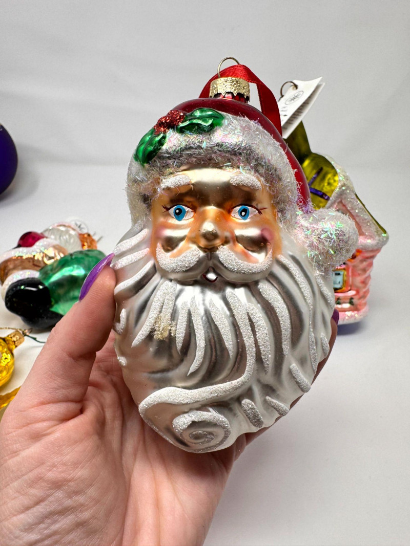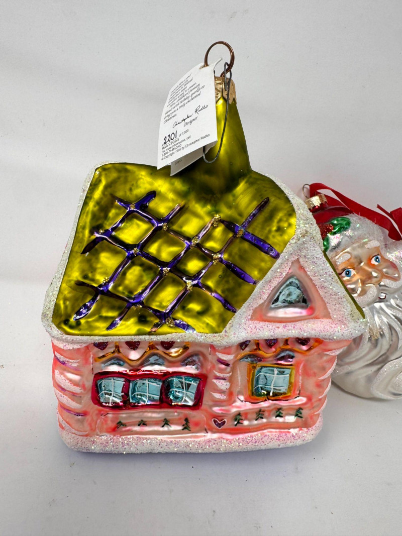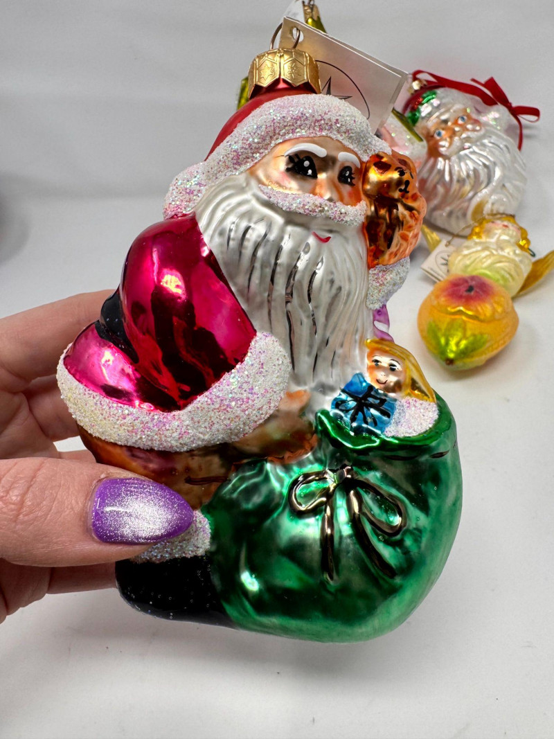 Large Christopher Radko Hand-Blown Glass Christmas Ornaments.