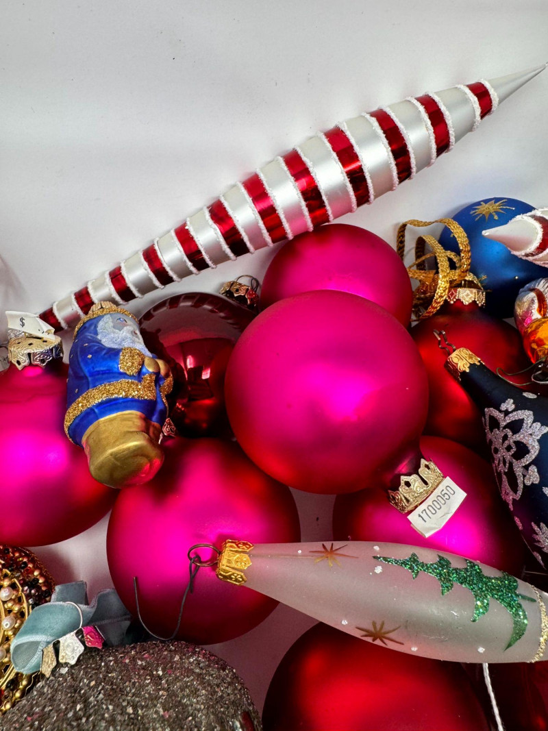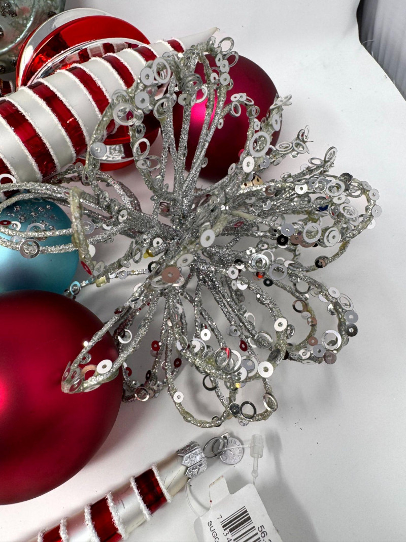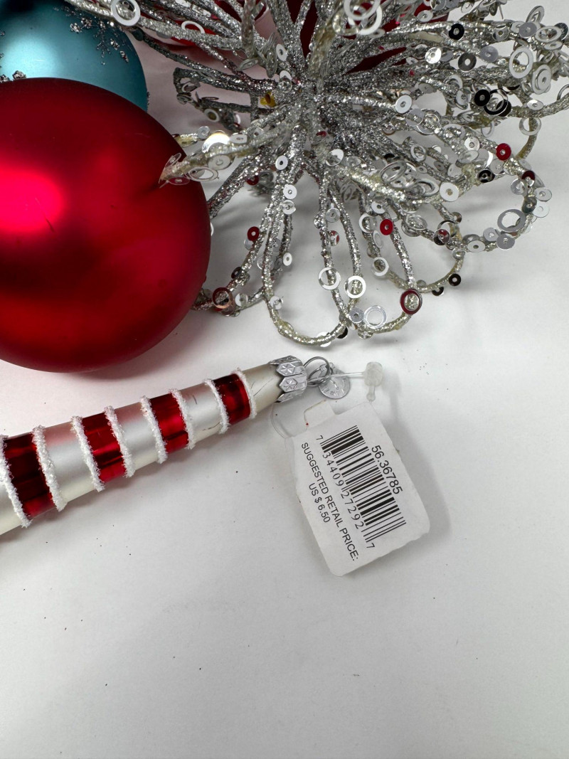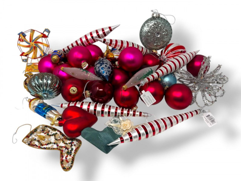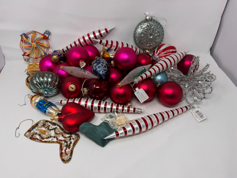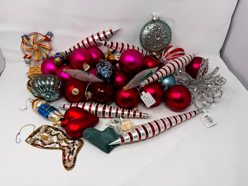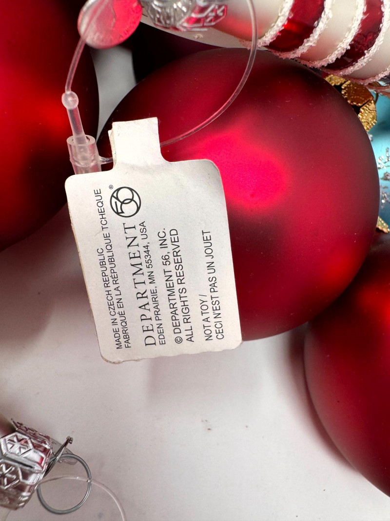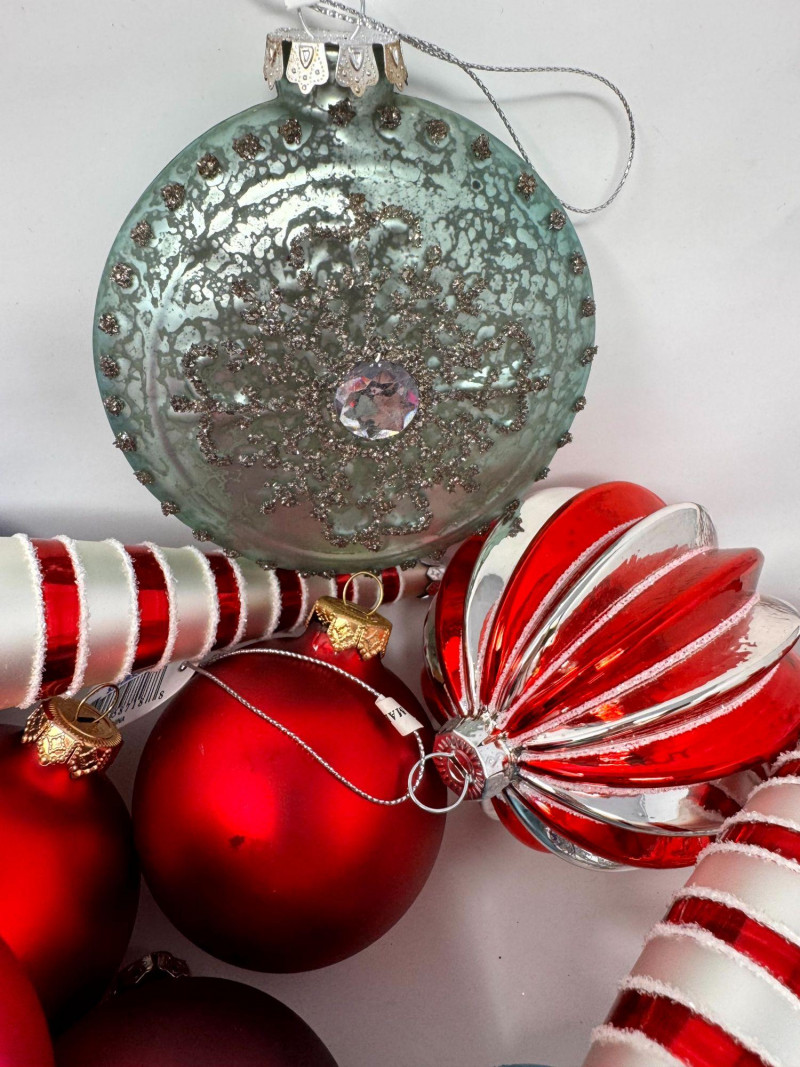 Lot # 122 - Hand-Blown Glass Christmas Ornaments in Red & Silver Tones
