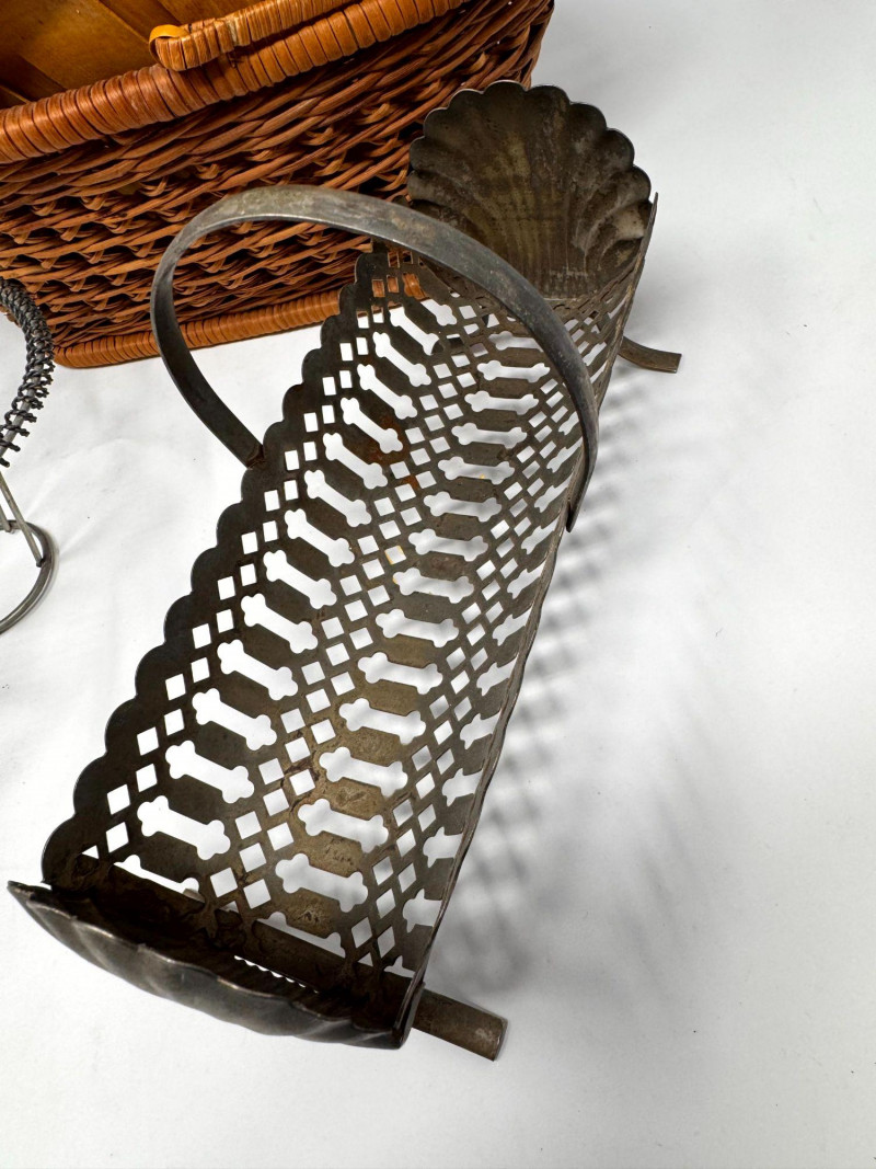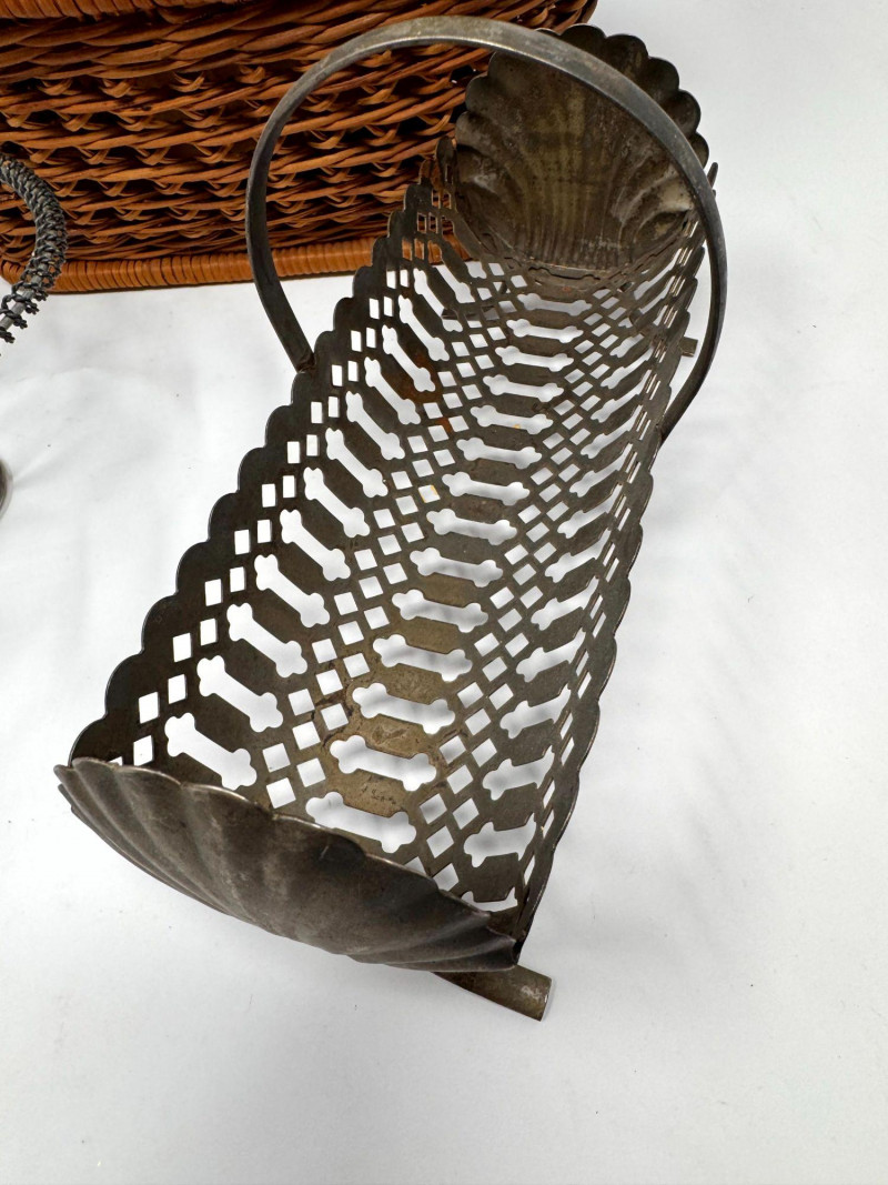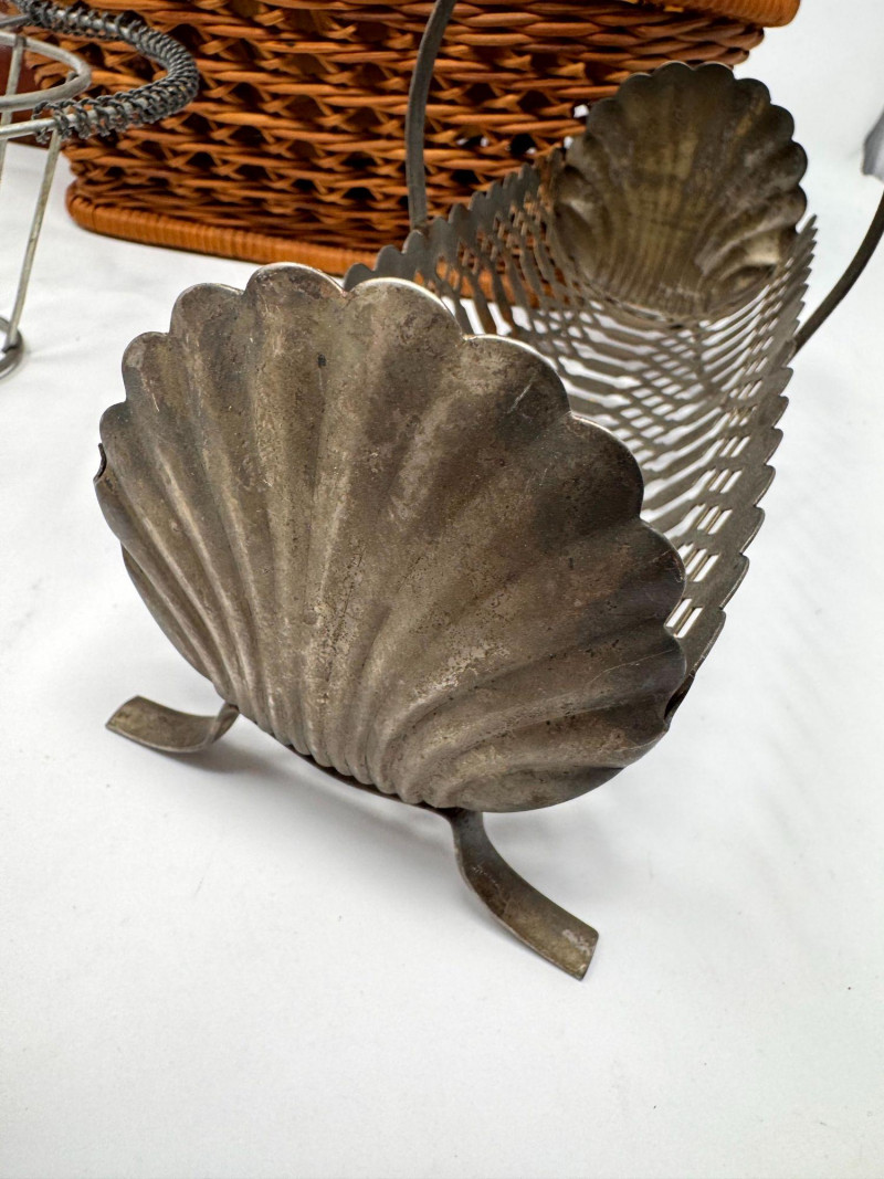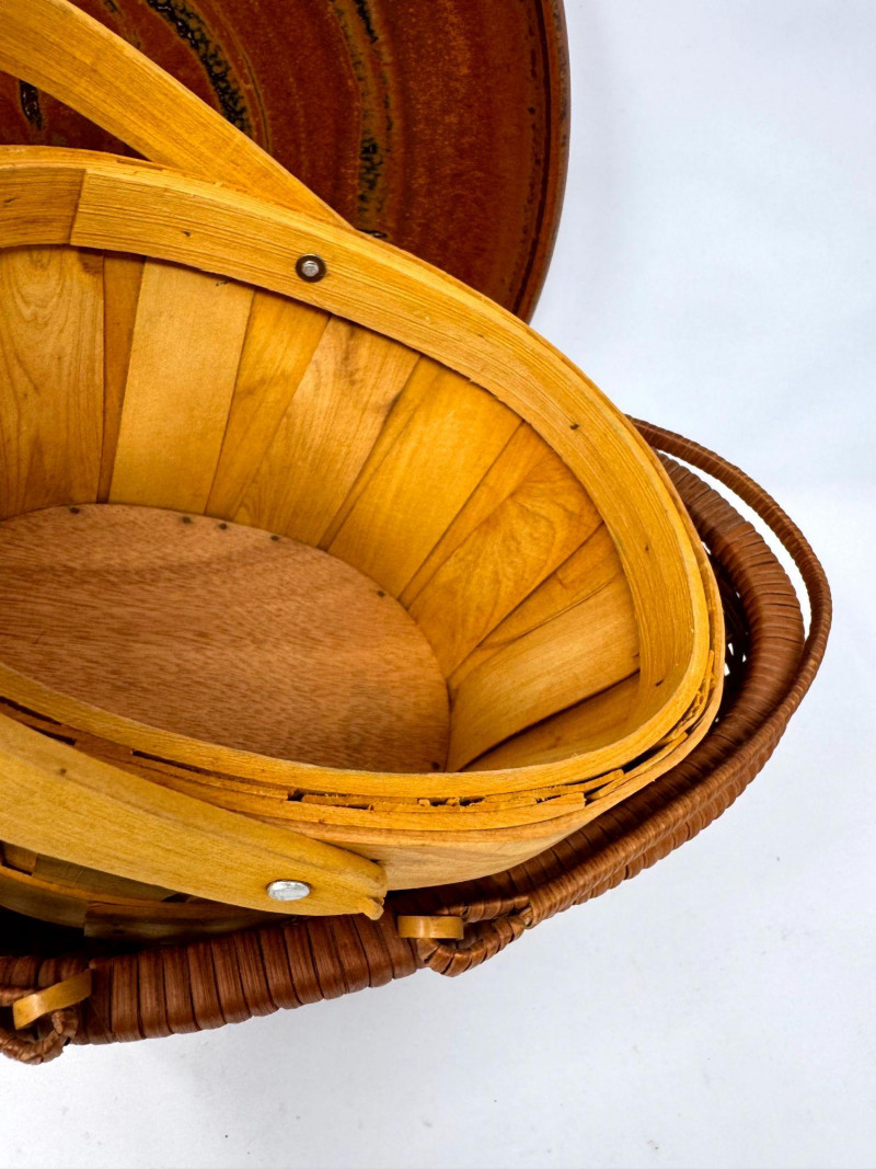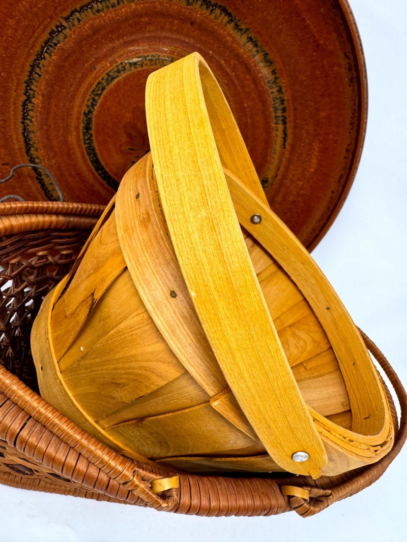 Lot # 129 - Vintage Farmhouse Baskets & Wire Egg Baskets w/ Signed Pottery Plate