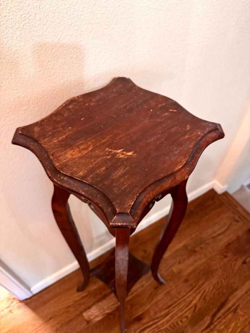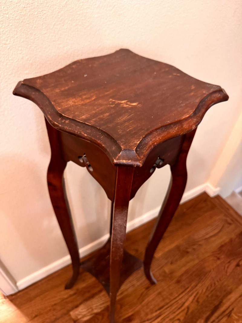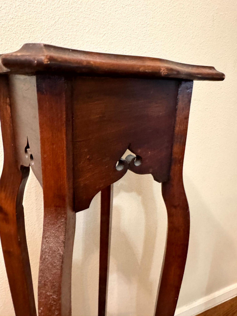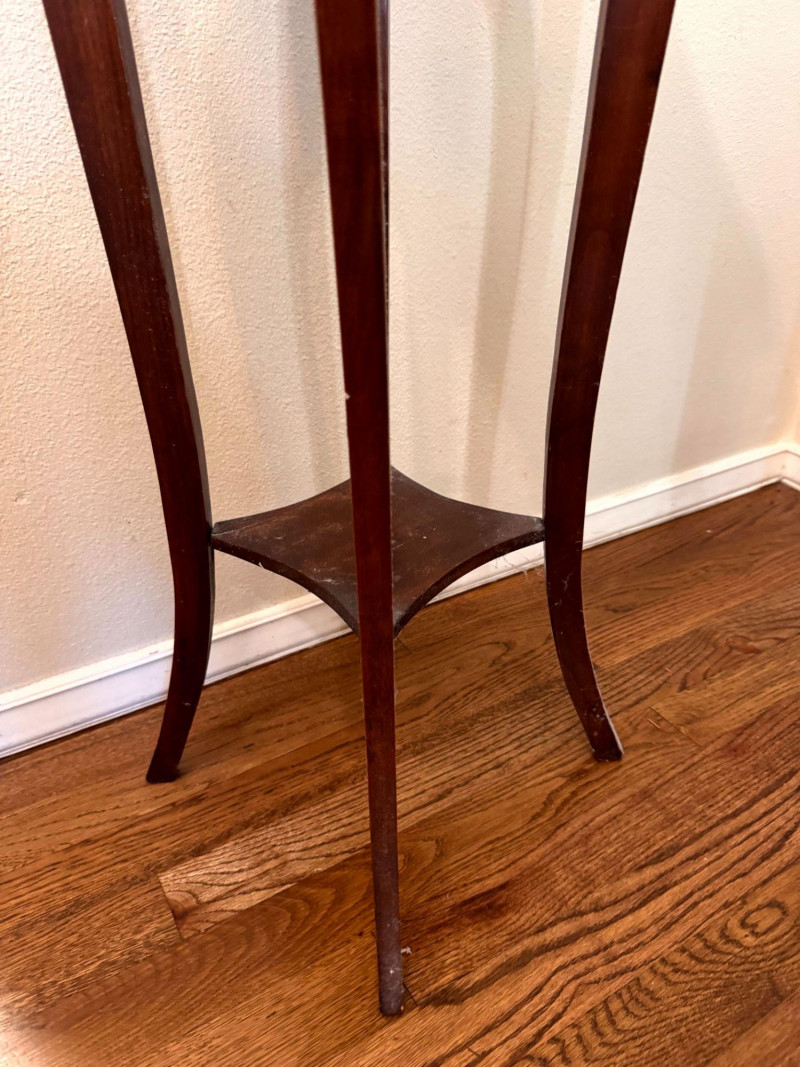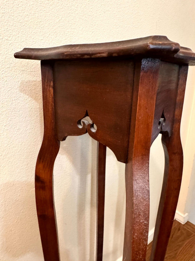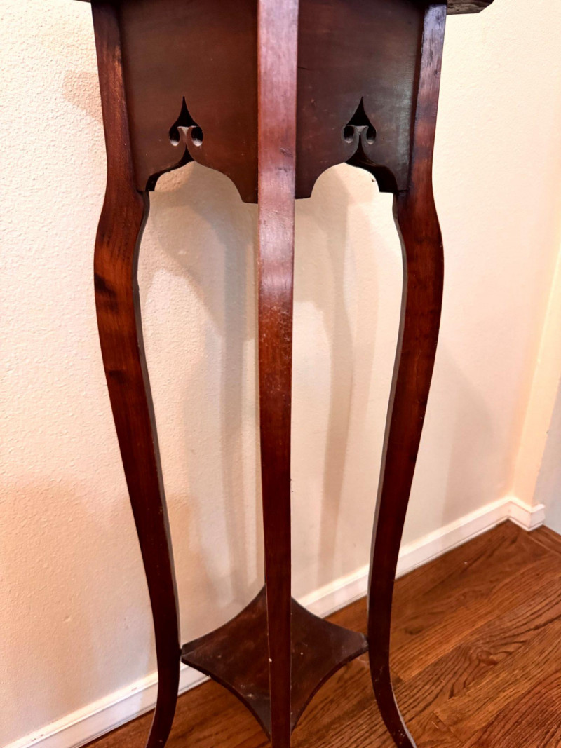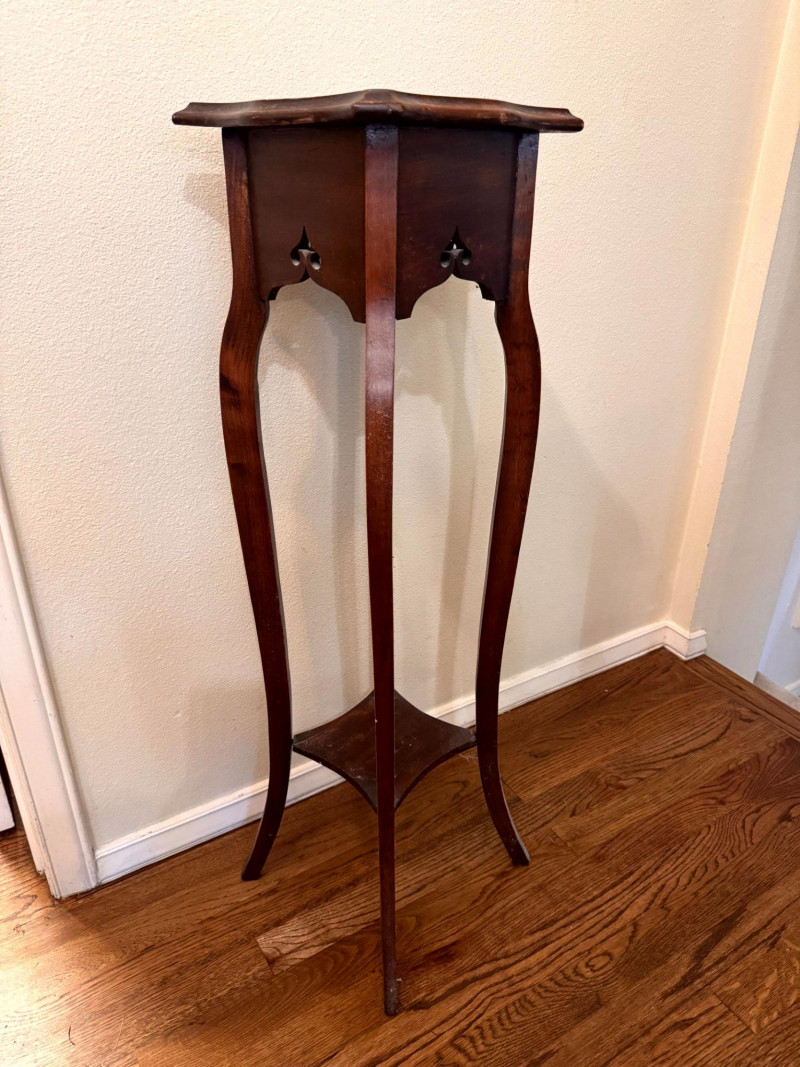 Antique Tall Wood Plant Stand w/ Curved Legs & Shelf.