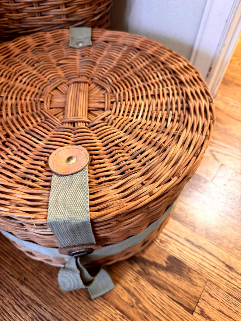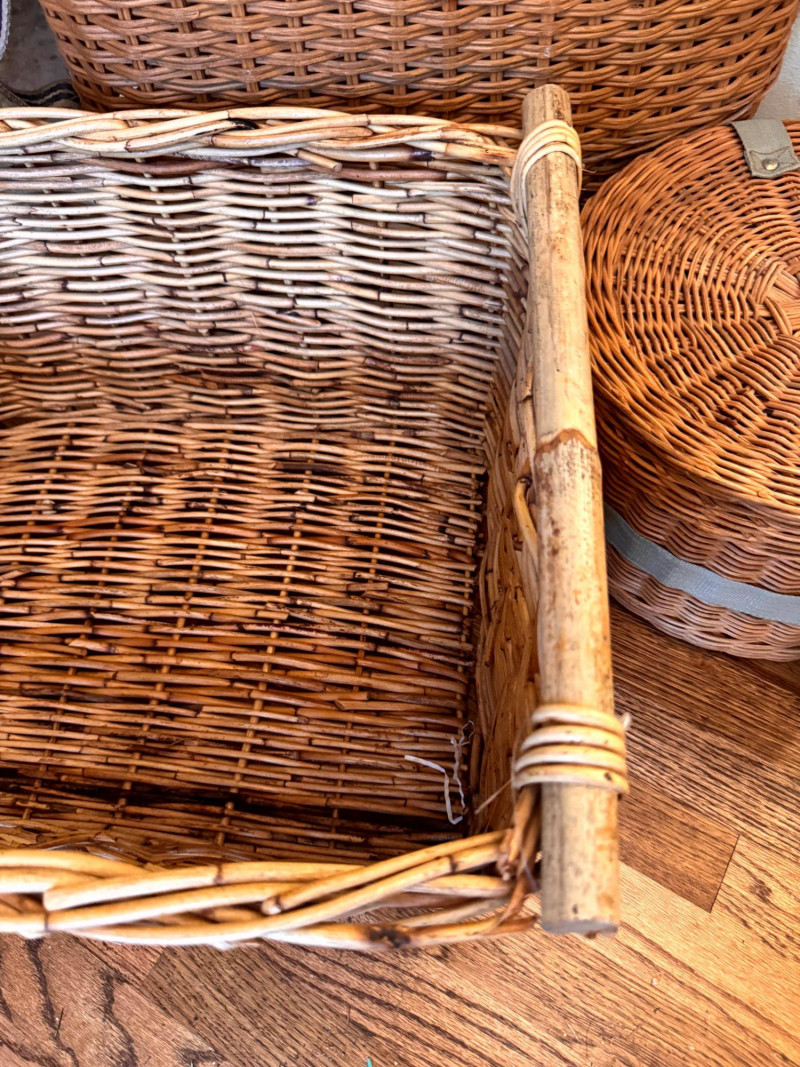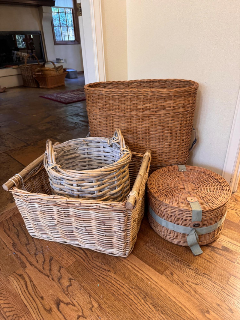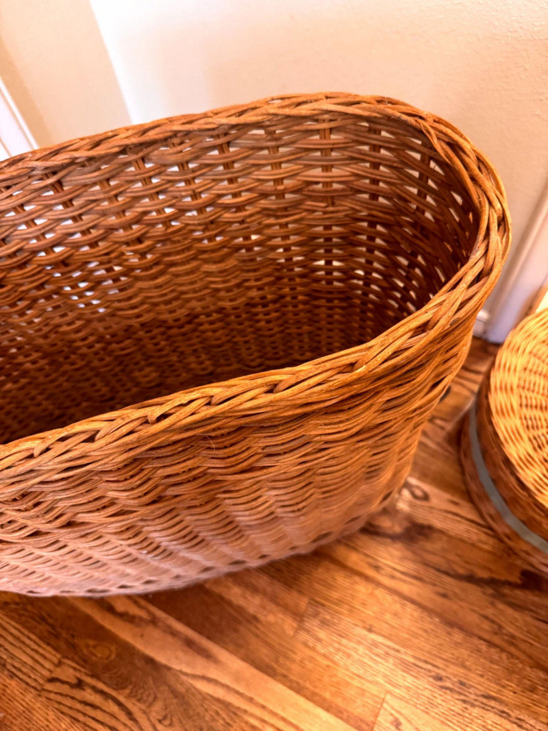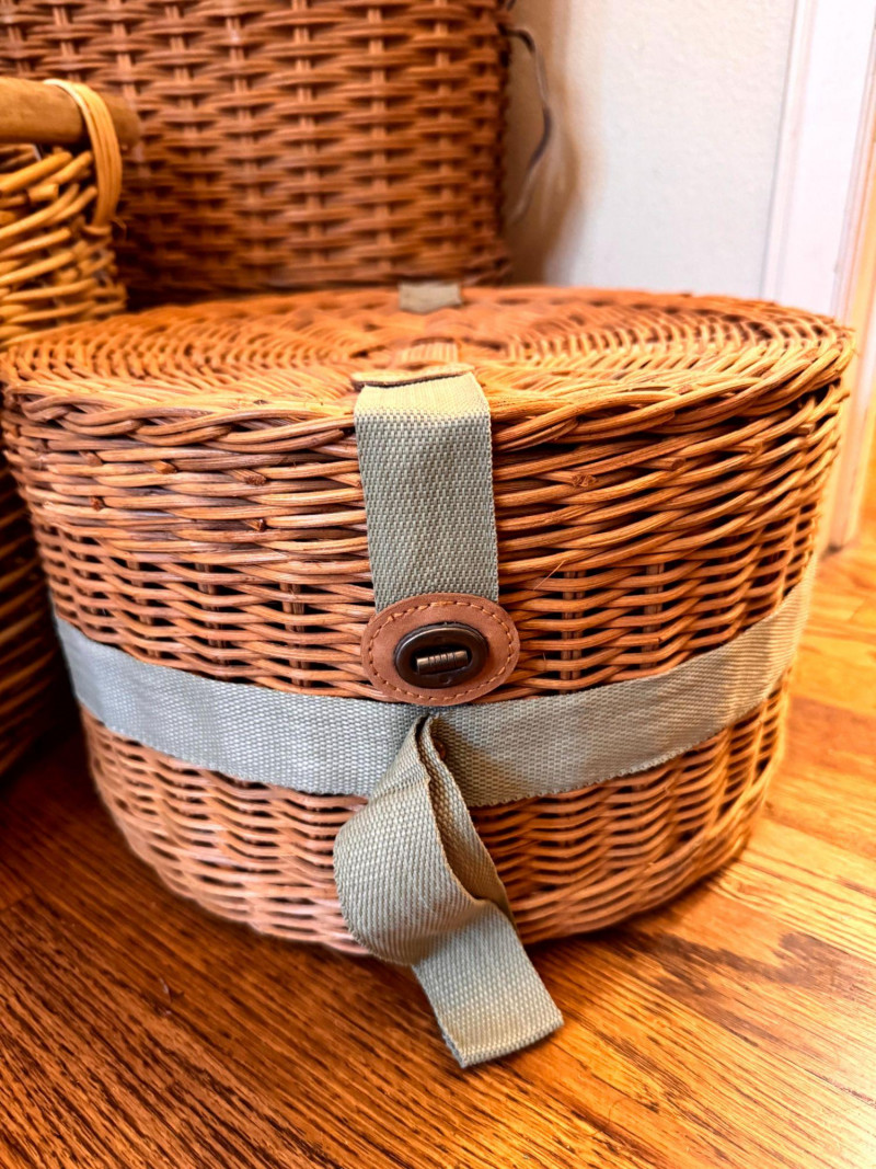 Large Wicker Baskets Set w/ Hat Box & Tall Storage Basket.