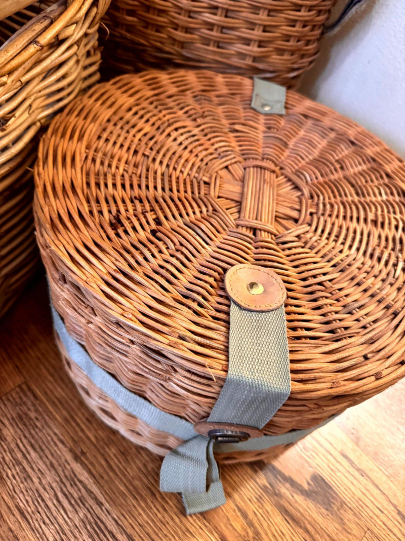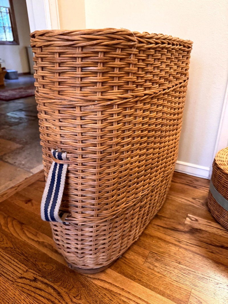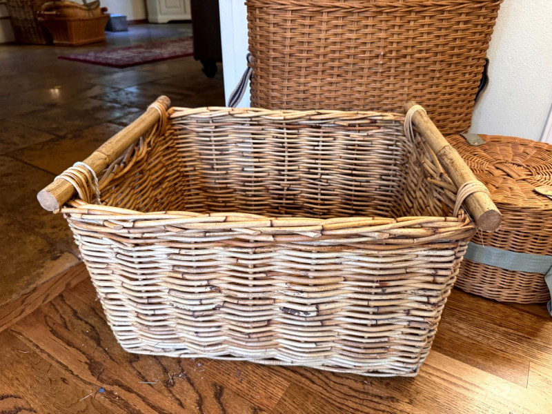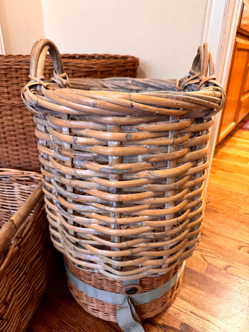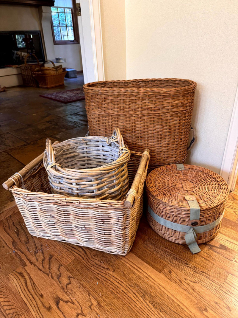 Large Wicker Baskets Set w/ Hat Box & Tall Storage Basket.