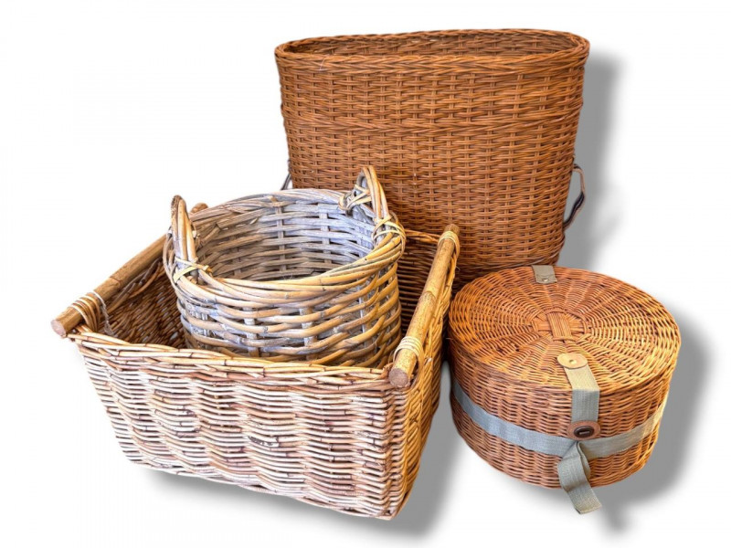 Lot # 136 - Large Wicker Baskets Set w/ Hat Box & Tall Storage Basket