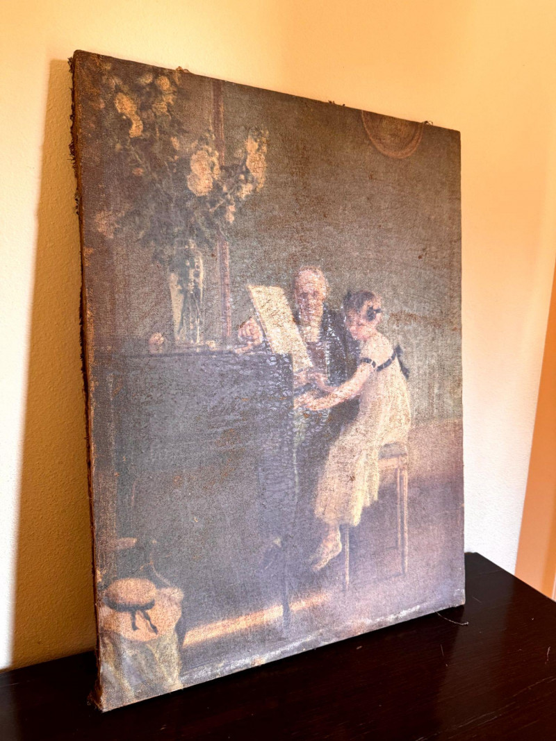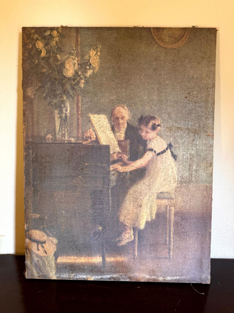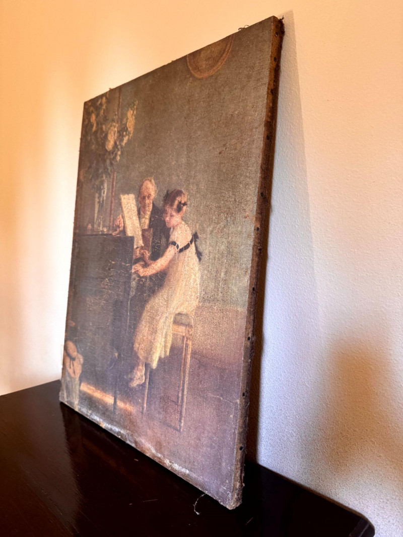 Antique Style Canvas Print “Piano Lesson” After Jules-Alexis Muenier.
