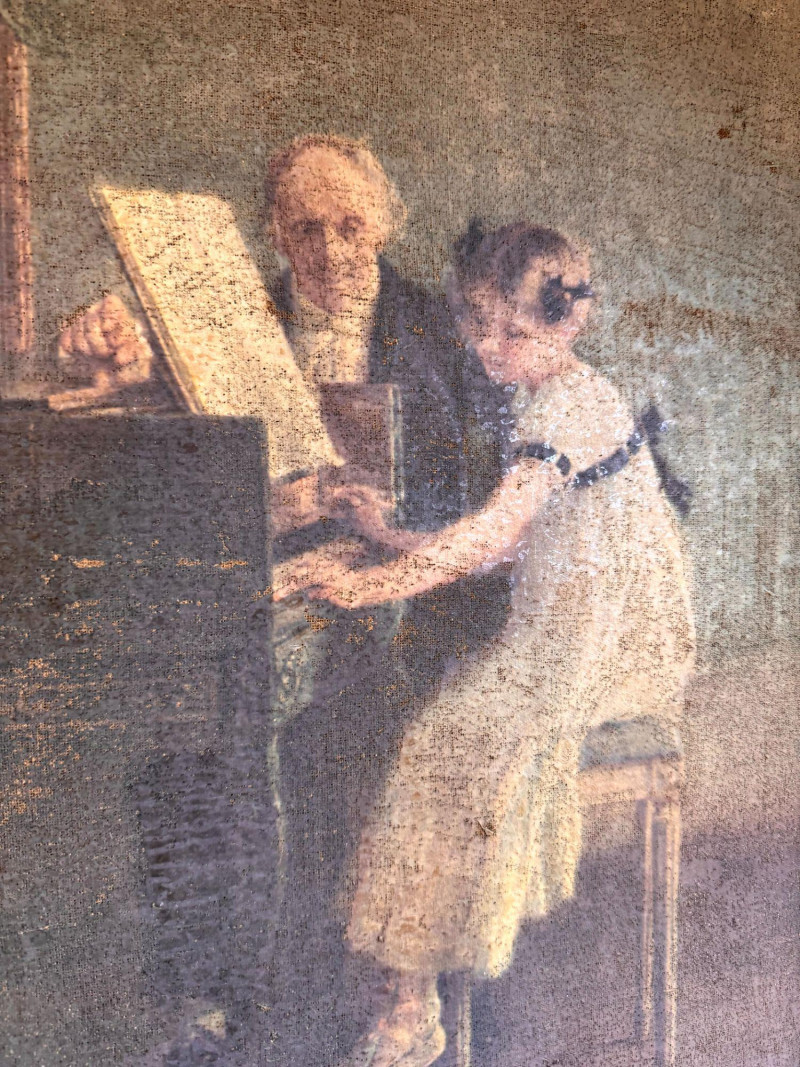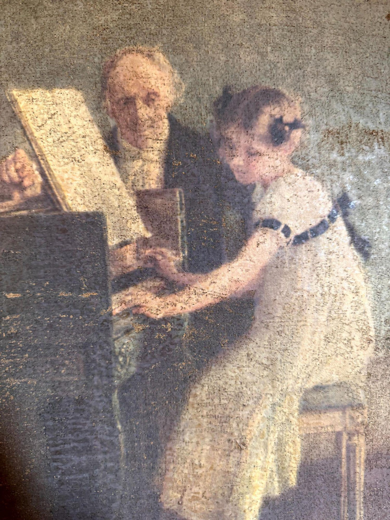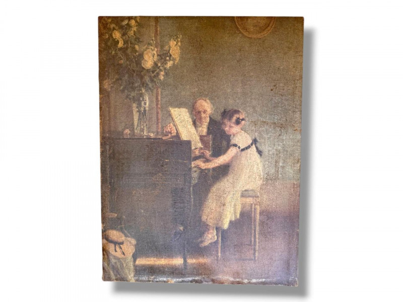 Lot # 139 - Antique Style Canvas Print “Piano Lesson” After Jules-Alexis Muenier