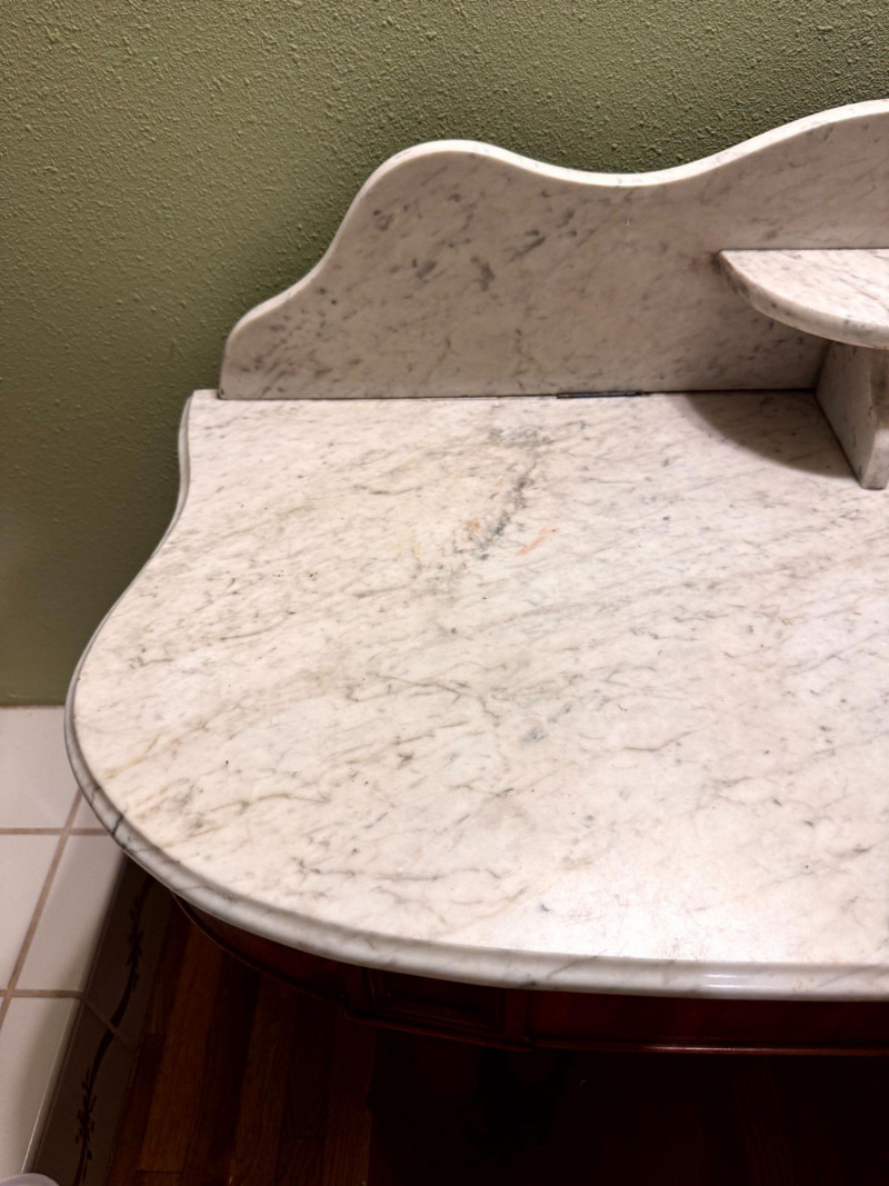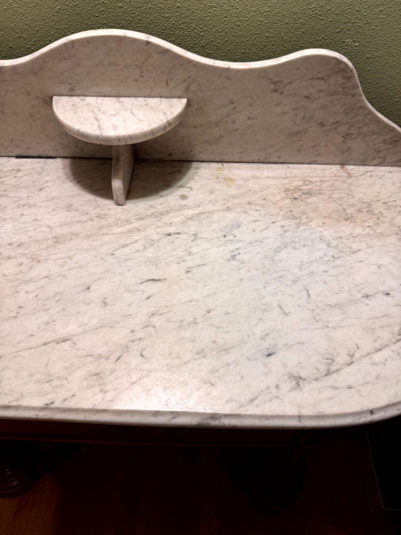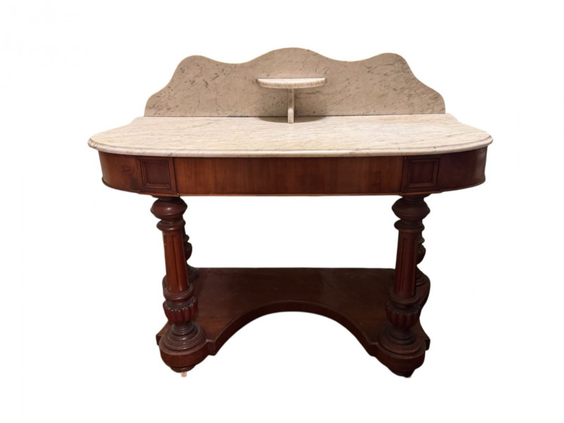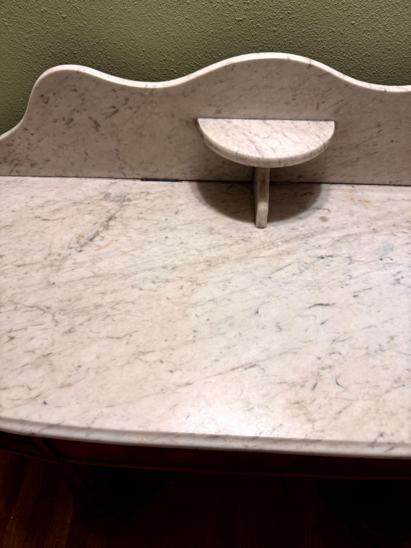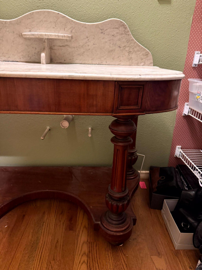 Antique Marble Top Wooden Washstand w/ Backsplash & Turned Legs.
