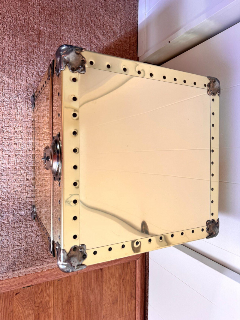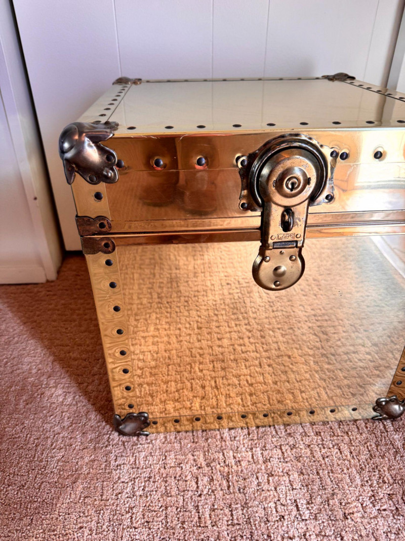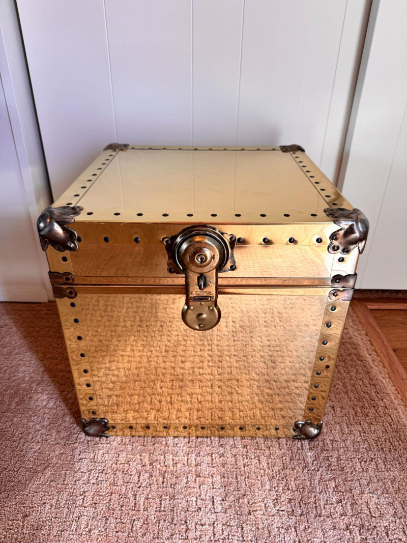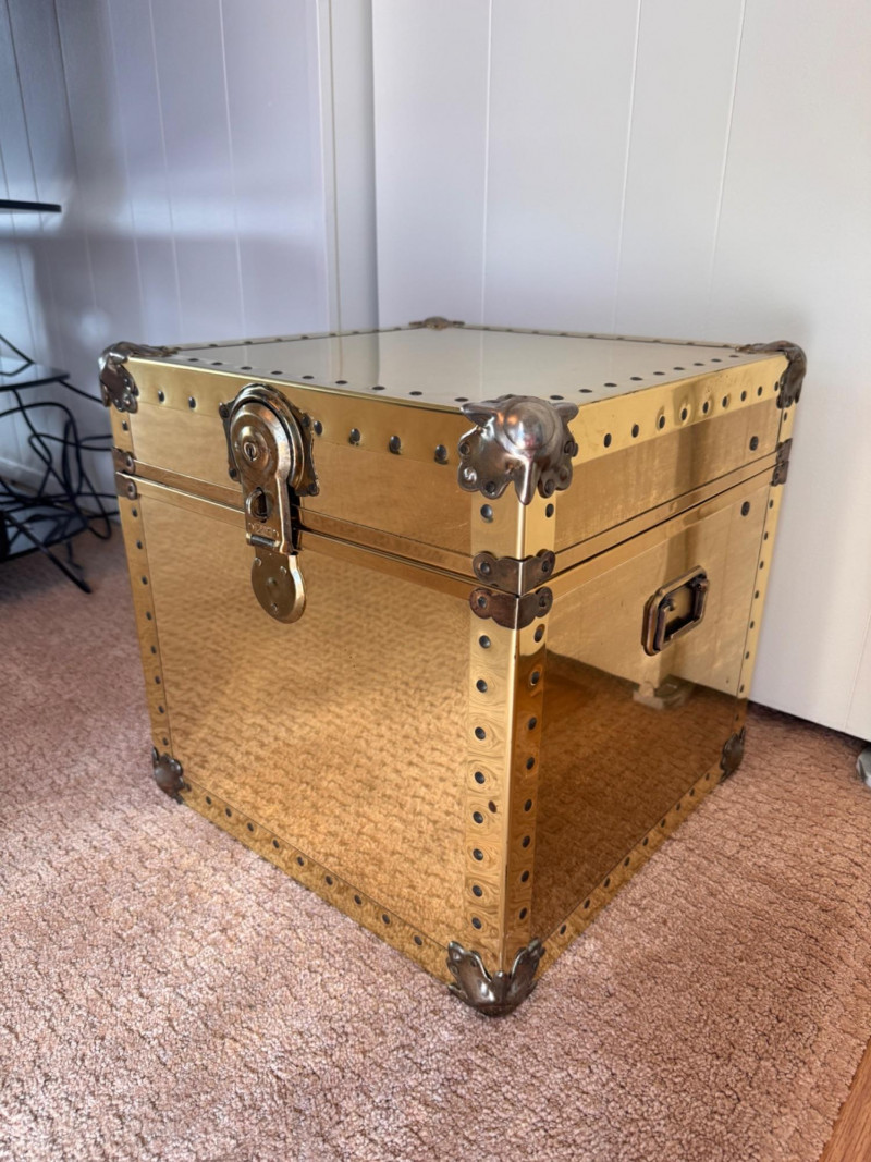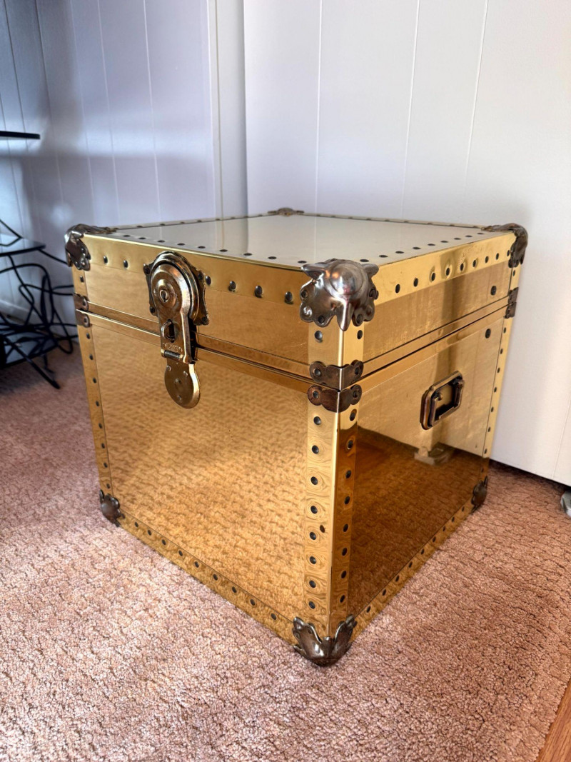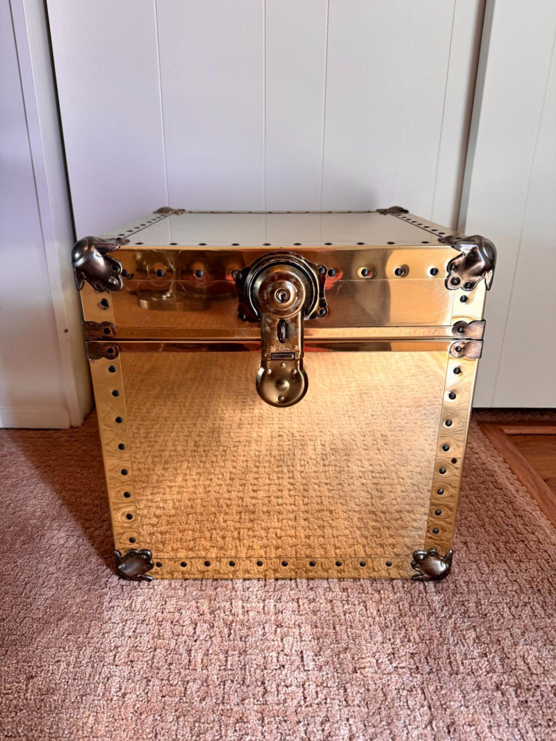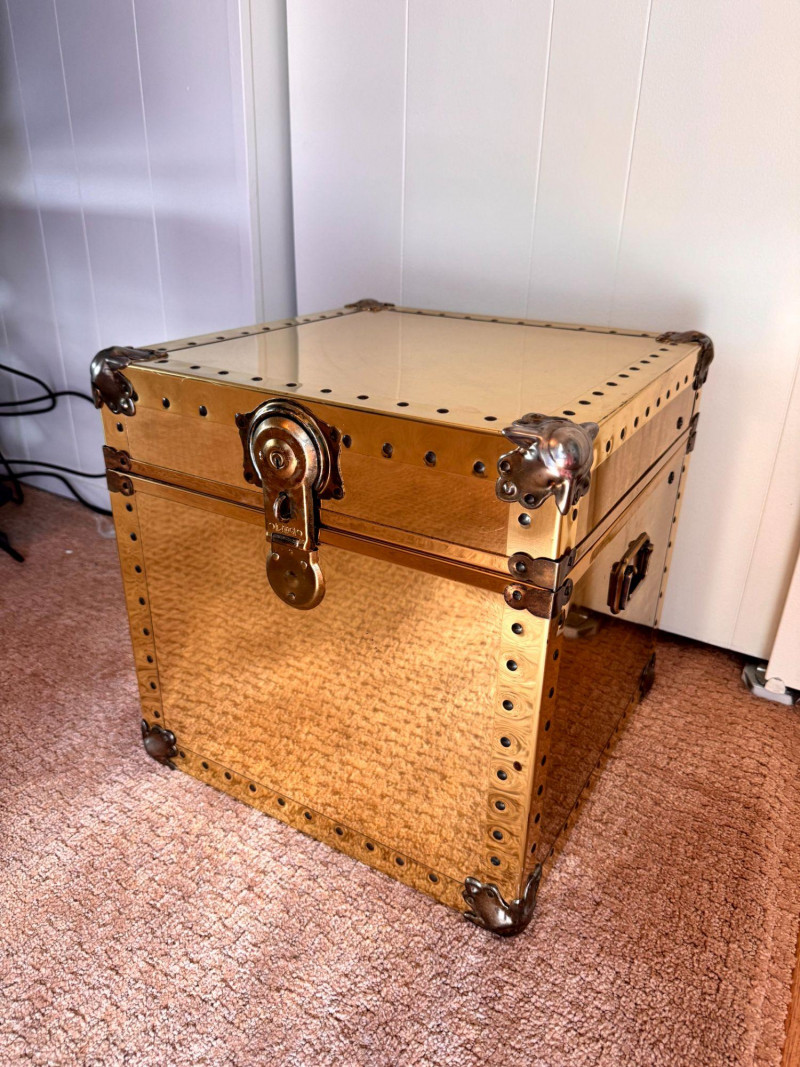 Vintage Gold Tone Metal Cube Storage Trunk/Table.