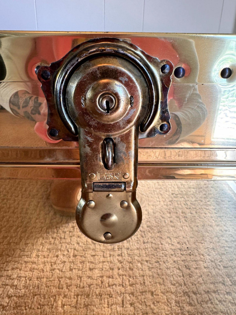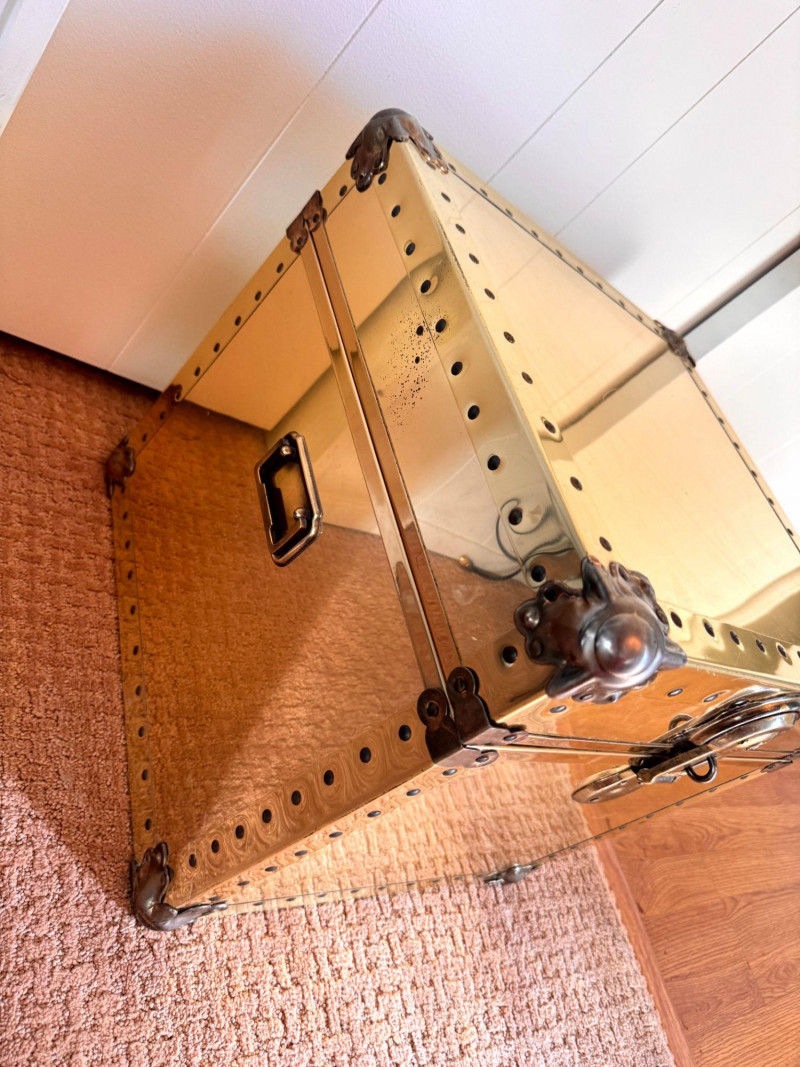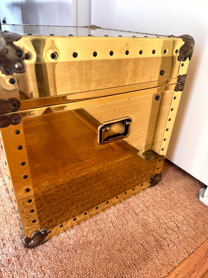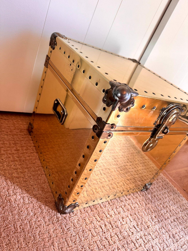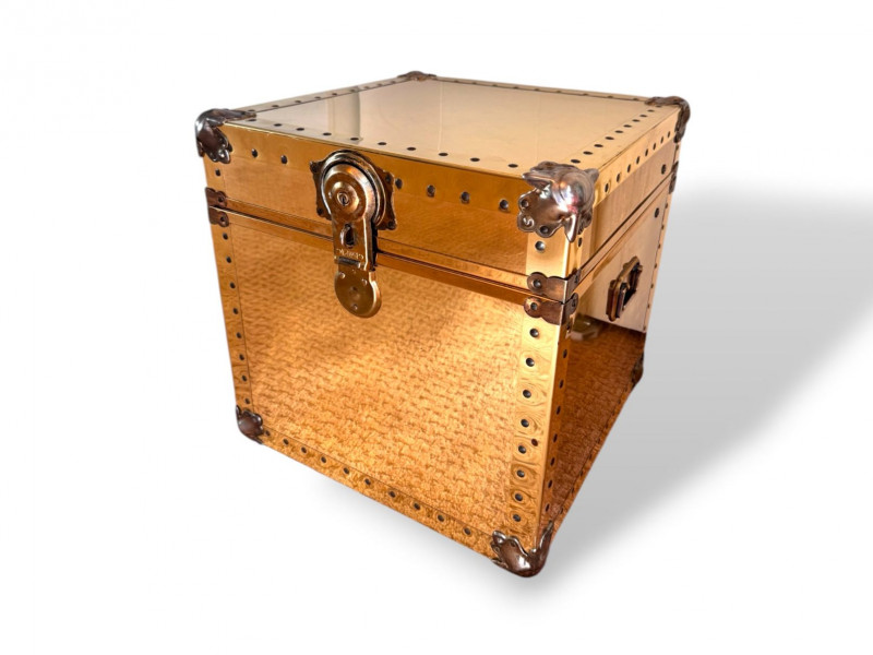 Lot # 5 - Vintage Gold Tone Metal Cube Storage Trunk/Table