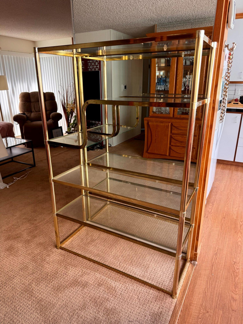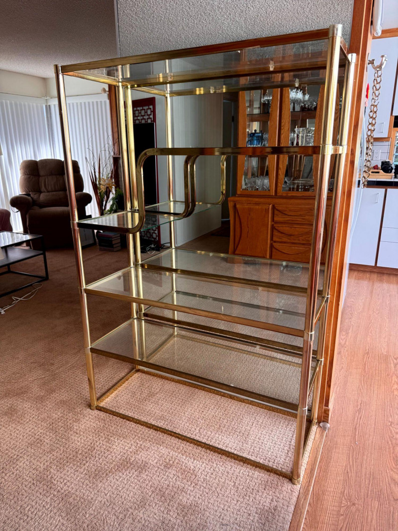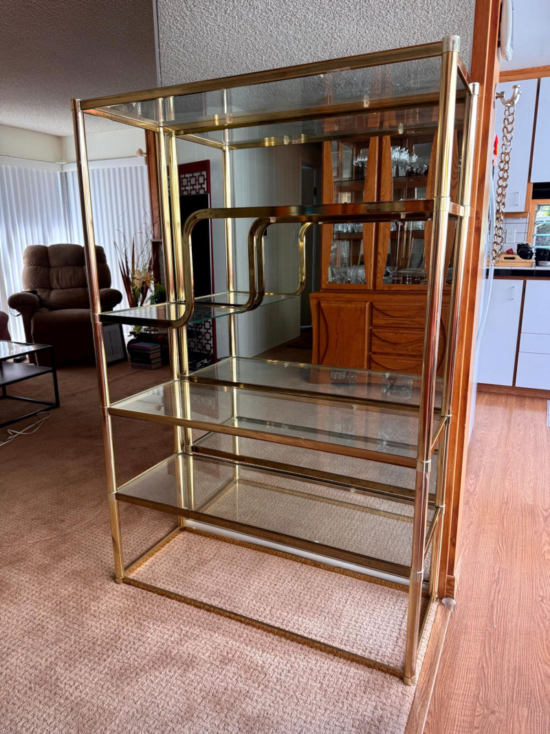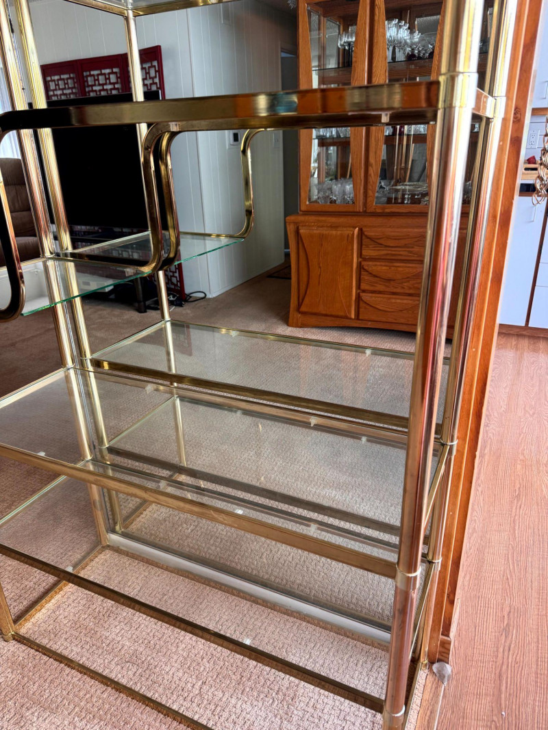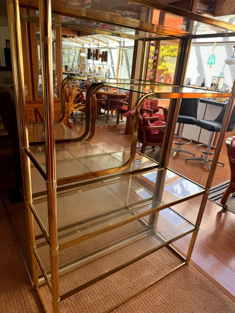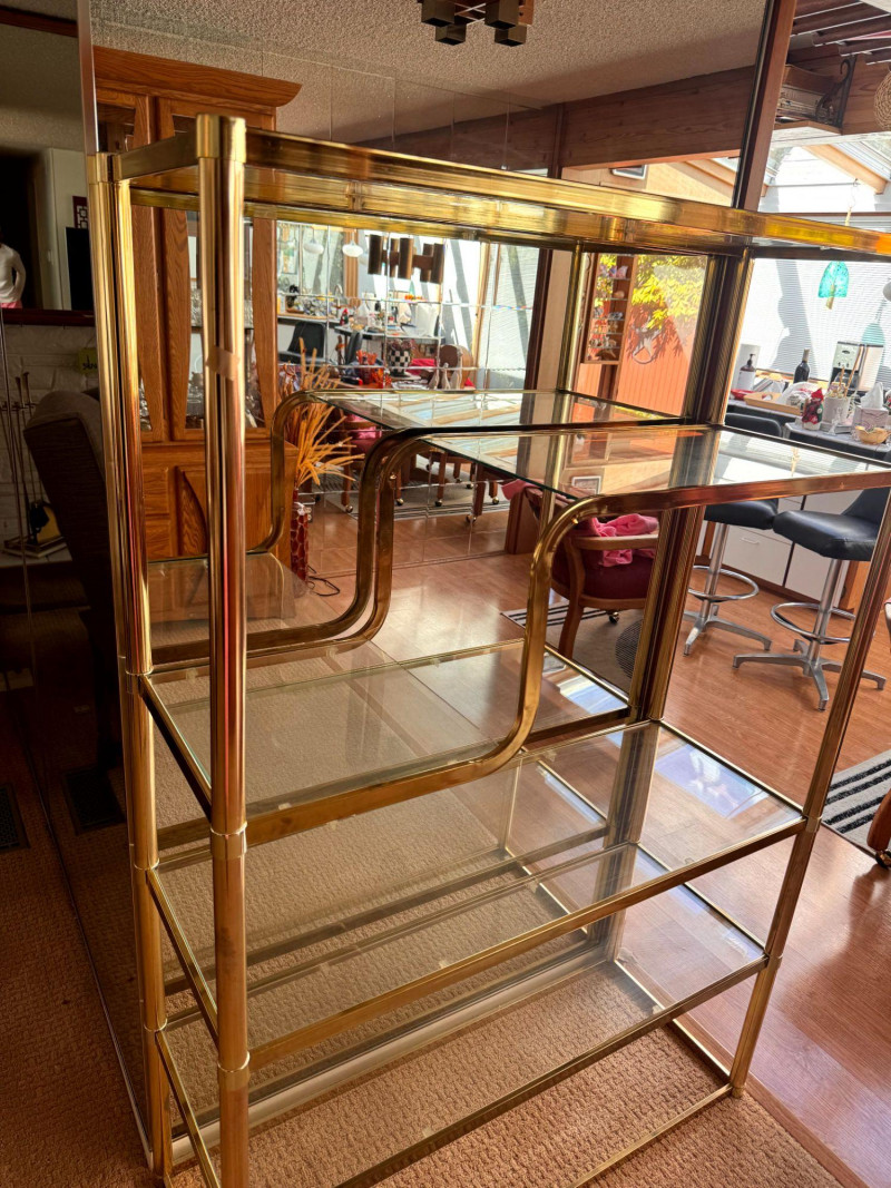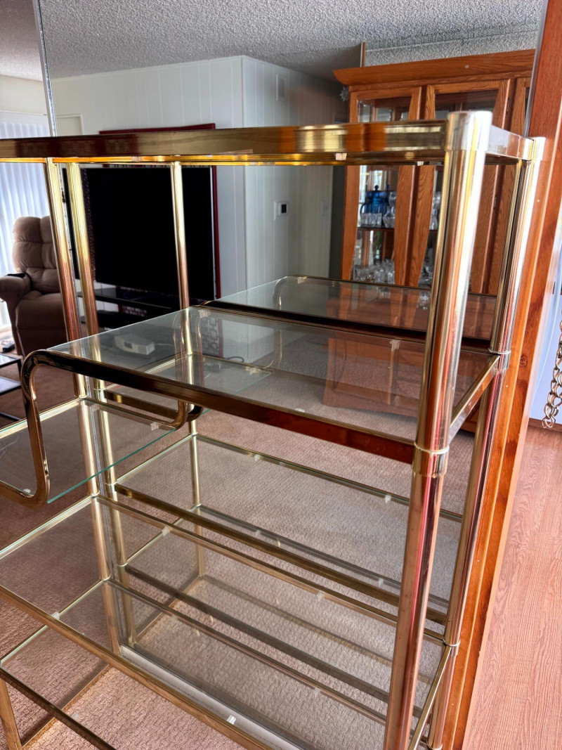 Lot # 6 - Vintage Gold Tone Etagere Glass Shelves in Milo Baughman Style