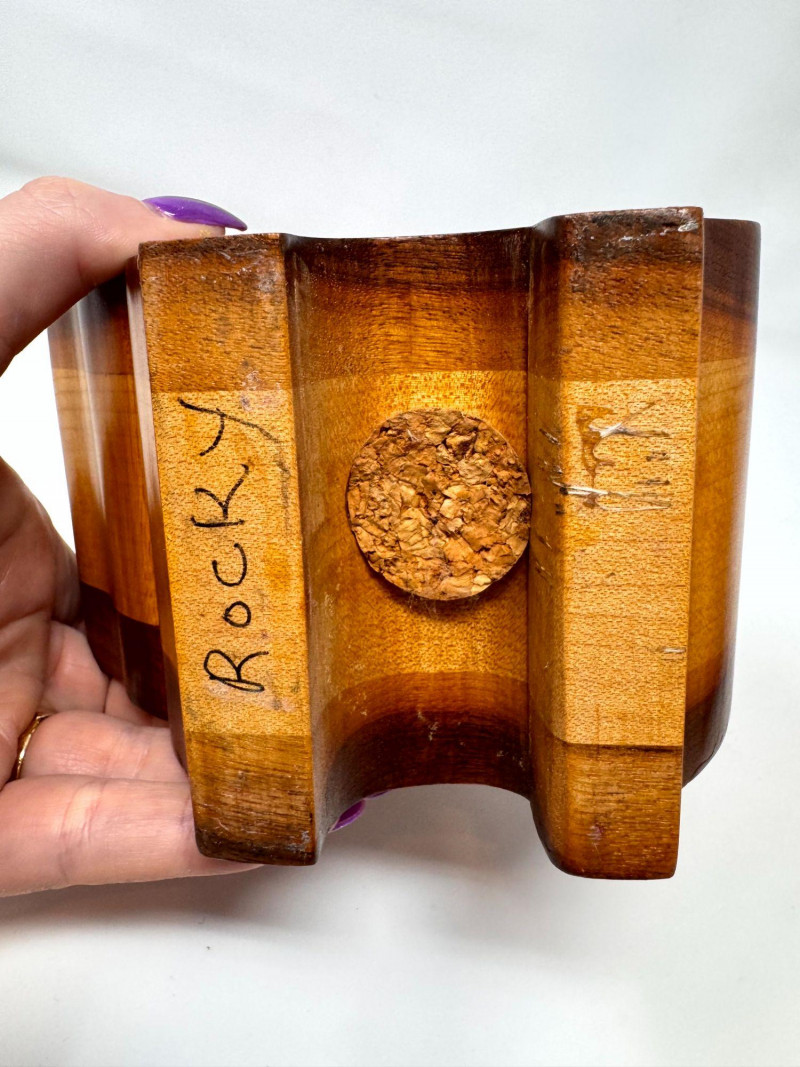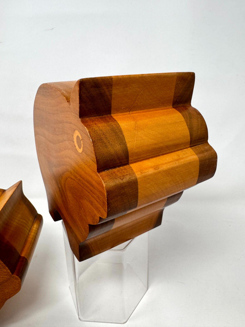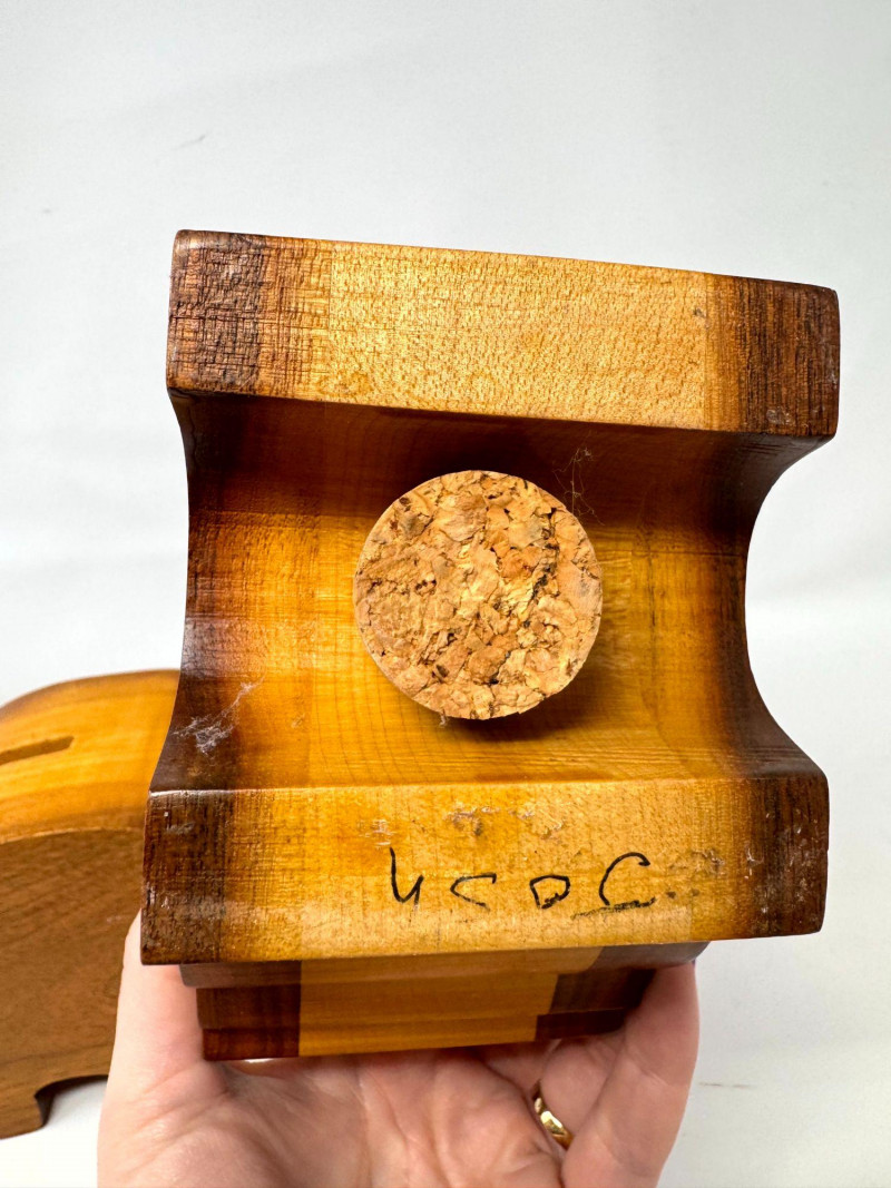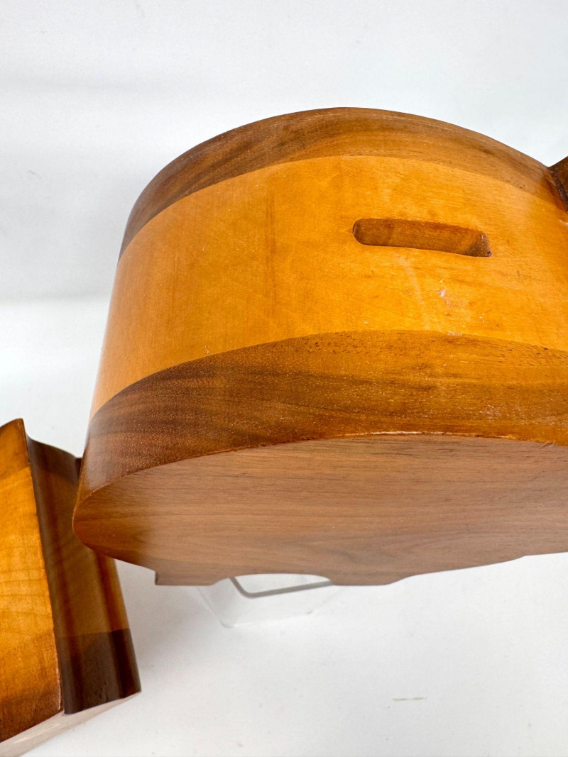 Lot # 17 - 2 Handcrafted Wood Piggy Banks Carved Pig Design