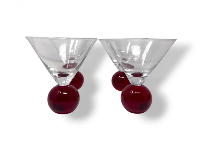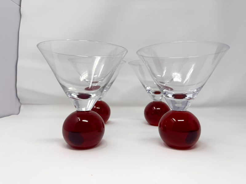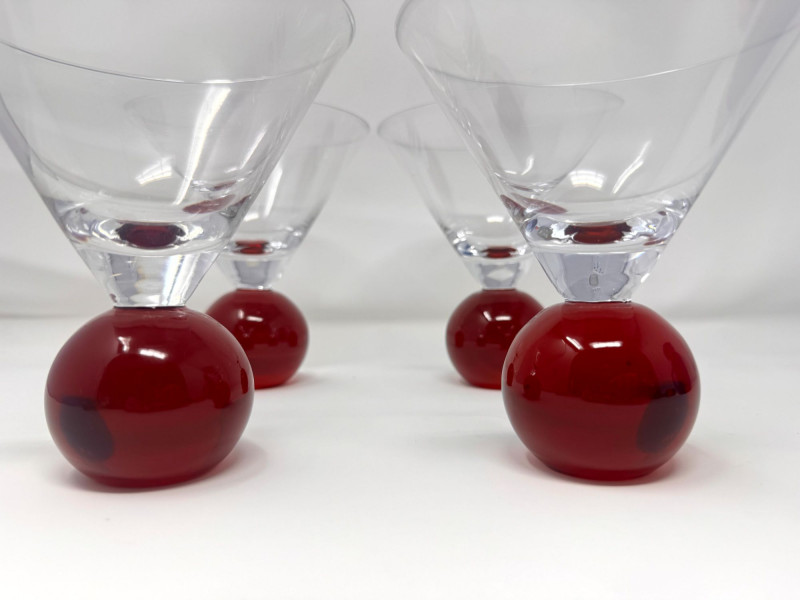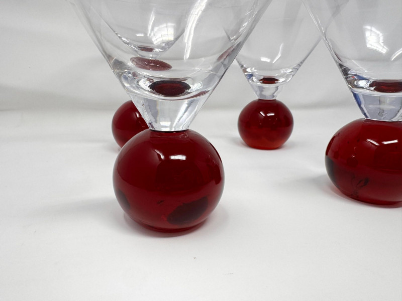 Lot # 19 - Vintage Martini Glasses w/ Red Bubble Ball Base - Large