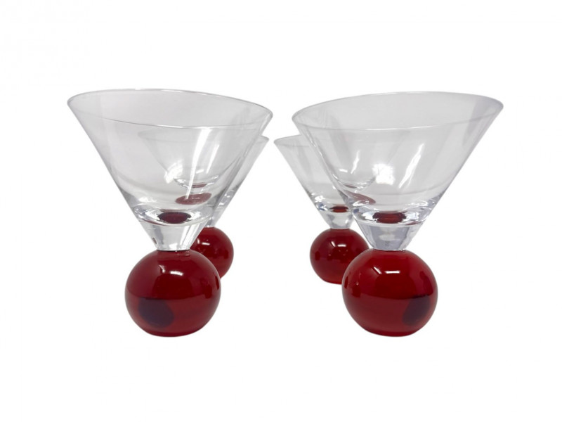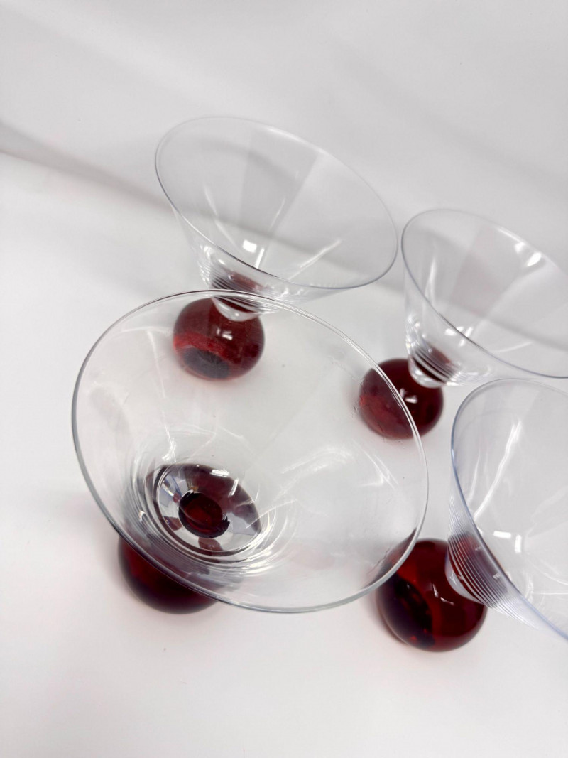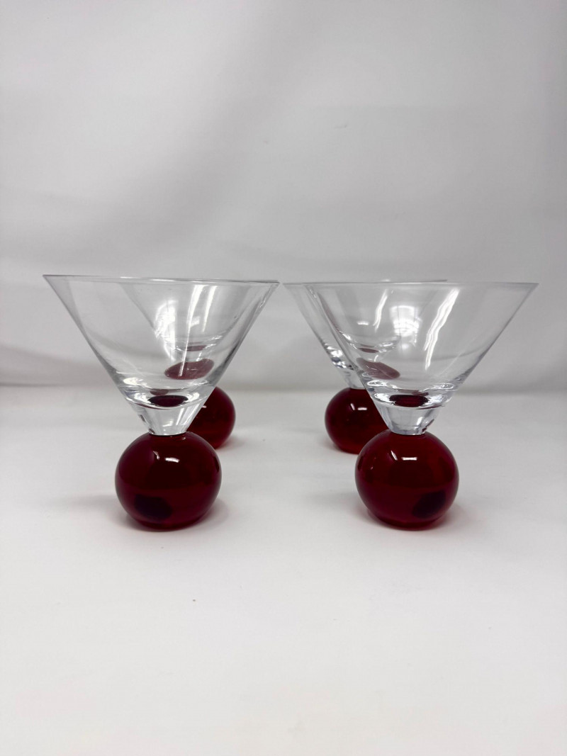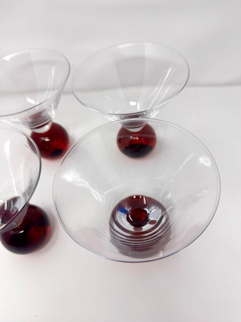 Vintage Martini Glasses w/ Red Bubble Ball Base - Large.