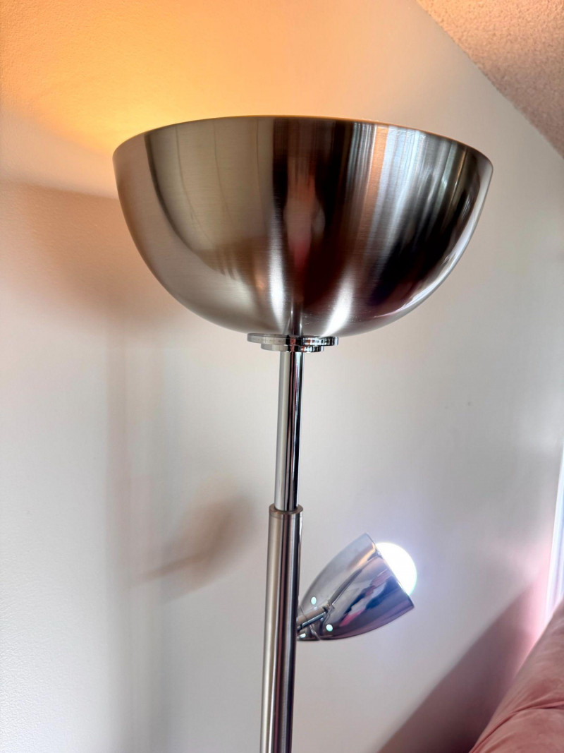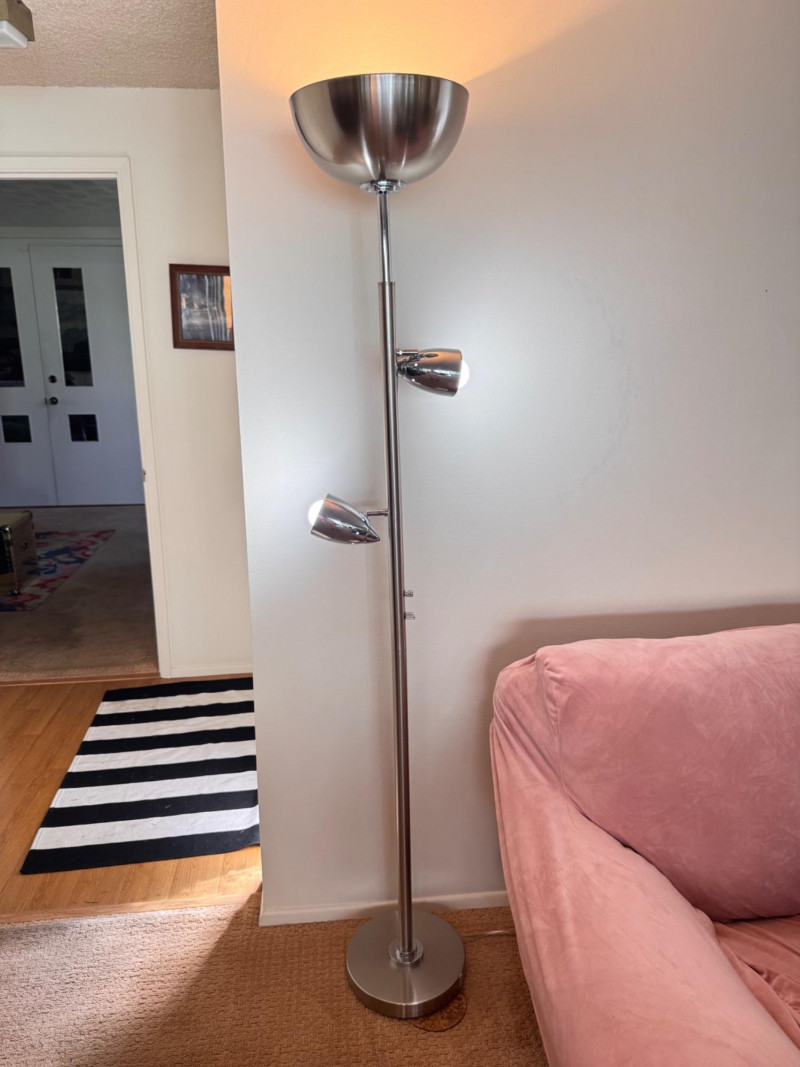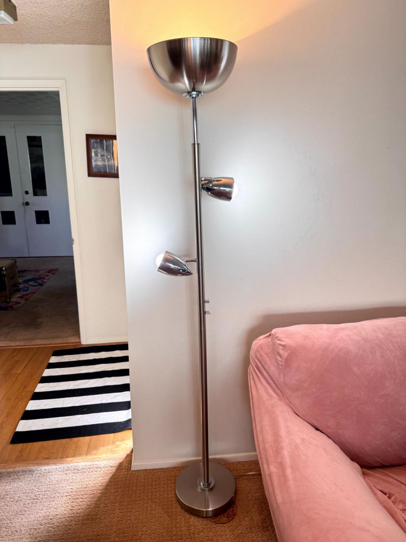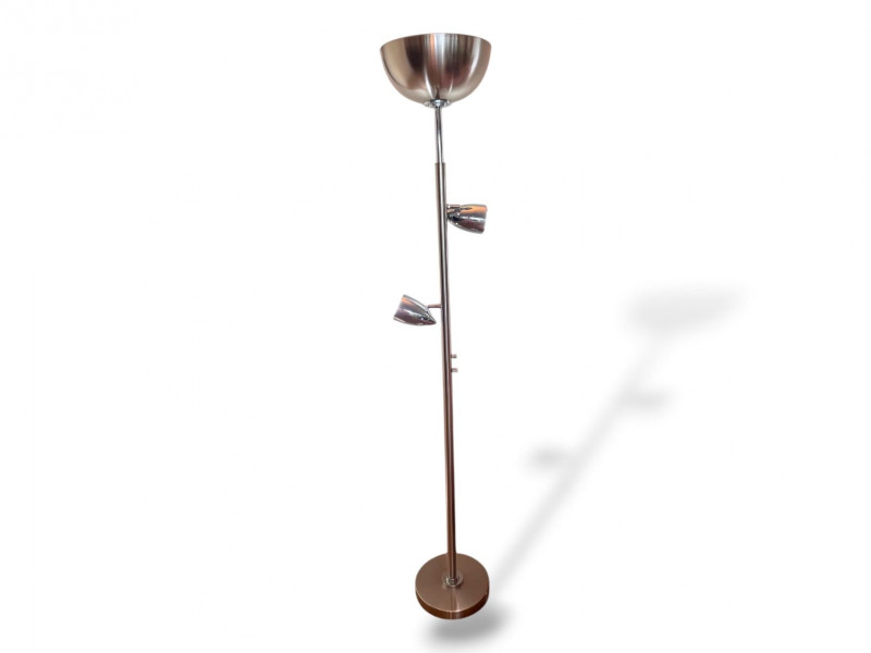 Silver Atomic Style Torchiere Floor Lamp w/ 2 Adjustable Side Lights.