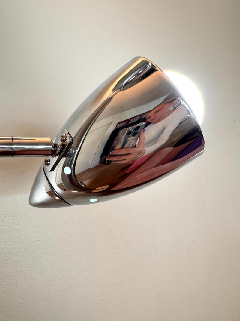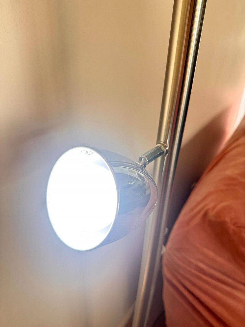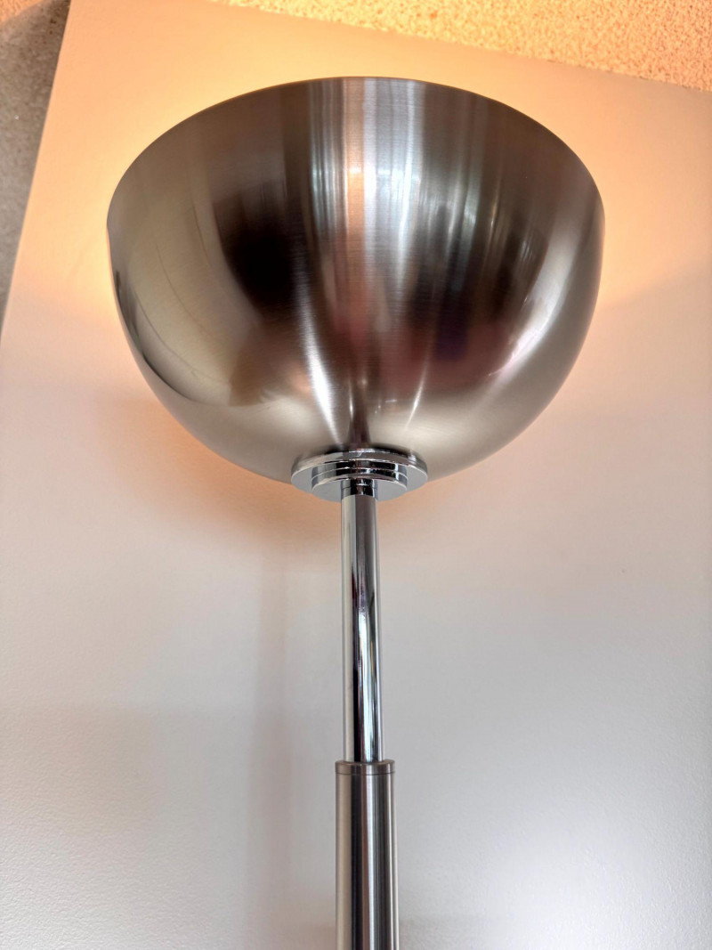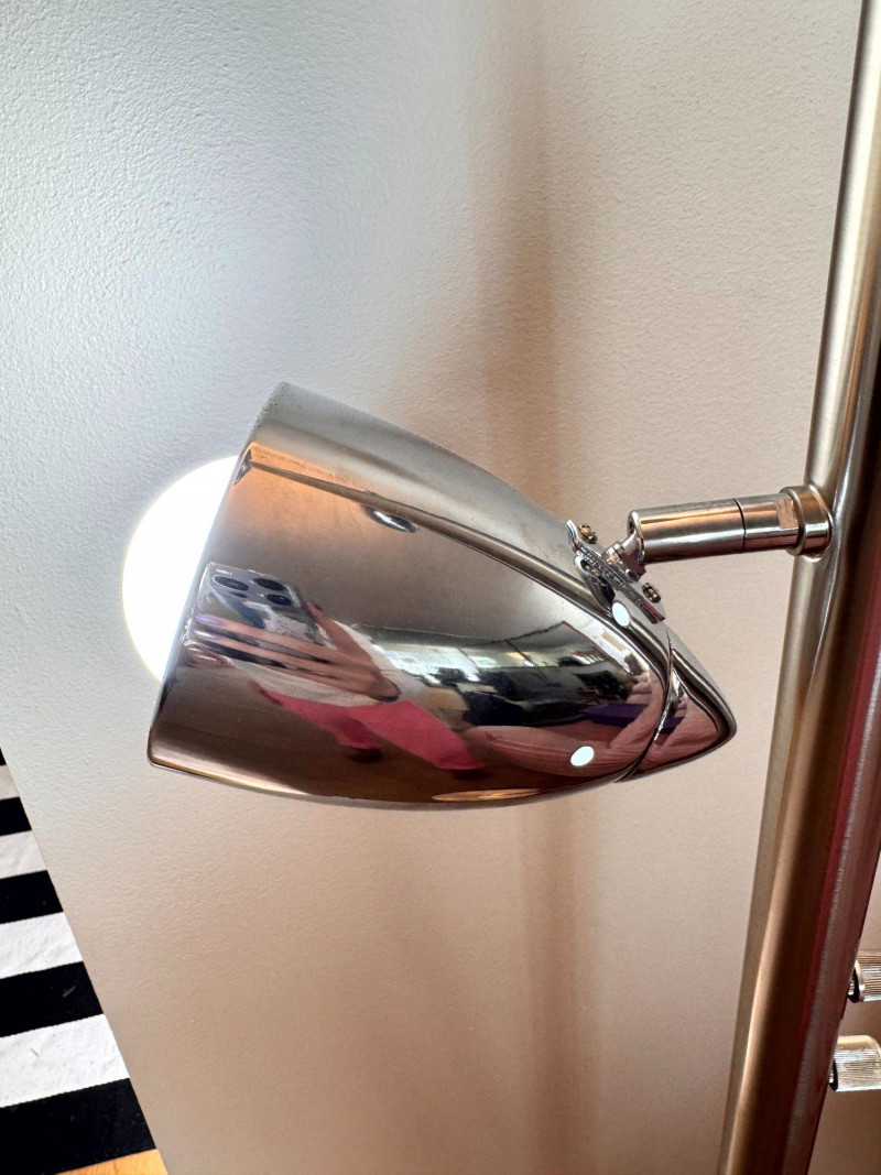 Silver Atomic Style Torchiere Floor Lamp w/ 2 Adjustable Side Lights.