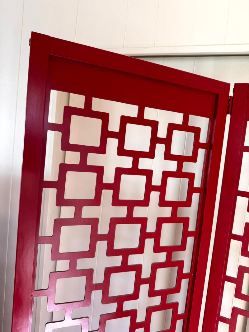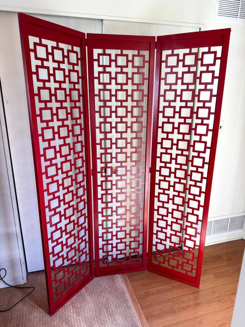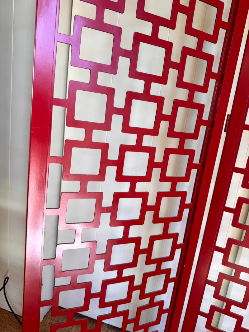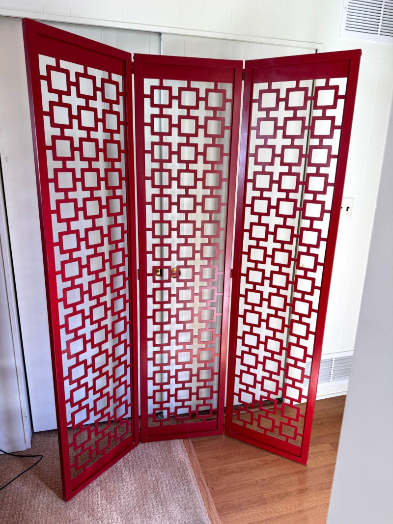 Vintage 3-Panel Folding Room Divider Screen - Red.
