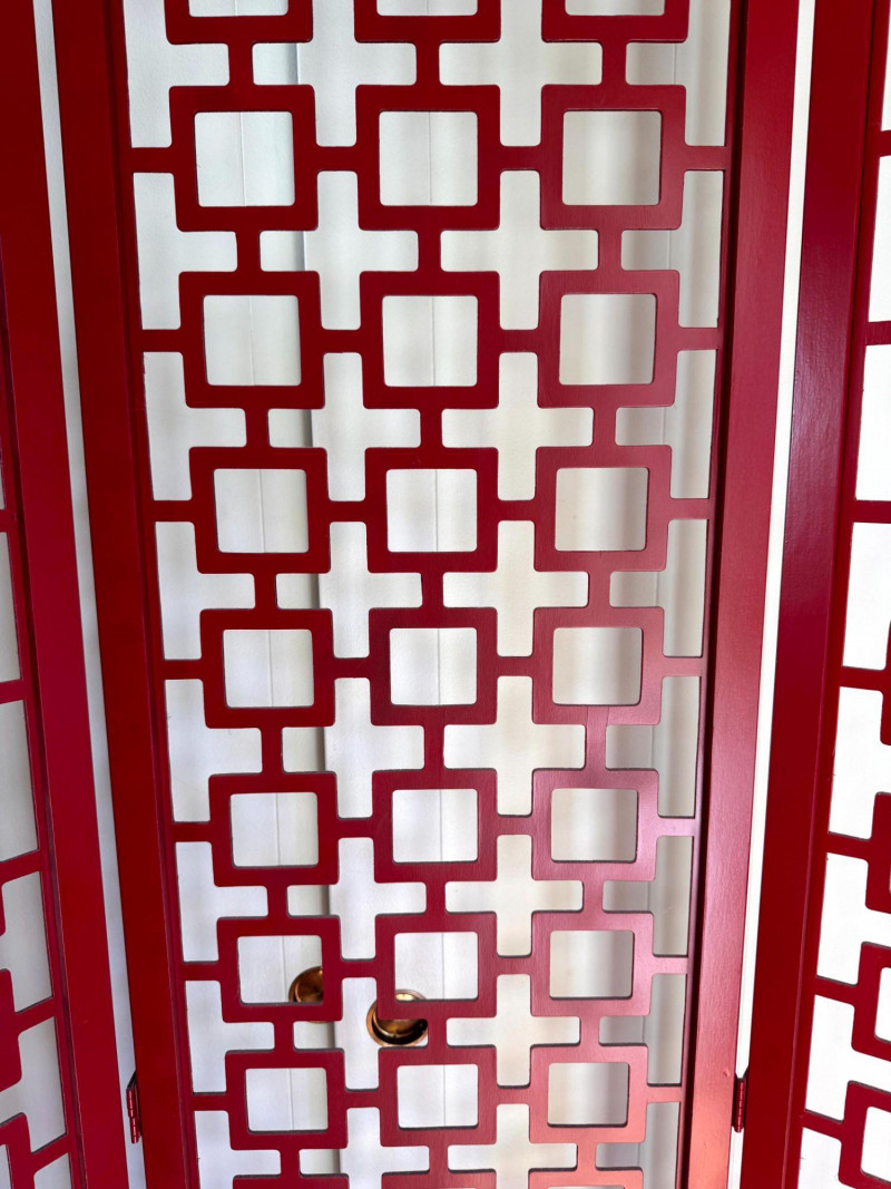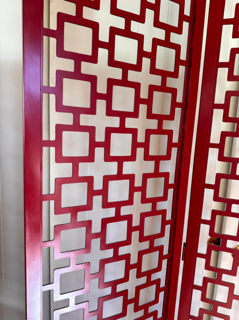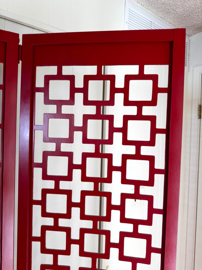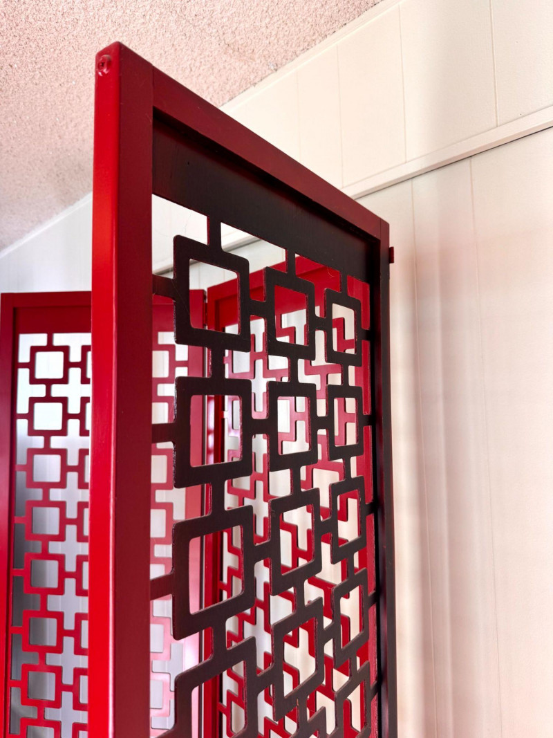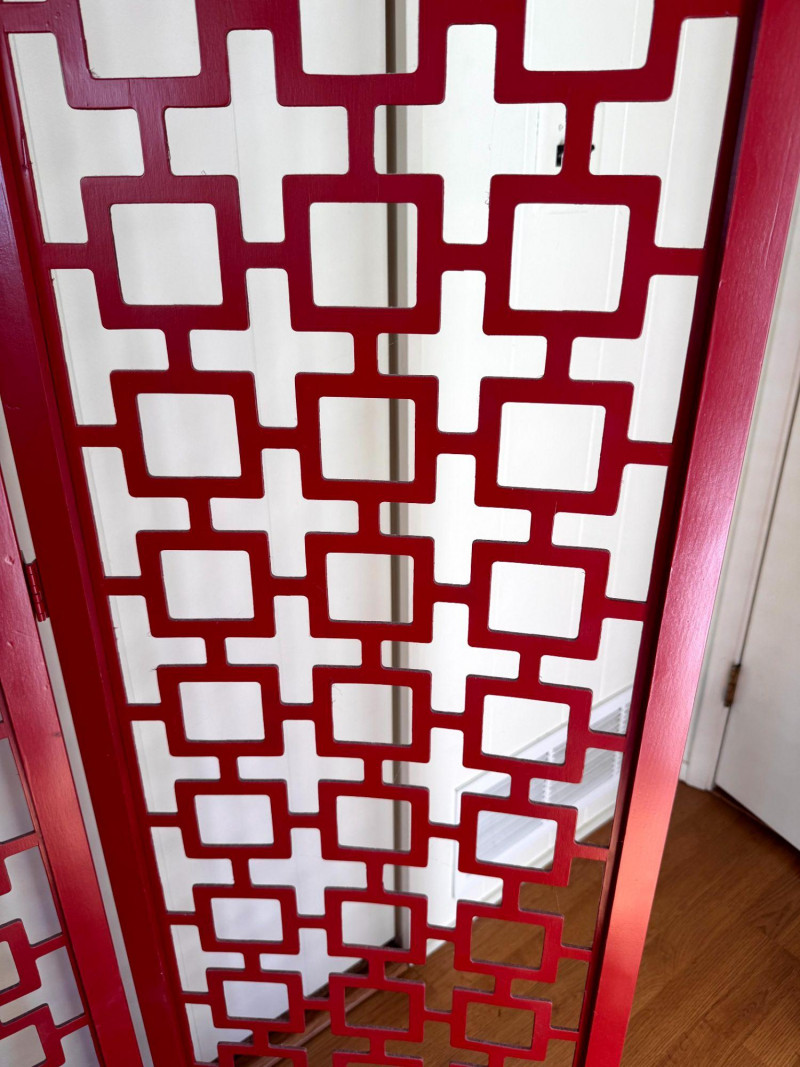Vintage 3-Panel Folding Room Divider Screen - Red.