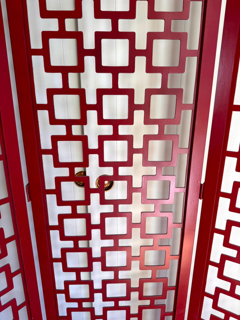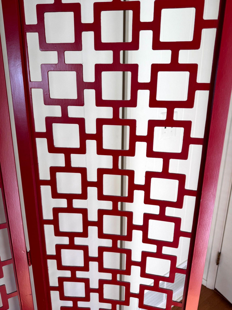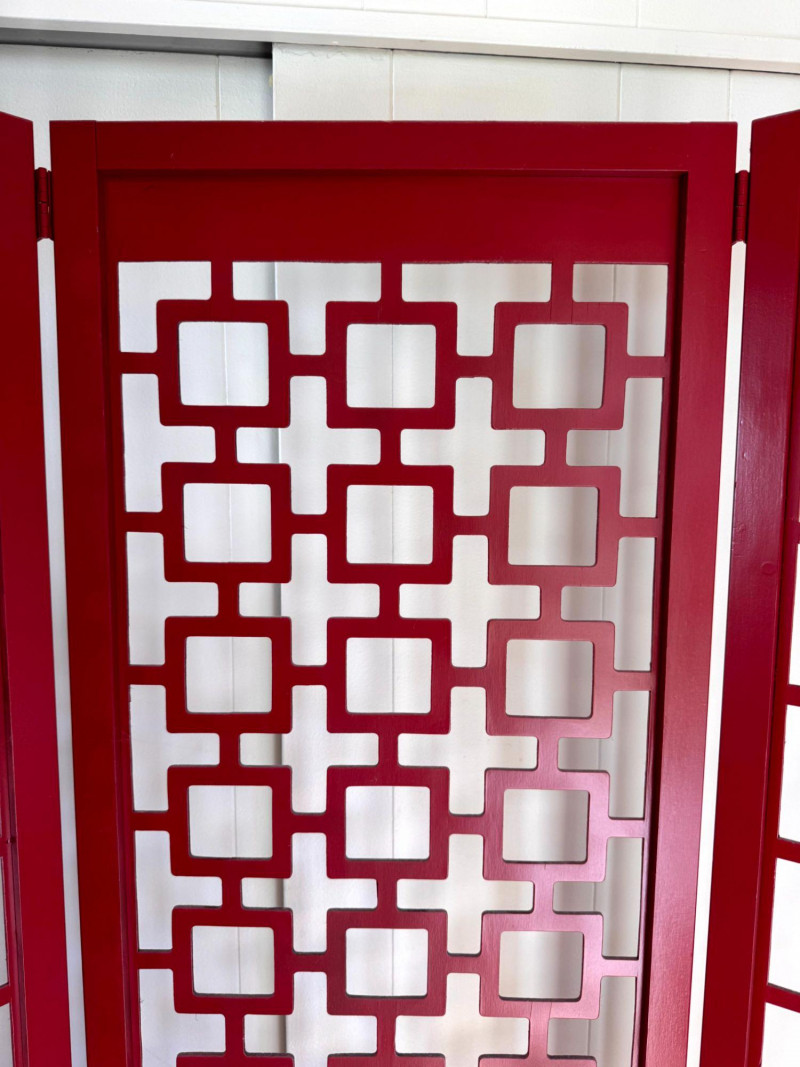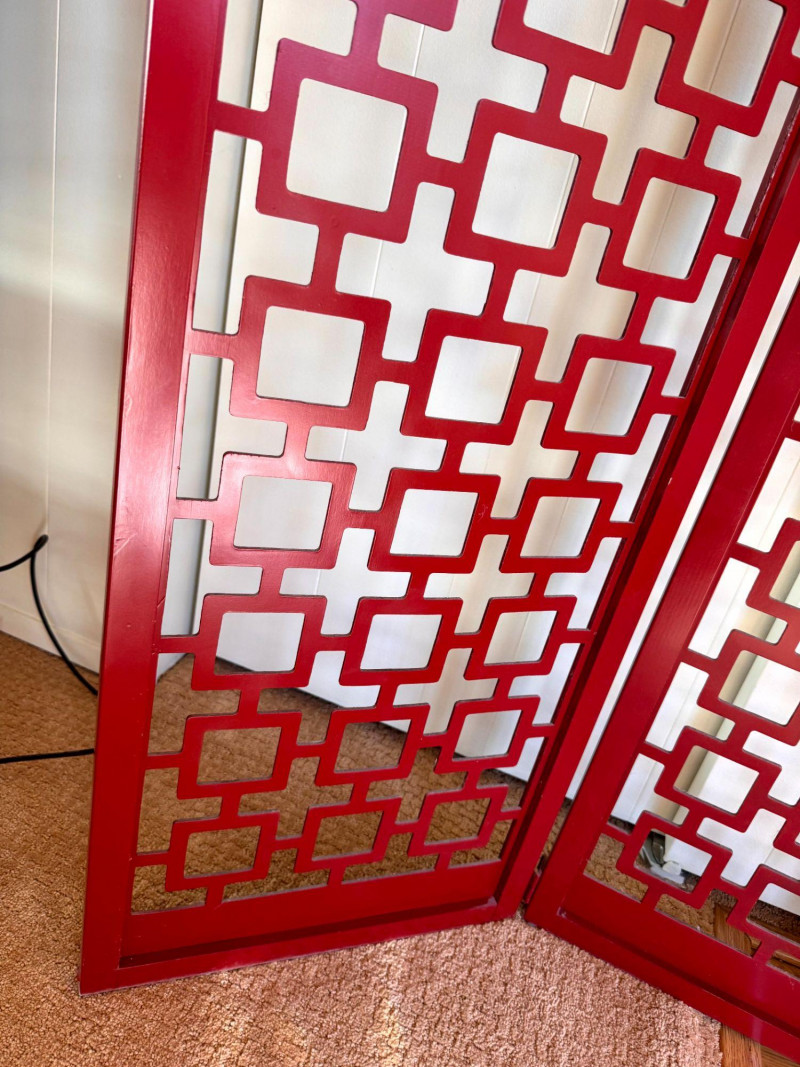 Lot # 21 - Vintage 3-Panel Folding Room Divider Screen - Red