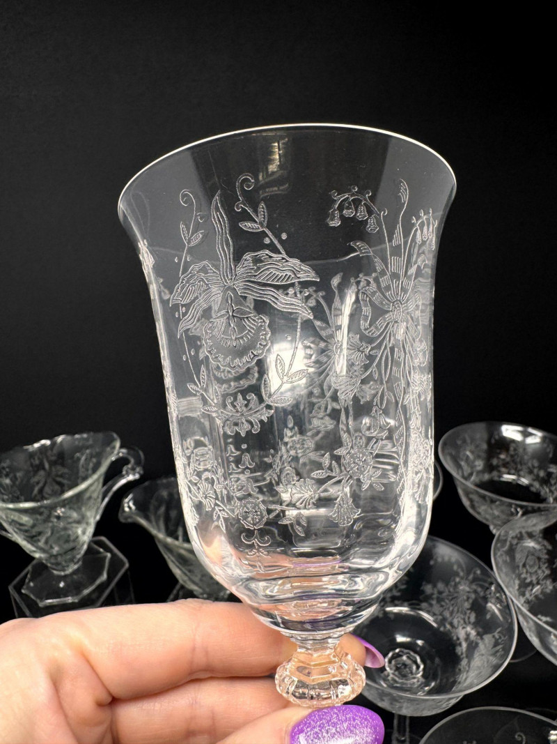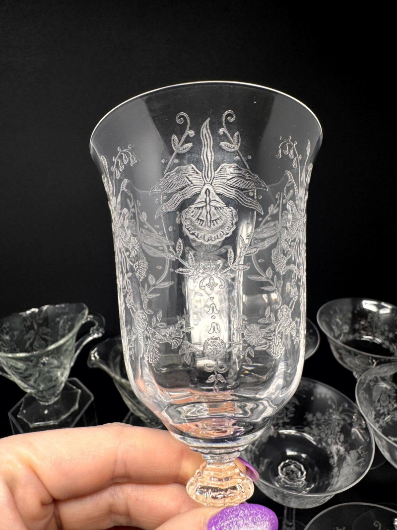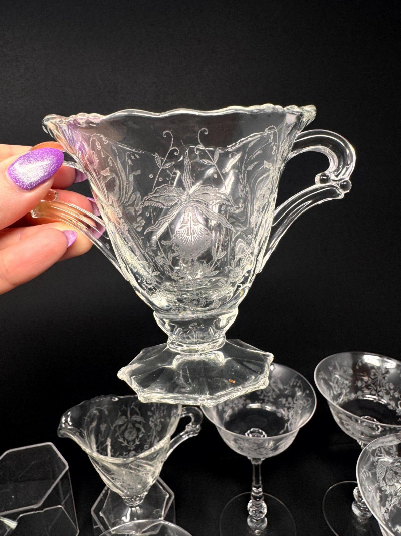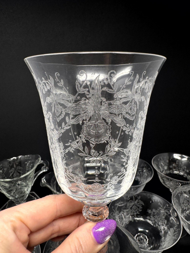 Lot # 23 - Vintage Heisey Style Orchid Etched Glassware Set