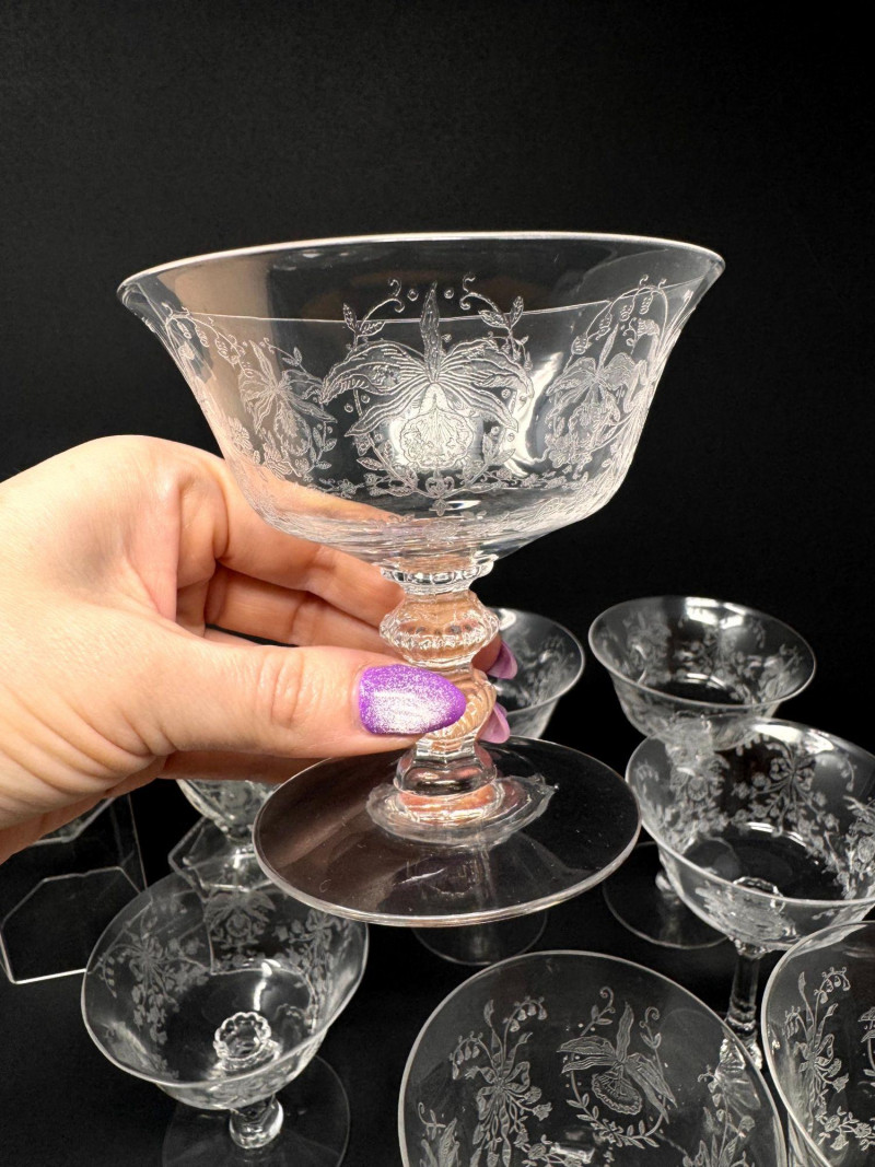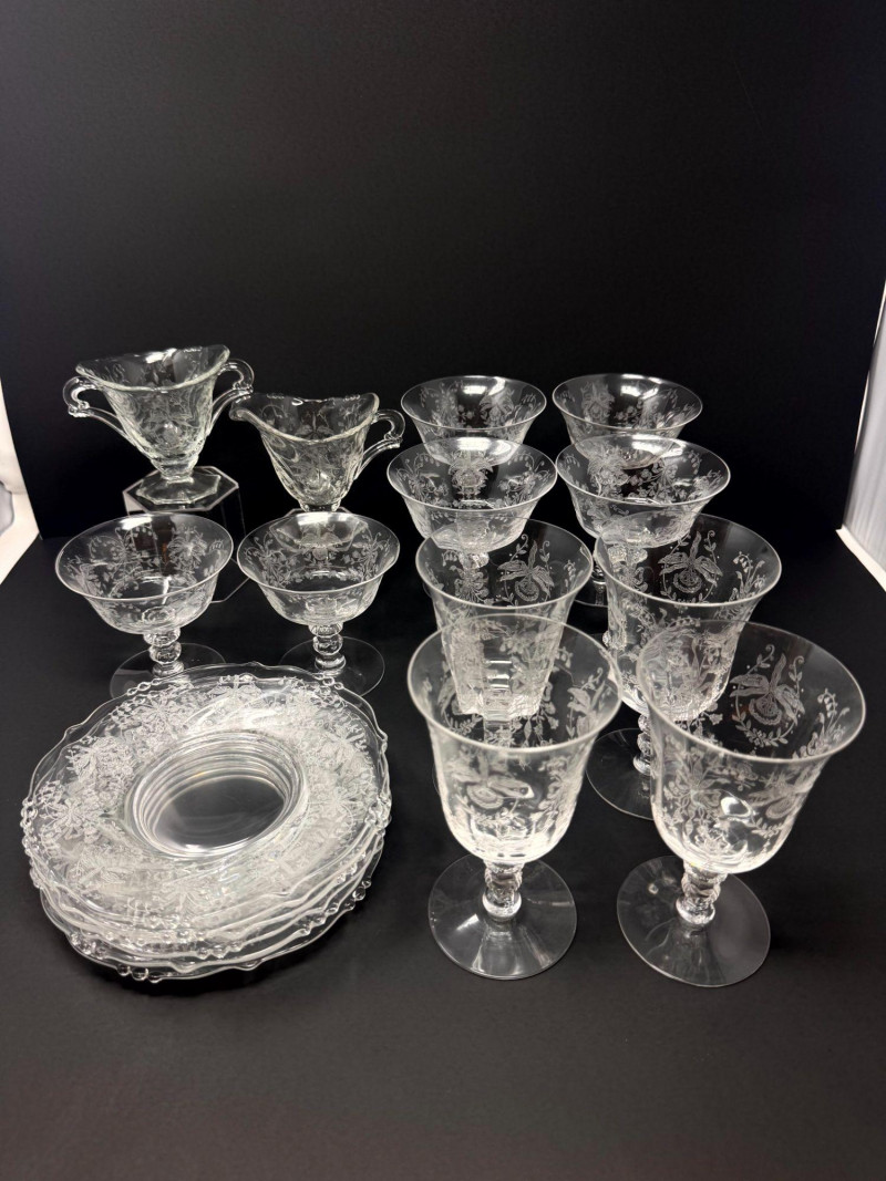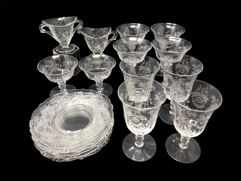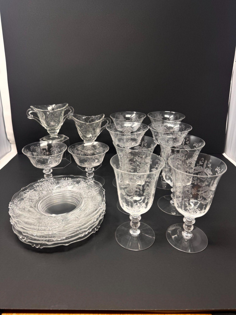 Lot # 23 - Vintage Heisey Style Orchid Etched Glassware Set