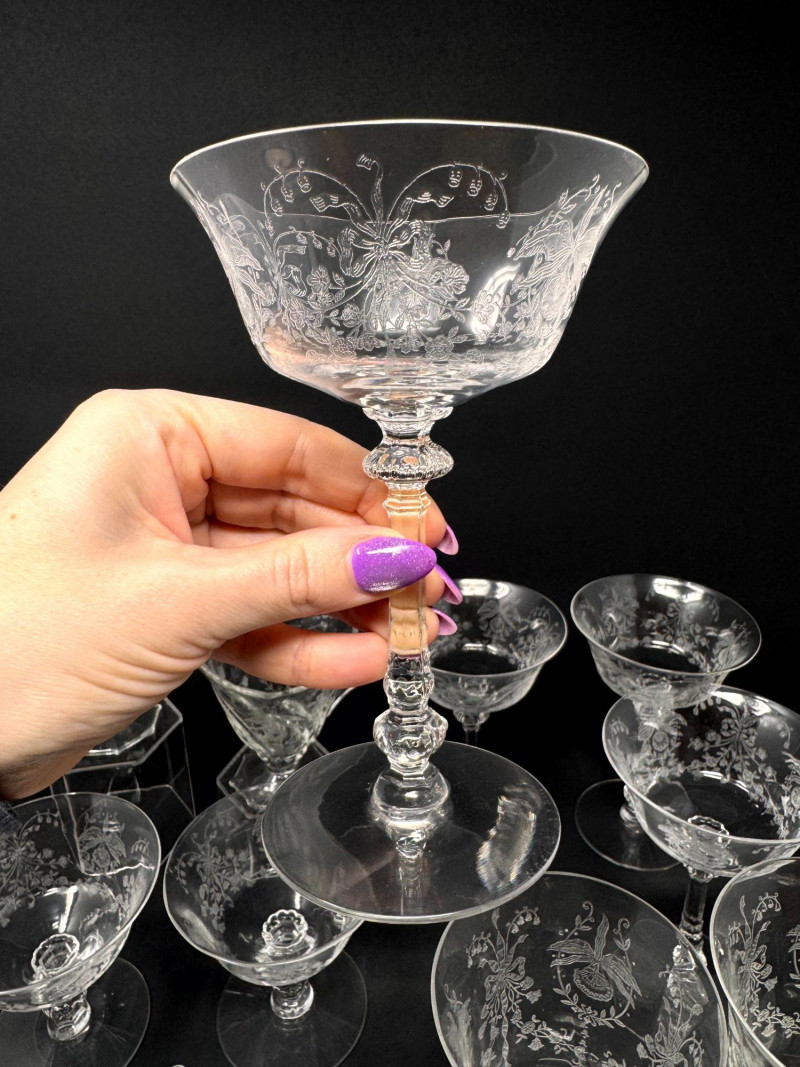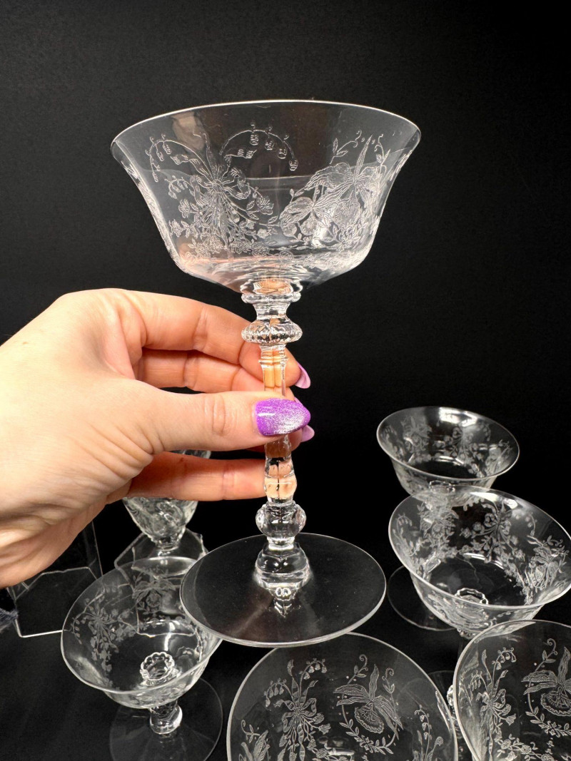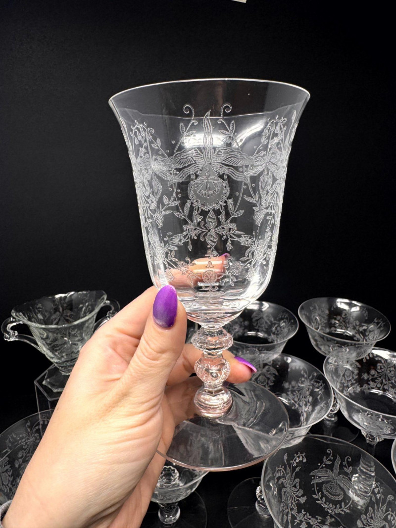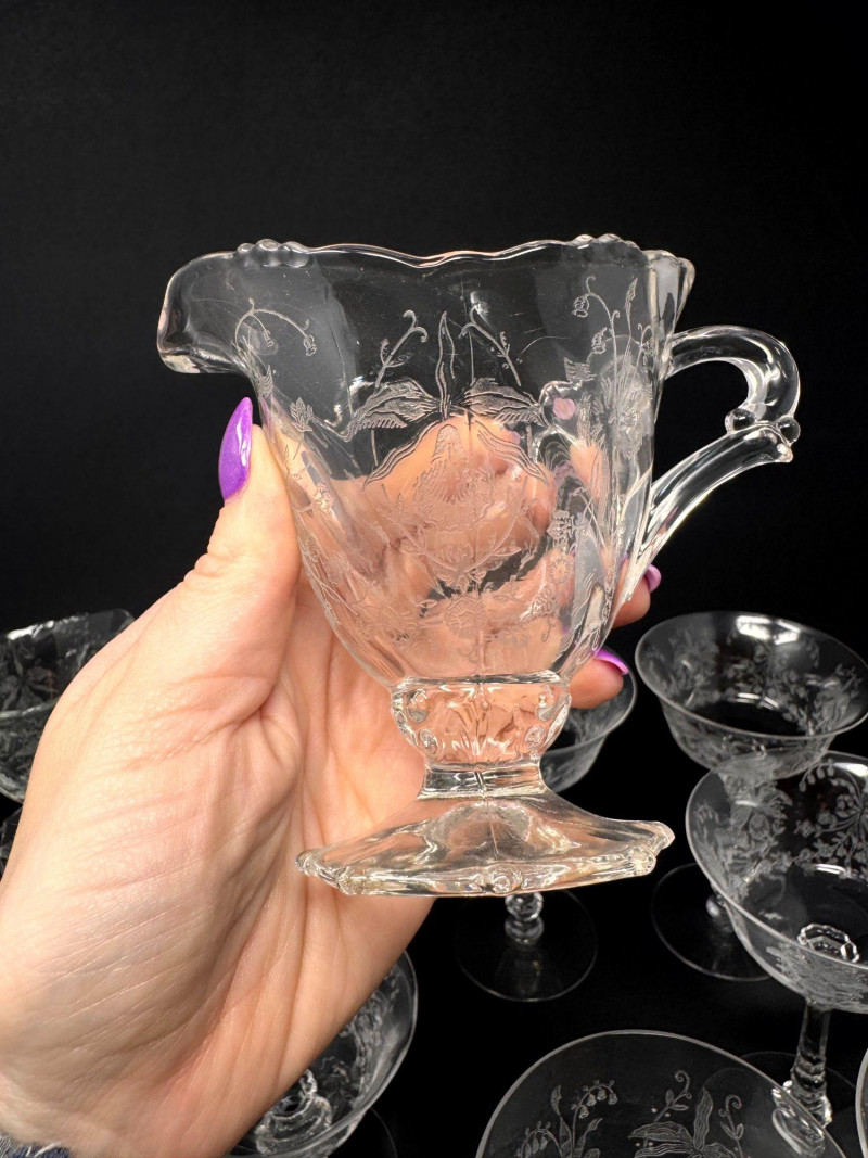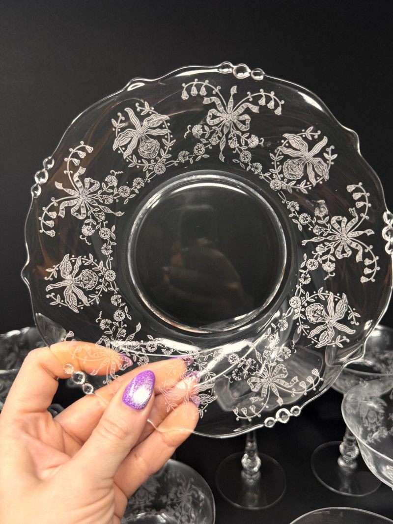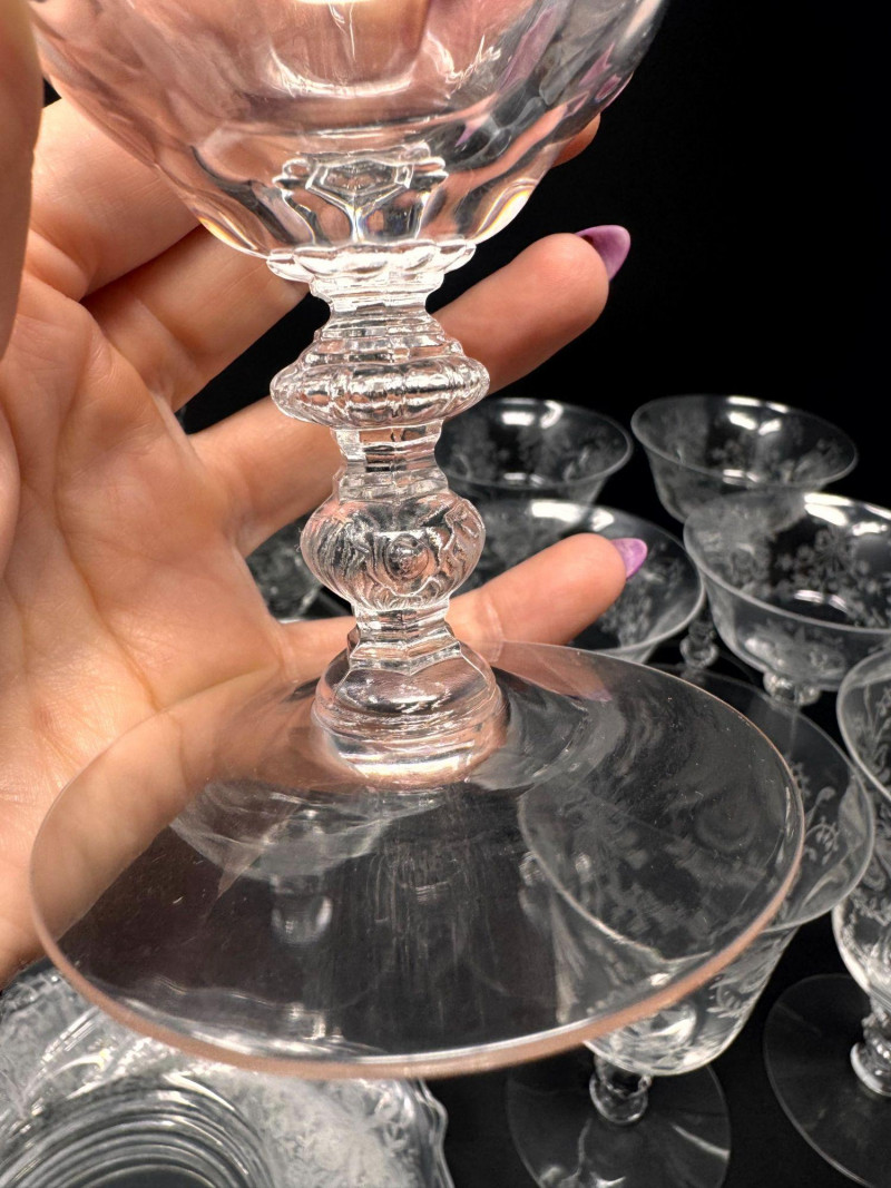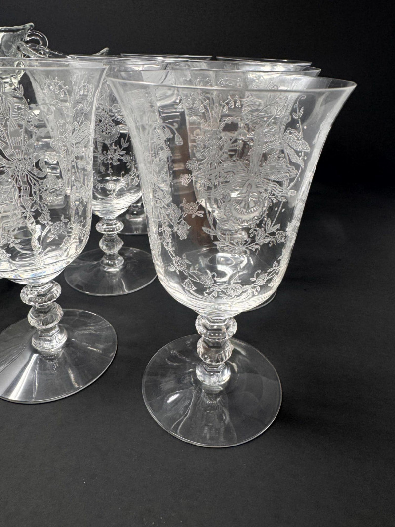 Vintage Heisey Style Orchid Etched Glassware Set.