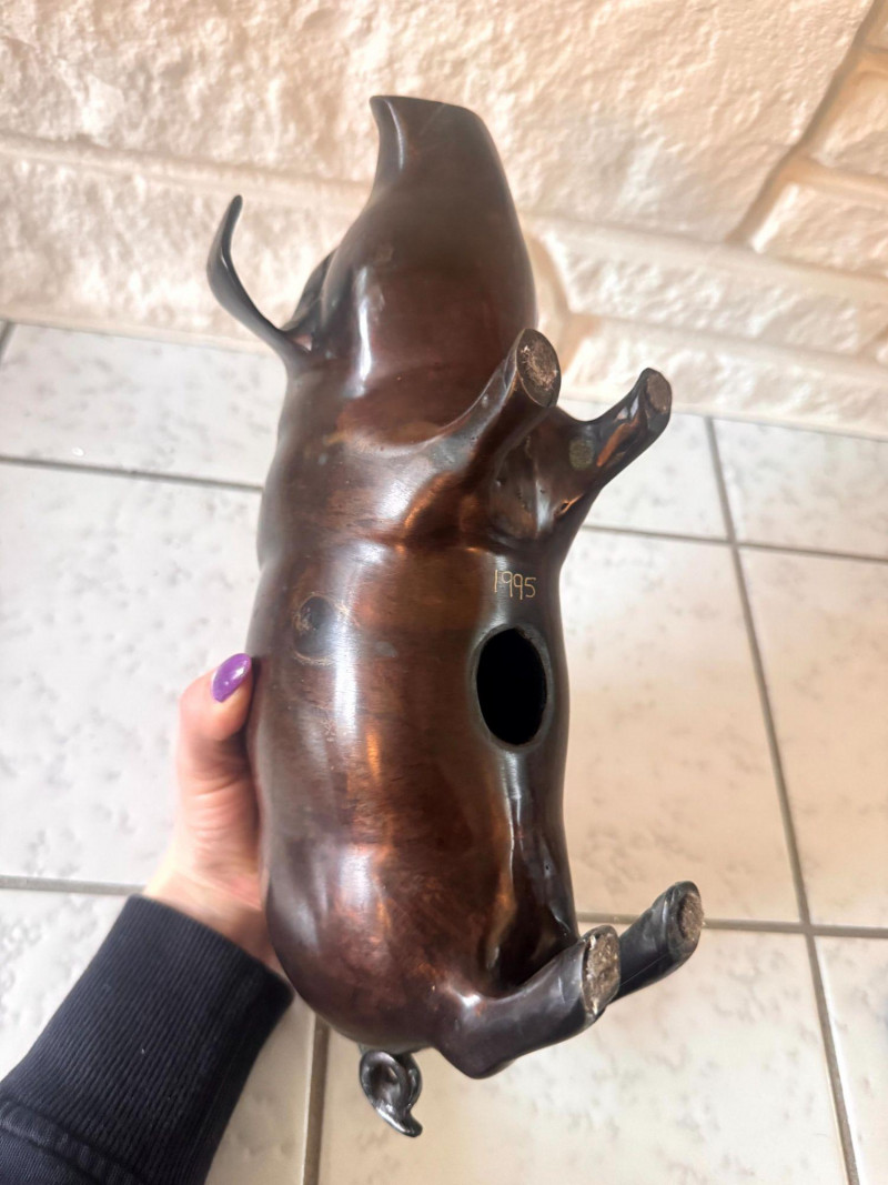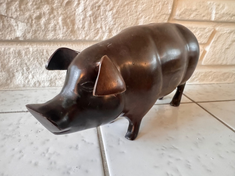 Vintage Bronze Piggy Bank 1995 - Heavy Cast Metal.