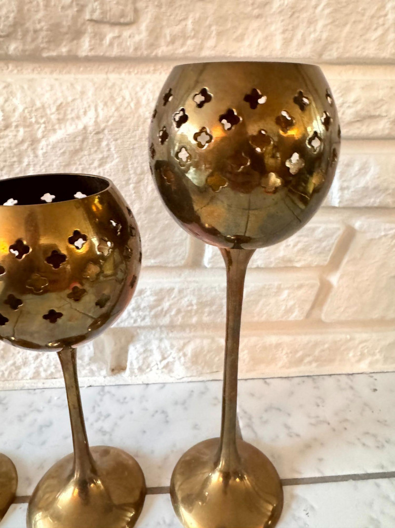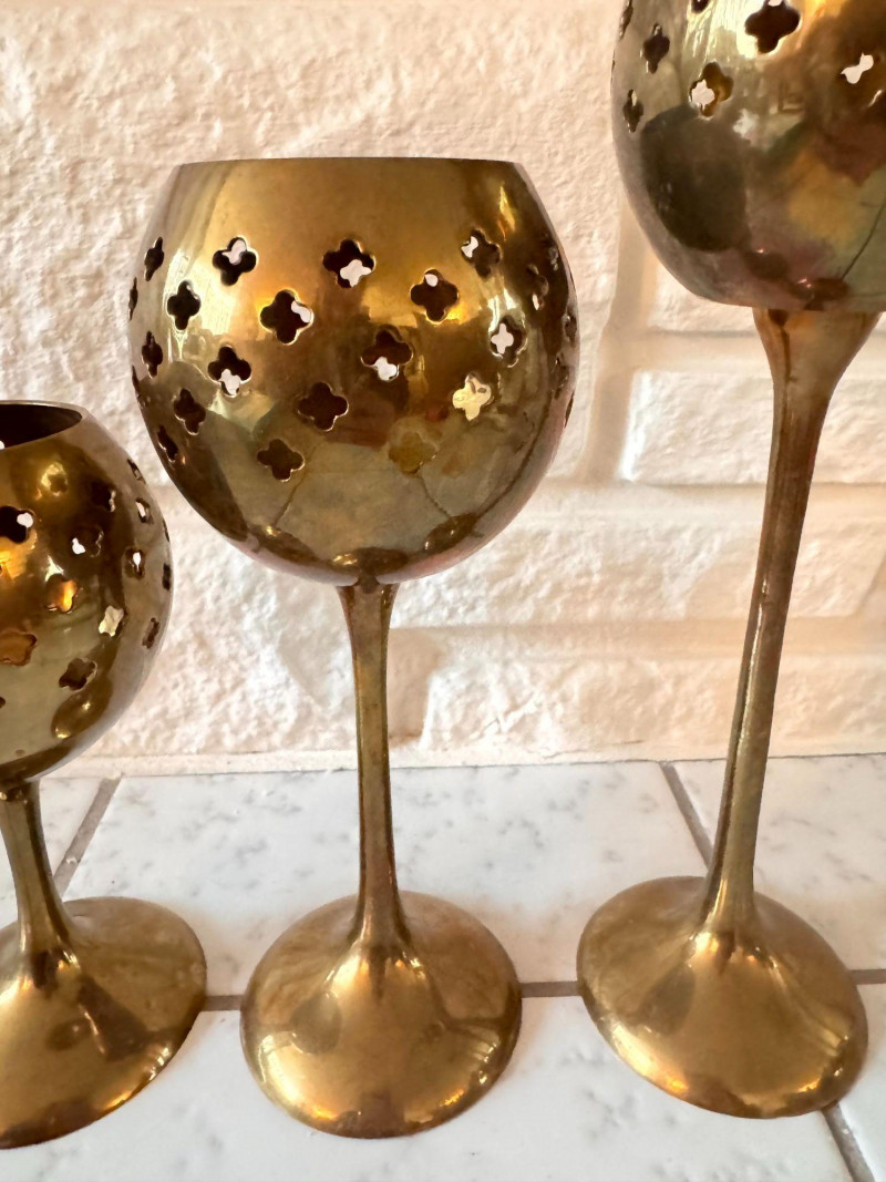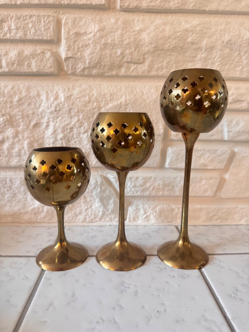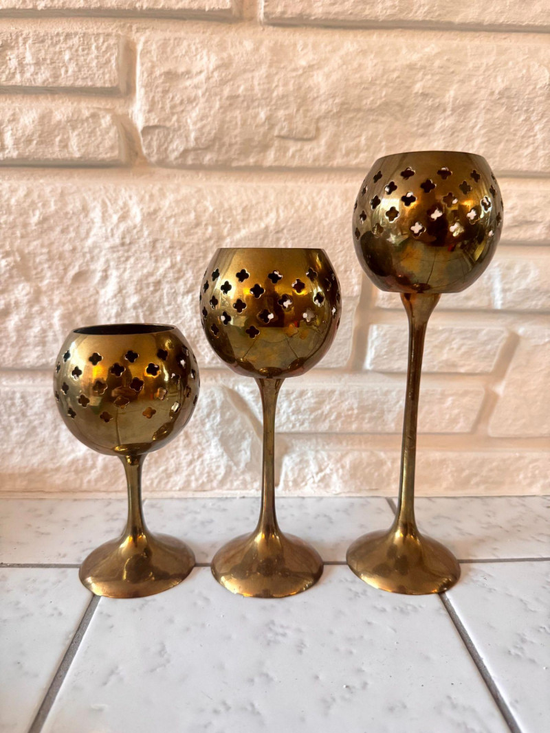 Set of 3 Vintage Brass Votive Candle Holders - Graduated Heights.
