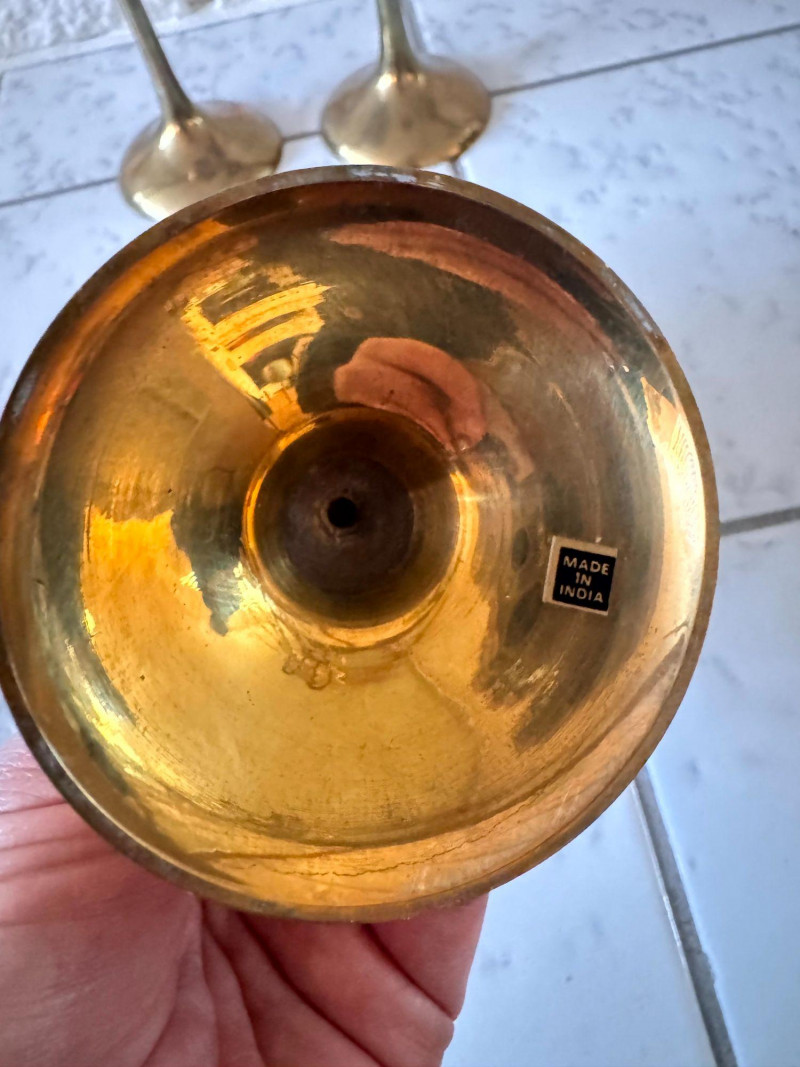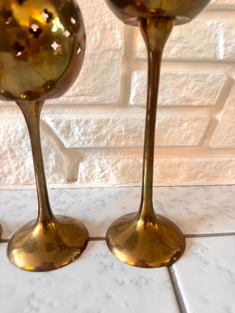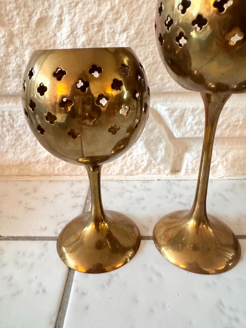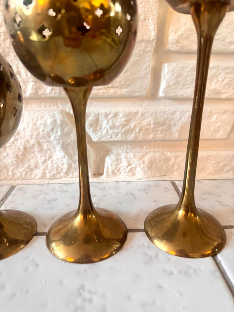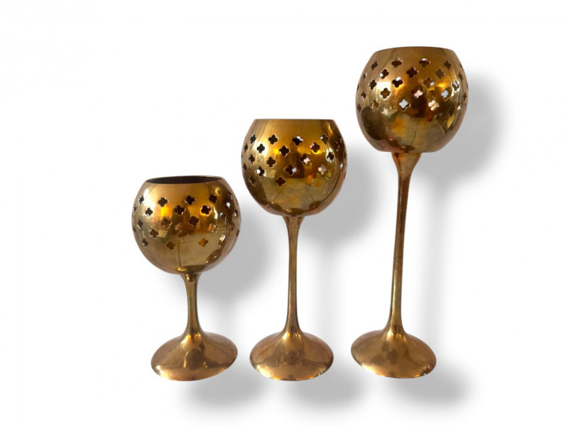 Set of 3 Vintage Brass Votive Candle Holders - Graduated Heights.