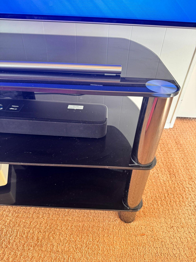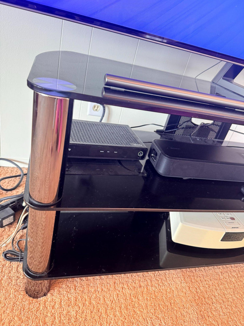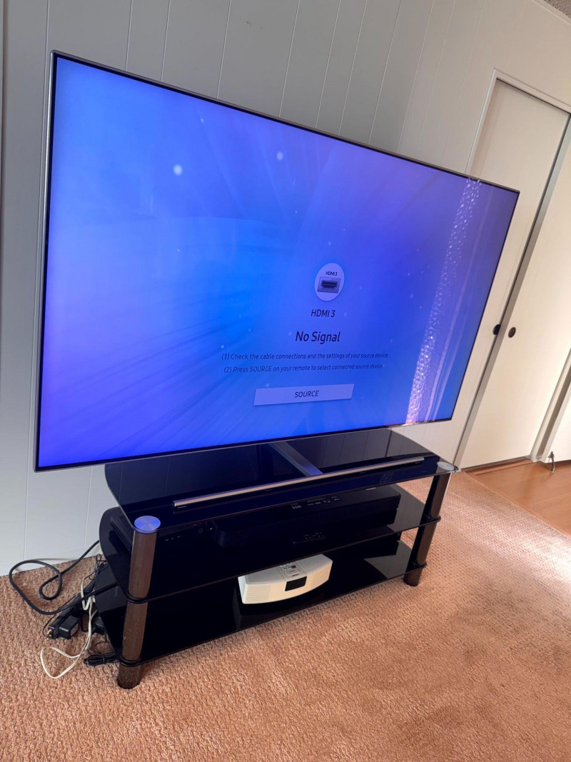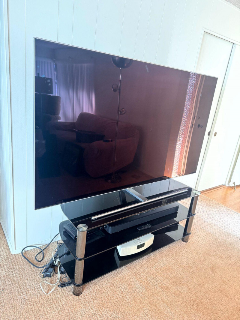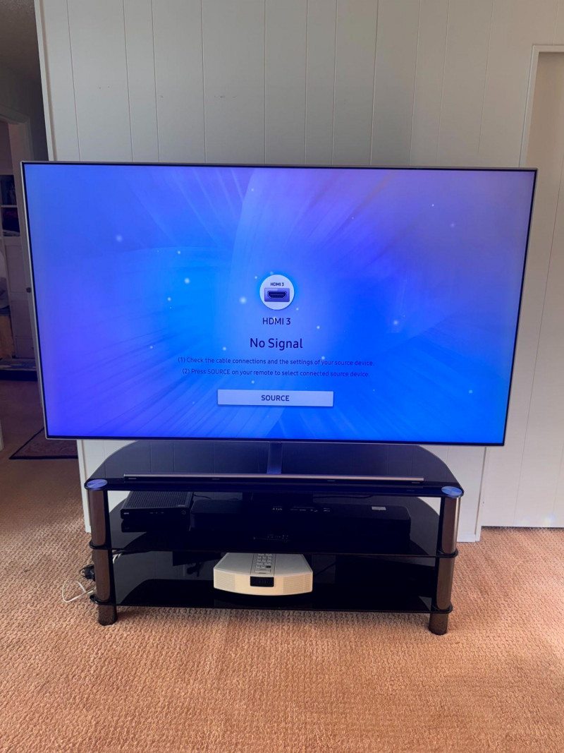 Samsung 75” QLED TV w/ Tempered Glass Stand - Works Great! Bidding on this lot is an agreement that: (1.) You will have at least 2 capable, able bodied persons to lift and load at a minimum. (2.) You will bring a hand truck and/or any other tools needed to remove this item. If these steps are not followed your item will be forfeit and no refund given.