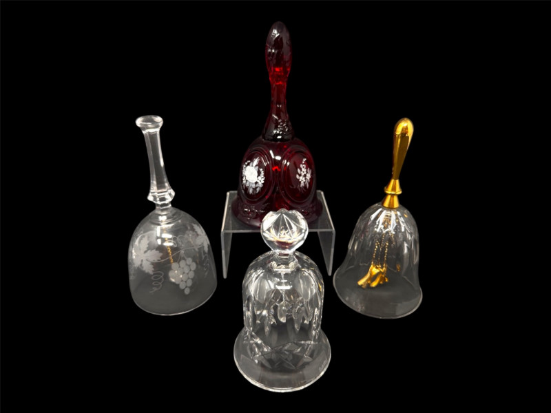 Lot # 43 - Vintage Crystal Bells Set - Waterford, Hand Painted Fenton Bell & More