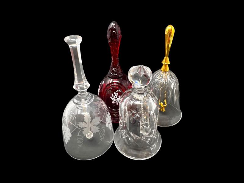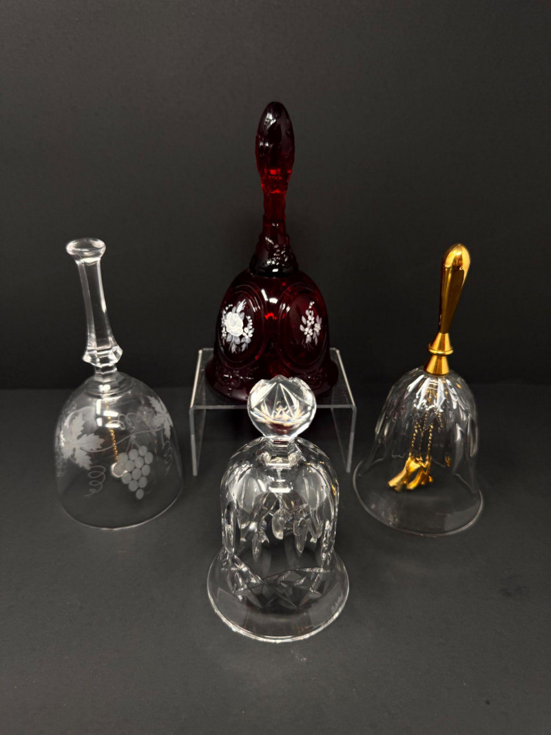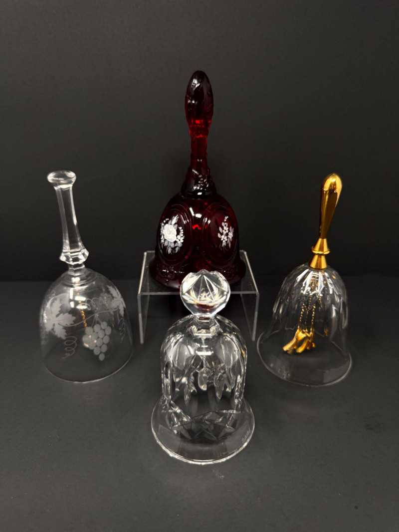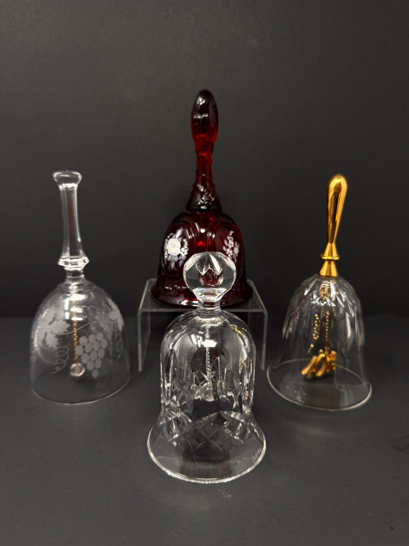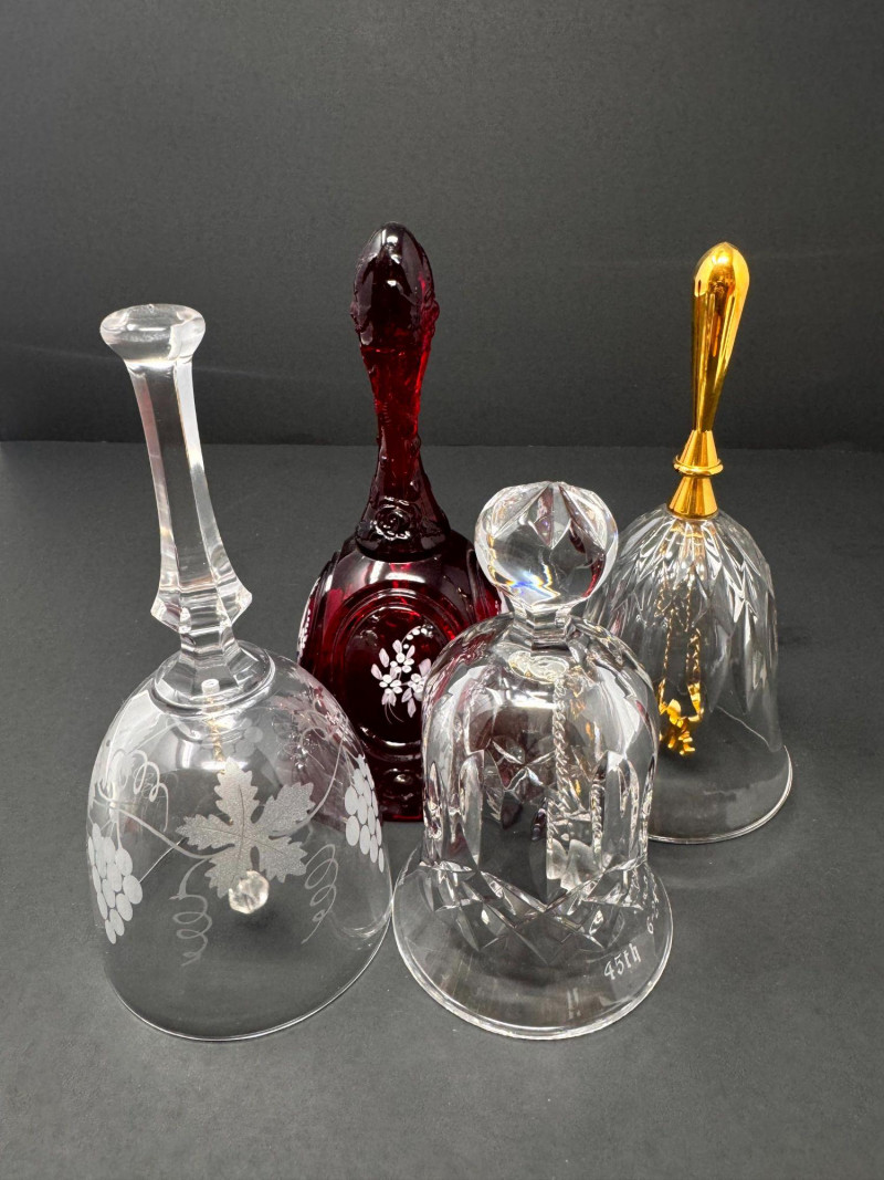 Vintage Crystal Bells Set - Waterford, Hand Painted Fenton Bell & More.
